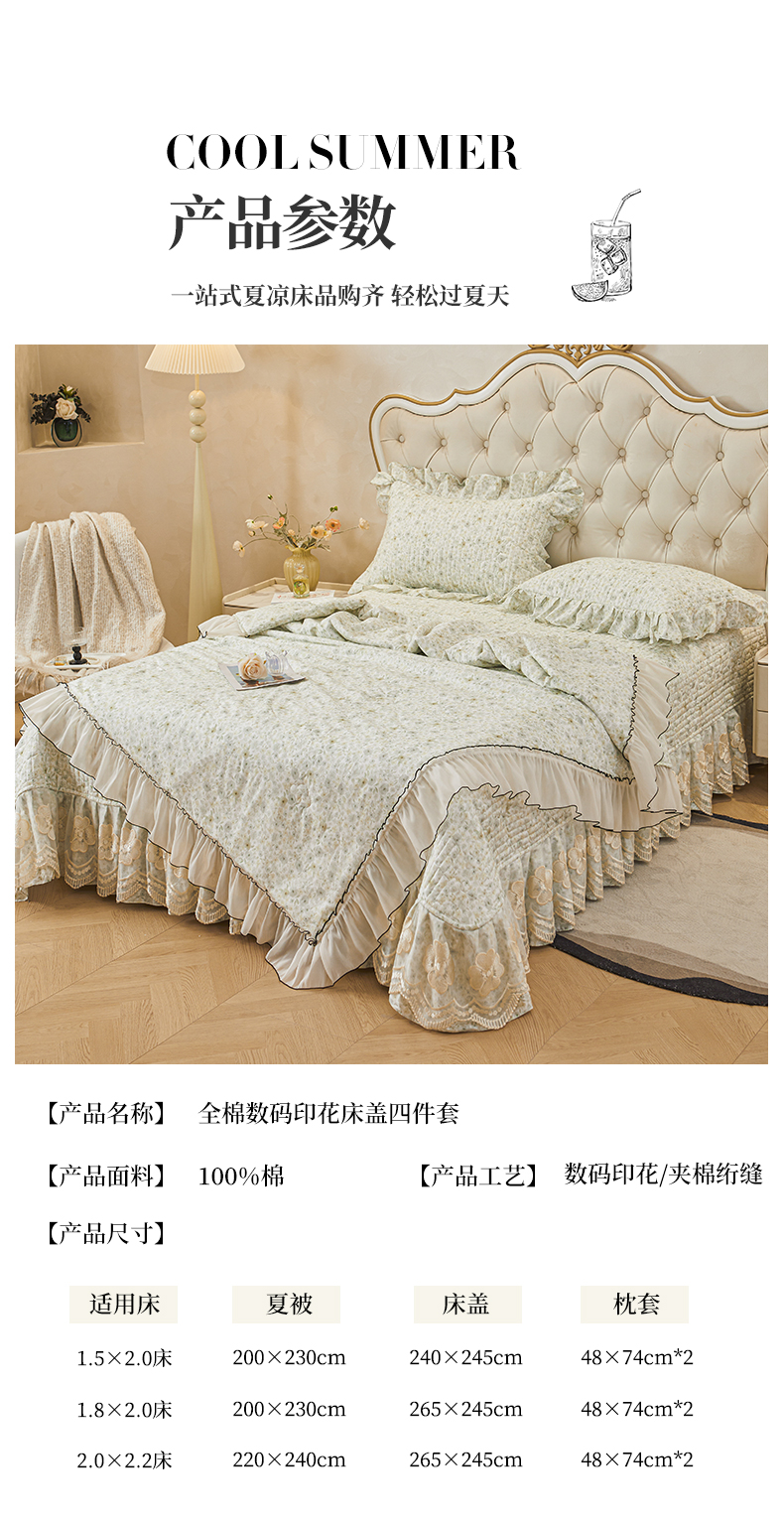 商品名称:宜凡家纺 2026新款全棉数码印花夏被床盖四件套②号系列 茜野