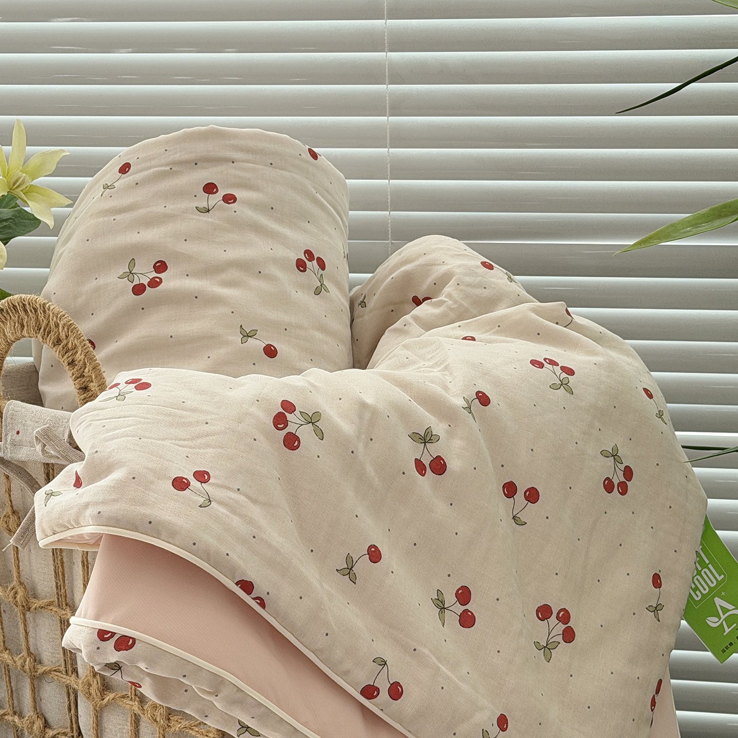 佰织鑫家居 2026新款全棉双层纱锦氨凉感夏凉被空调被 可可樱桃