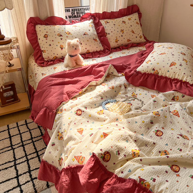 当前位置: 91家纺网 > 商品网购 > 床品套件 > 四件套 > 夏被四件套 > 梵希雅 2026新款床盖款花边夏被四件套 芋泥花束