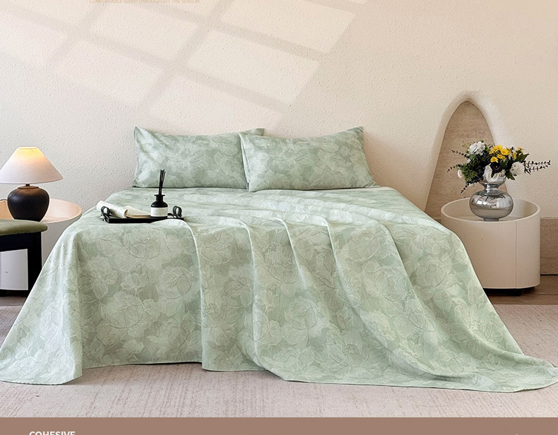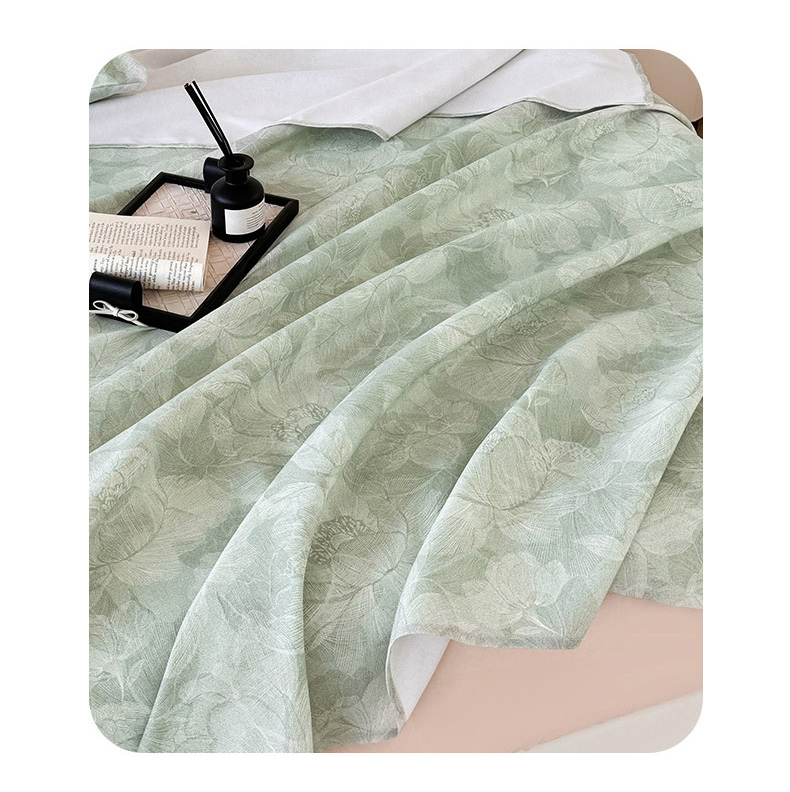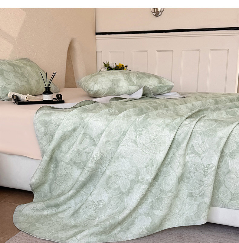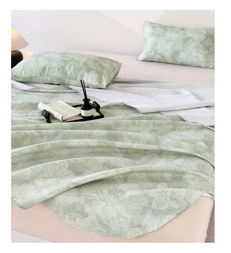 遇安家纺 2025新款50S莱赛尔天丝数码印花夏被四件套 暮烟凝香绿,暮烟凝香绿