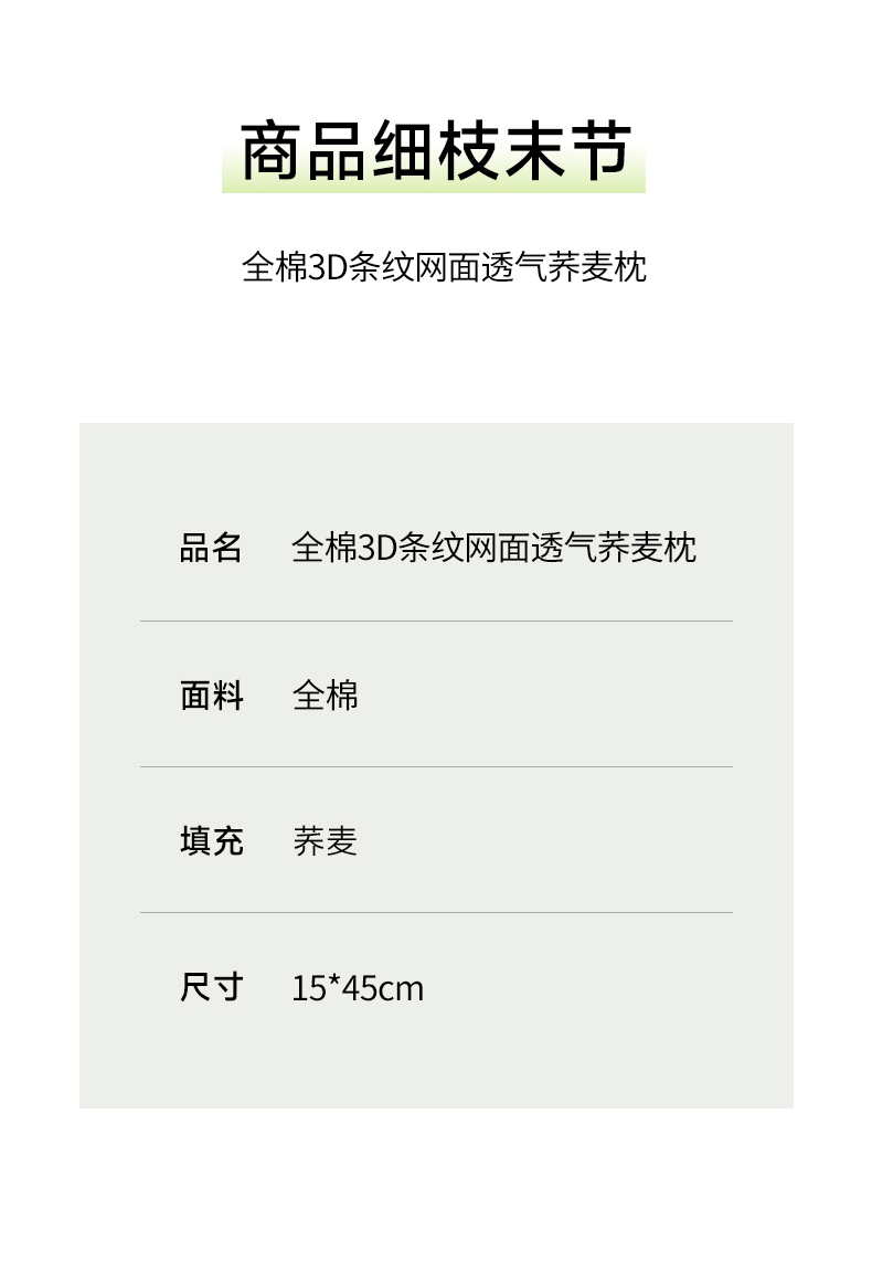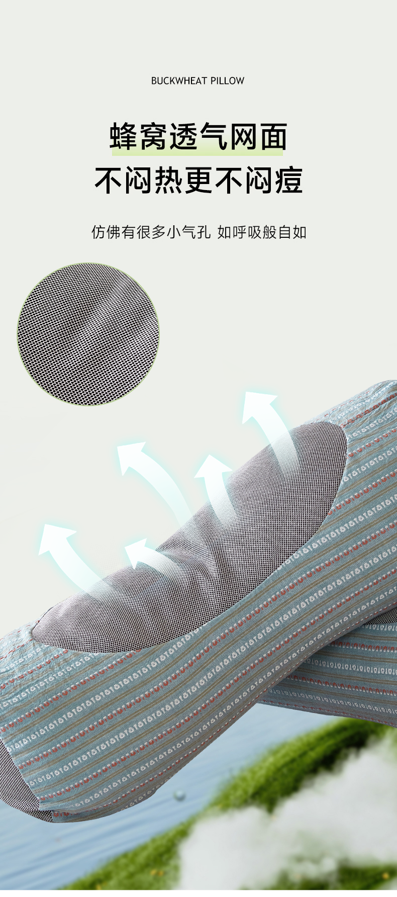商品名称:梦叶草 2026新款全棉3D条纹网面透气荞麦枕头护颈枕芯 全棉条纹3D网面荞麦枕-浅蓝