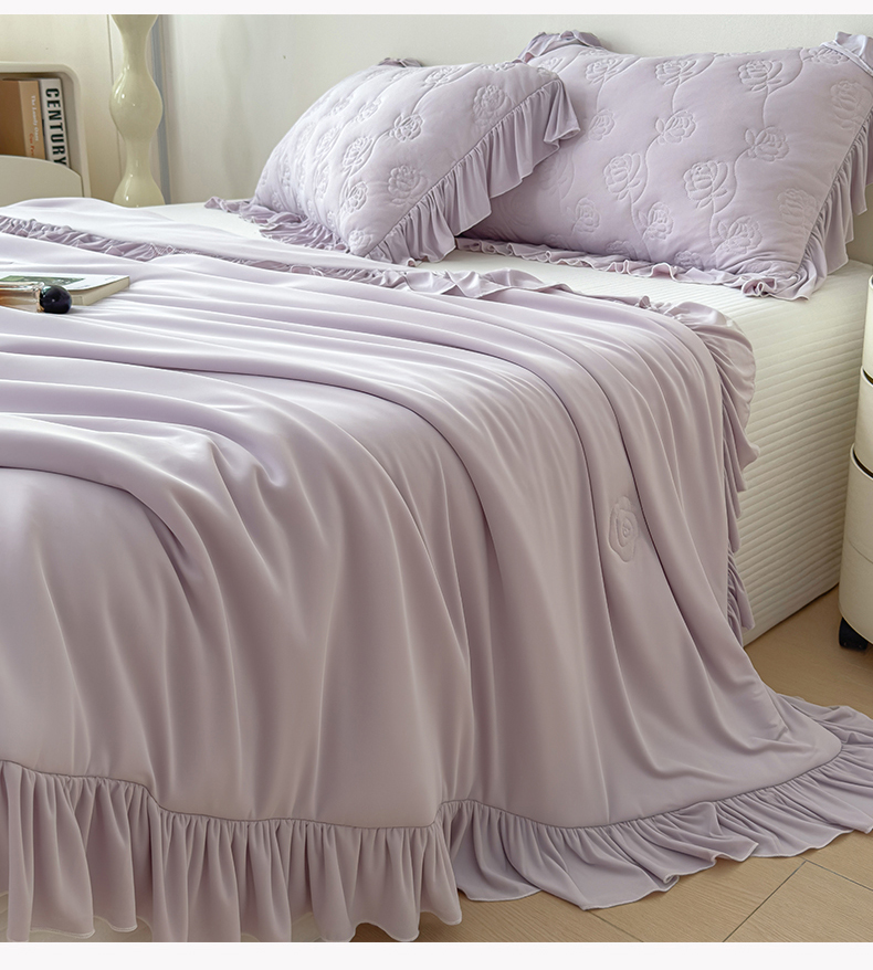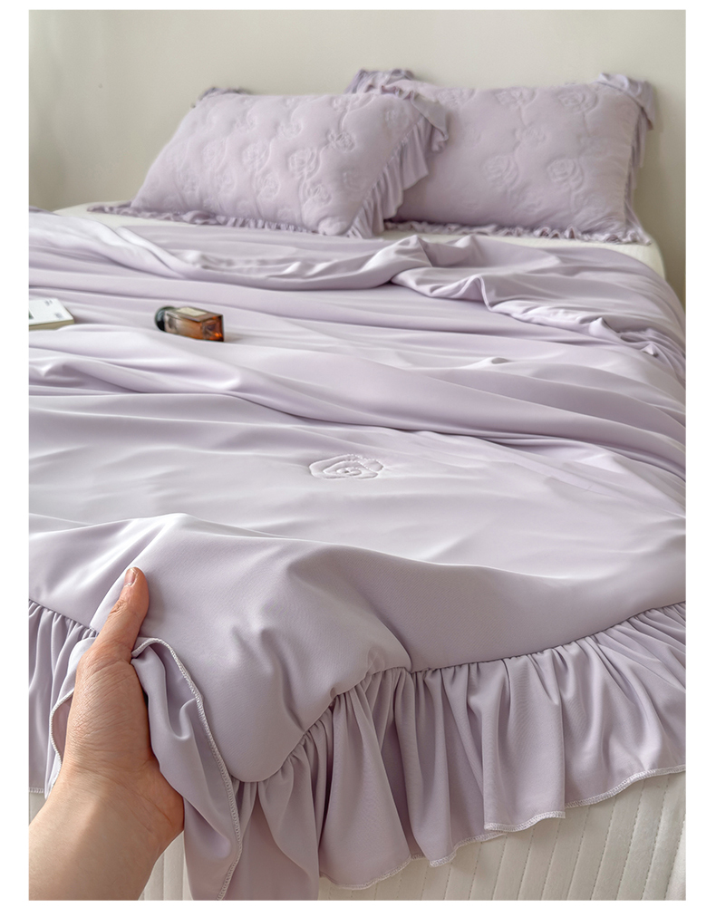 (总)雯豆家纺 【10A抗菌】2026新款氨纶凉感丝花边床裙床盖夏季冰感床罩+花边夏被四件套,氨纶花边床裙-香芋紫,氨纶花边床裙-奶黄,氨纶花边床裙-浅粉,氨纶花边床裙-浅灰,氨纶花边床裙-水蓝,组合