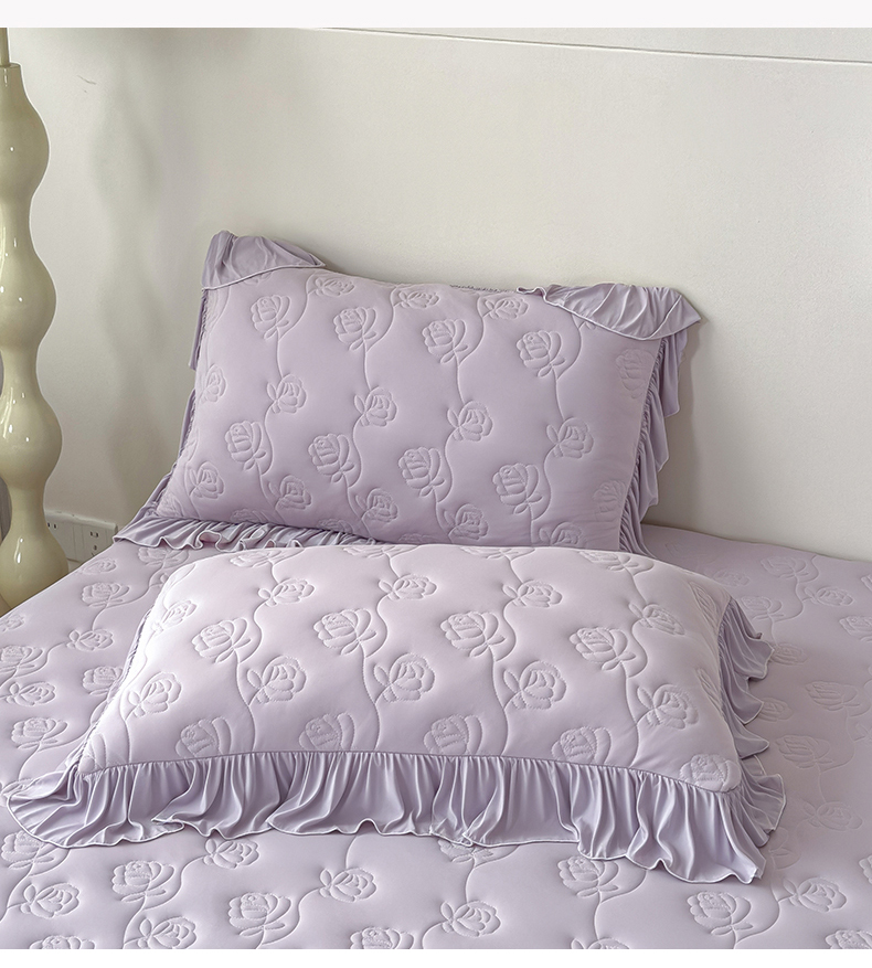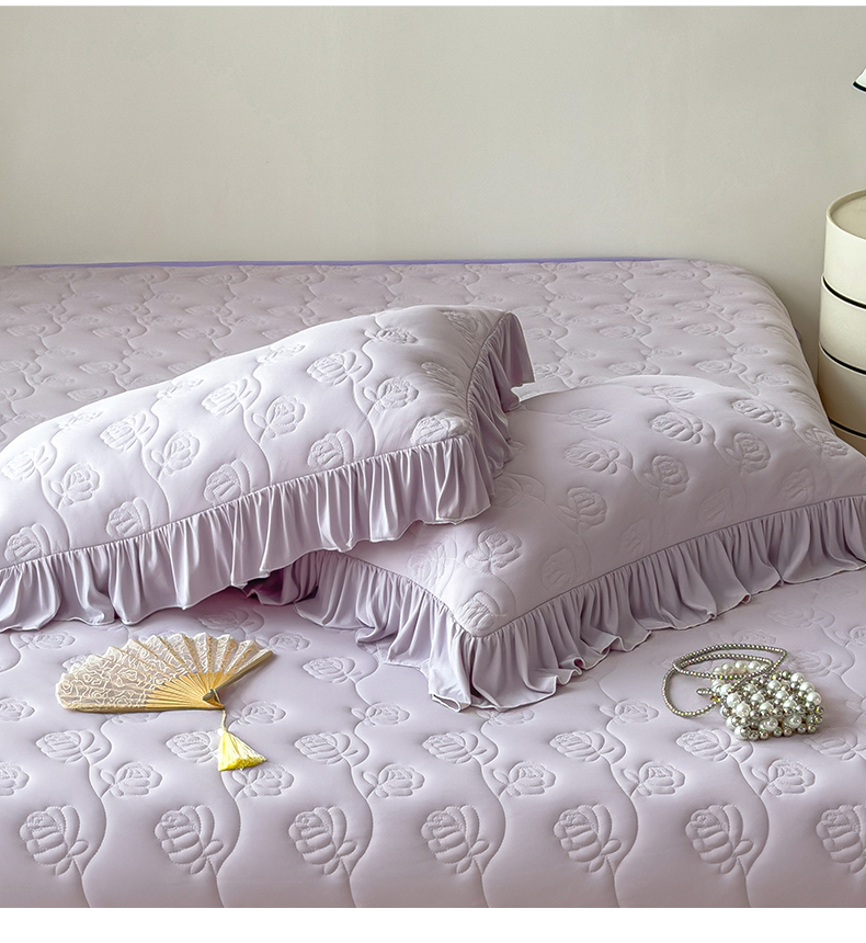 商品名称:雯豆家纺 【10A抗菌】2026新款氨纶凉感丝花边枕套单只一对装夏季冰丝枕芯保护套 氨纶花边床笠-香芋紫
