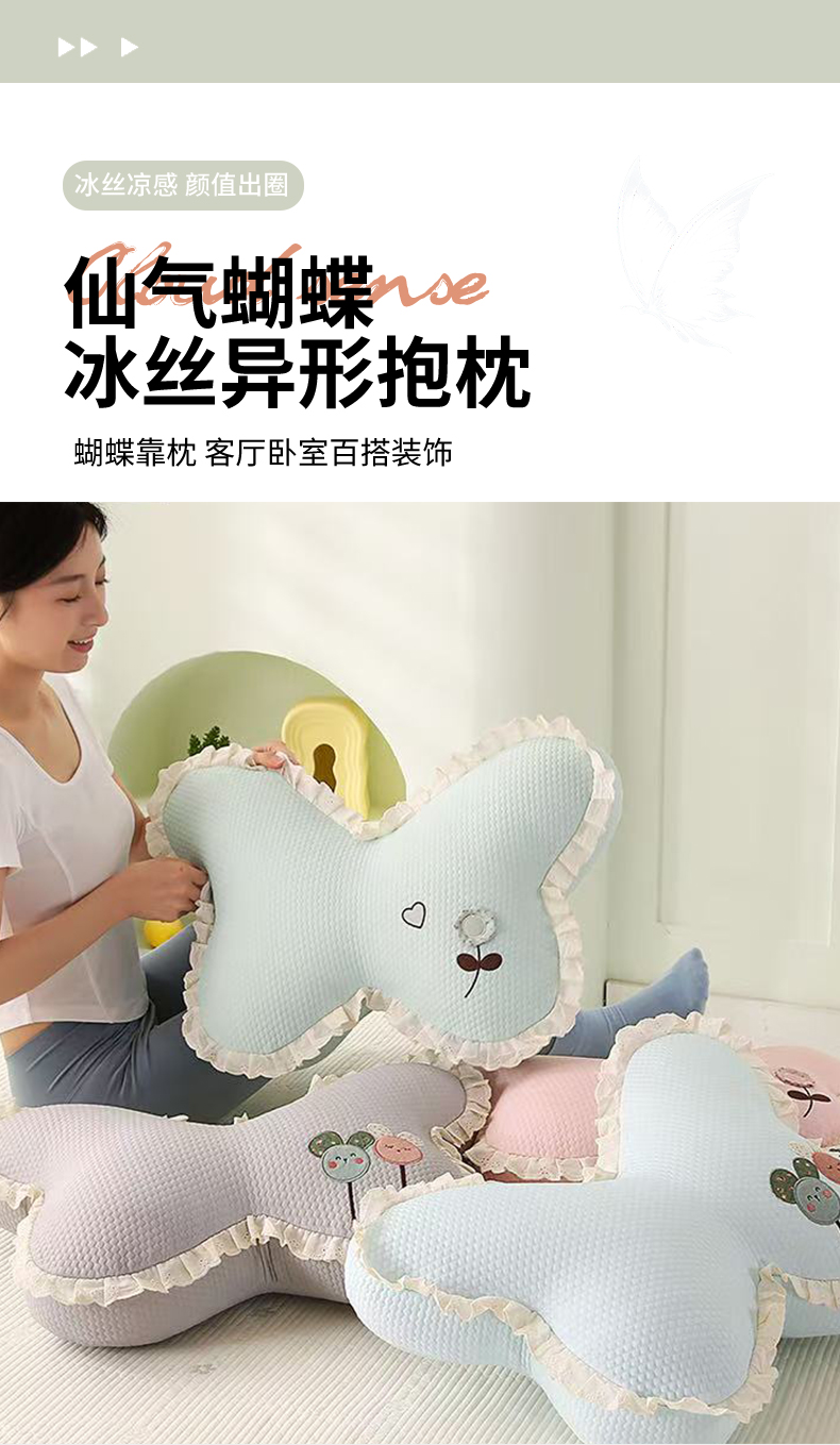 蔻眠 花边款凉豆豆凉感丝蝴蝶抱枕靠枕异型枕芯 主图