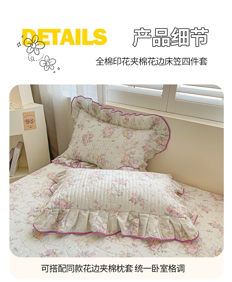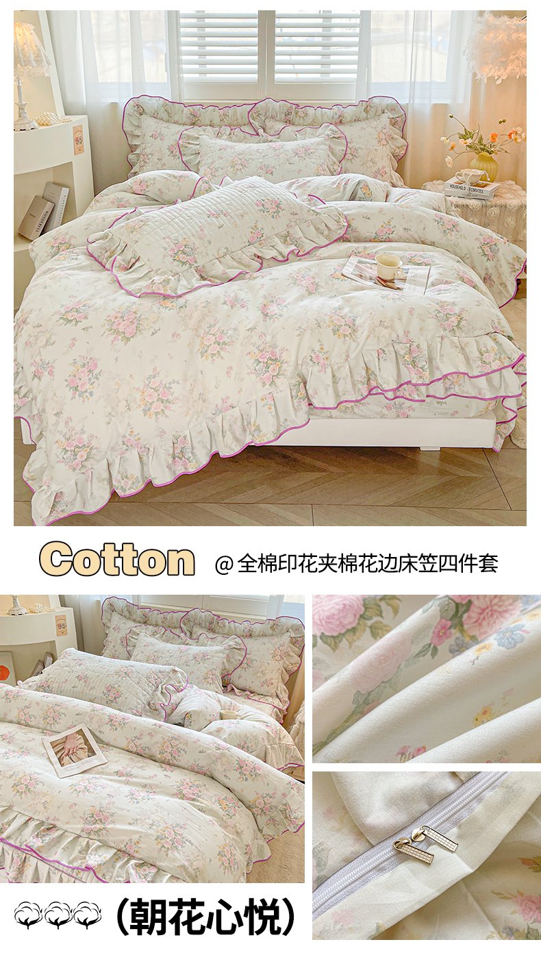 当前位置: 91家纺网 > 商品网购 > 床品套件 > 四件套 > 全棉普通四件套 > 宜凡家纺 2026新款全棉夹棉花边床笠四件套 朝花心悦