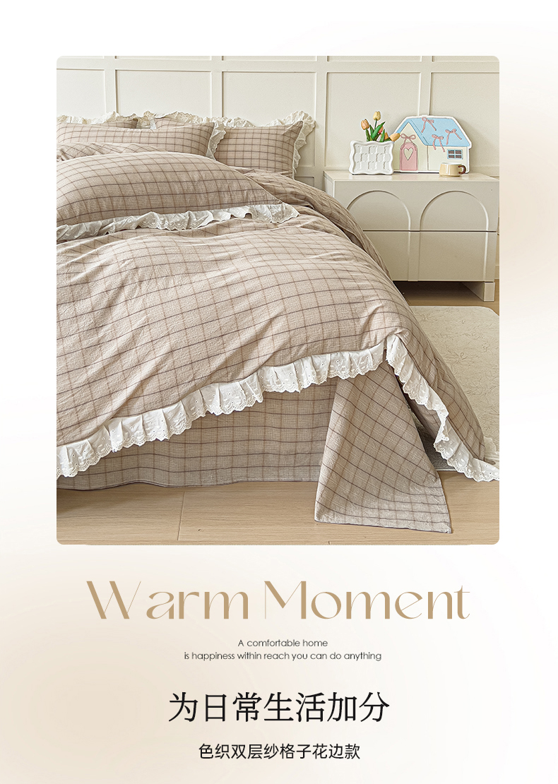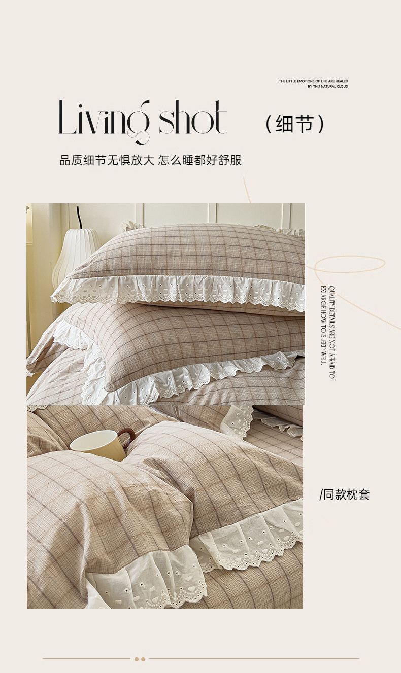 商品名称:花香四季家纺 2026全棉色织水洗棉法式公主风花边床单款床笠款四件套 南初咖