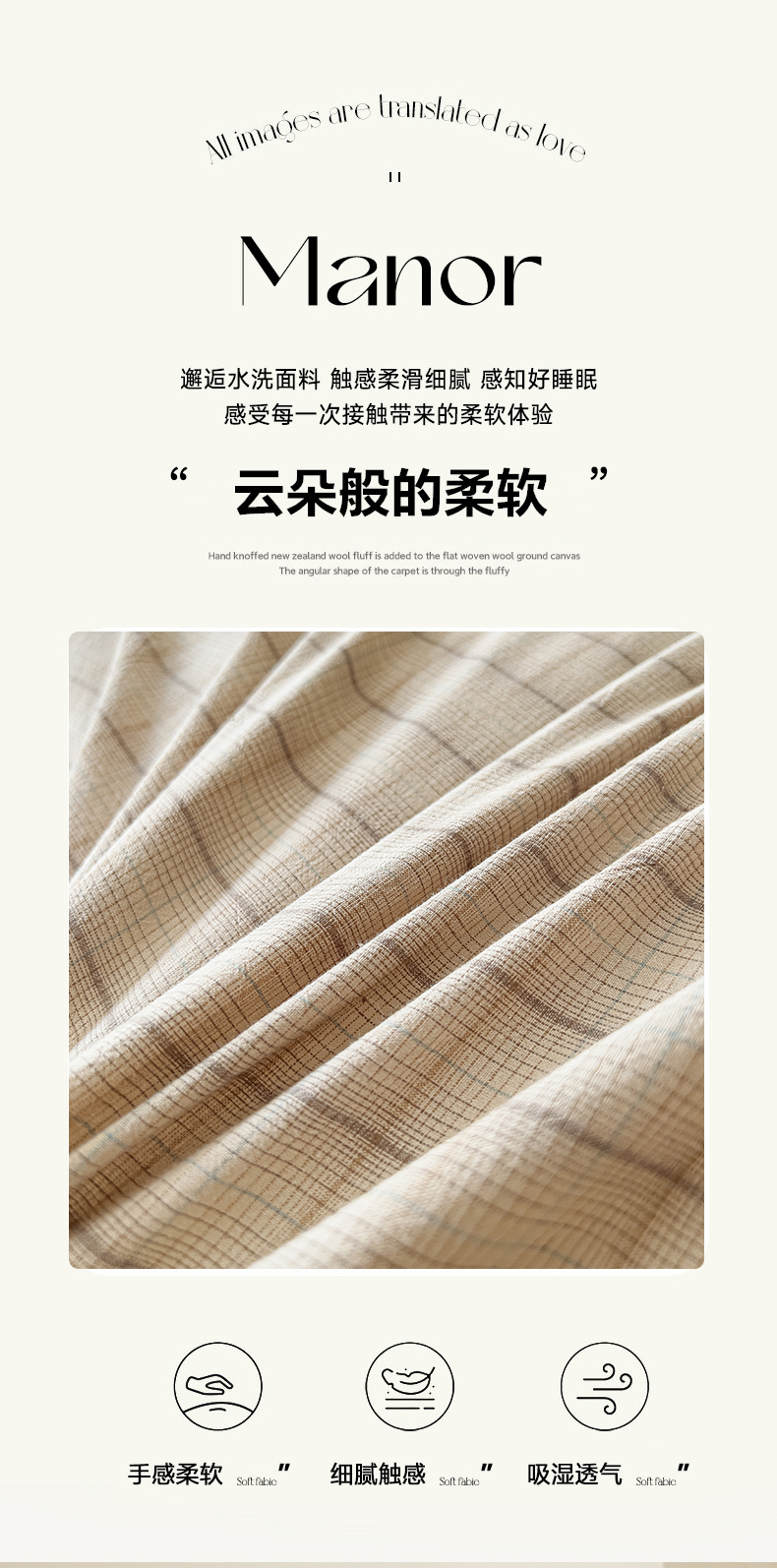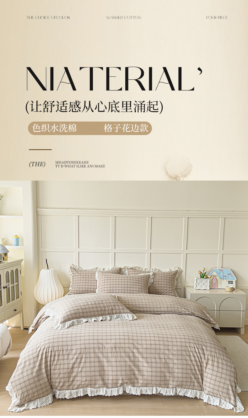 (总)花香四季家纺 2026新款简约全棉高织高密色织纯棉水洗棉四件套,黑巧,焦糖,慕斯,奶茶,组合图仅供参考 不可下单,黑桃A