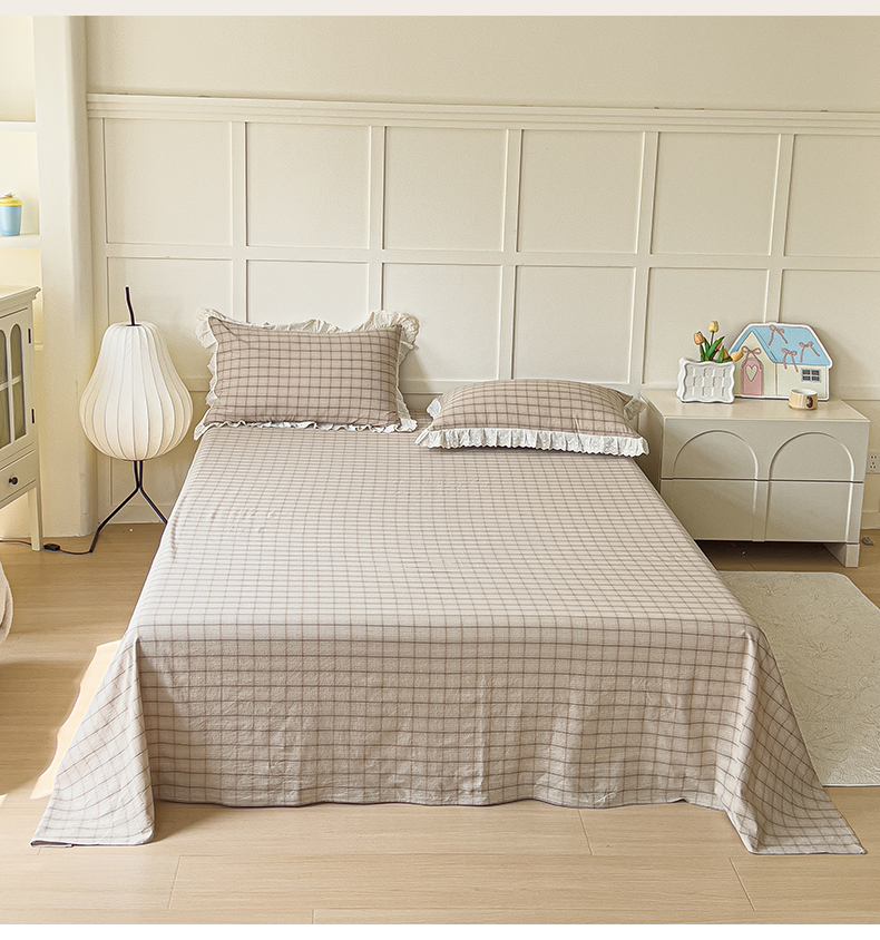 (总)花香四季家纺 2026新款全棉色织水洗棉格子系列纯棉单双人床单单件,黑巧,黑桃A,焦糖,慕斯,奶茶