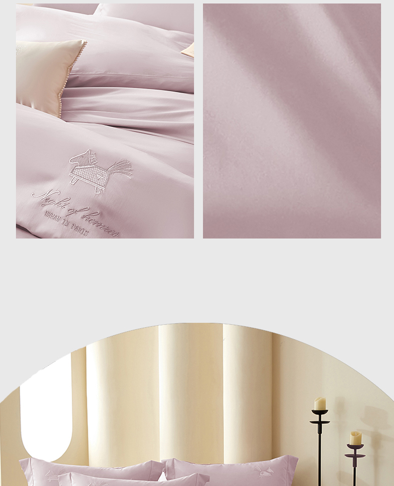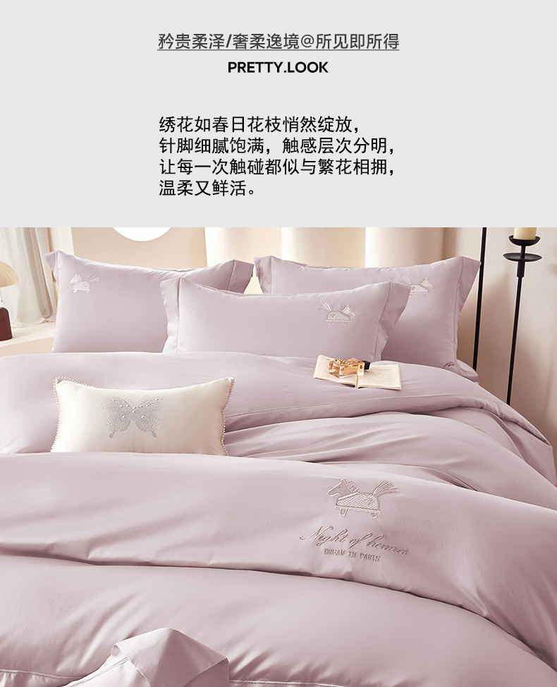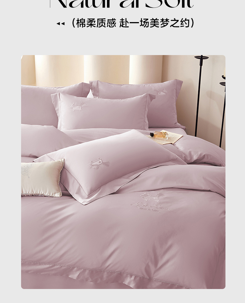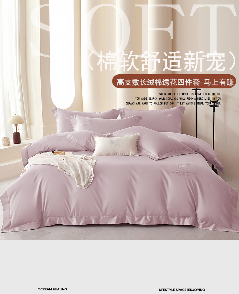 蒂爵 2026新款高支数长绒棉纯棉刺绣四件套-马上有赚系列 粉豆沙