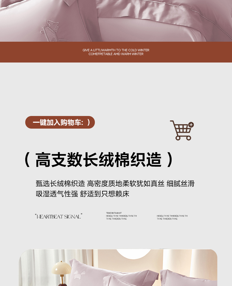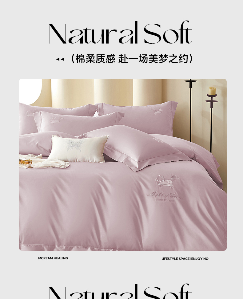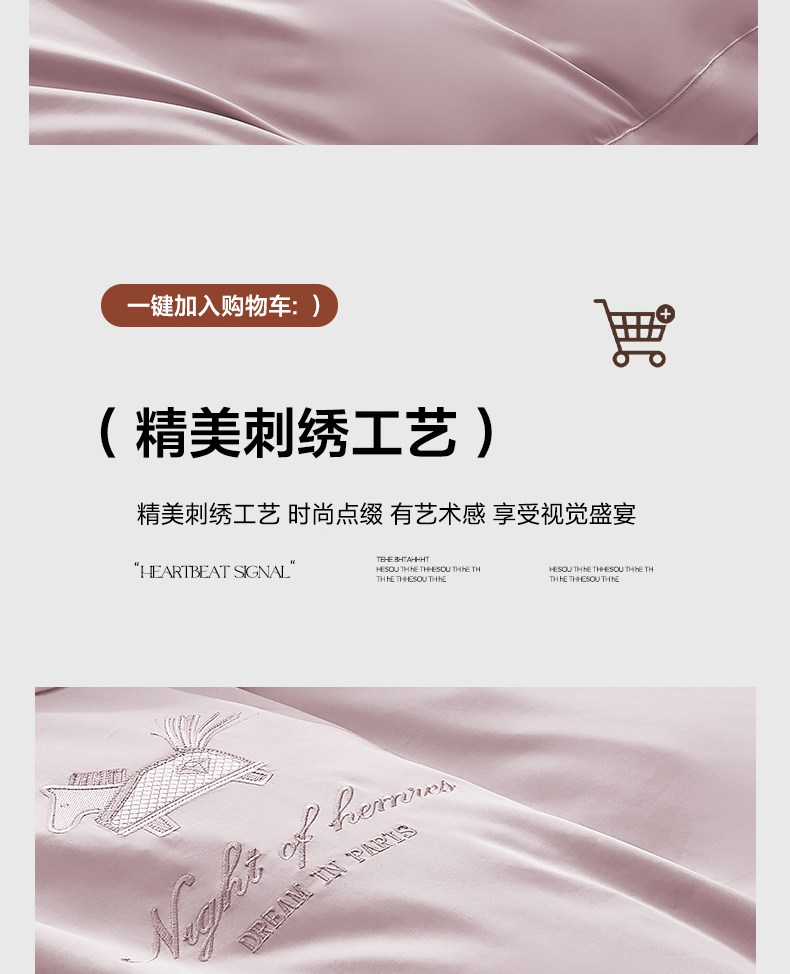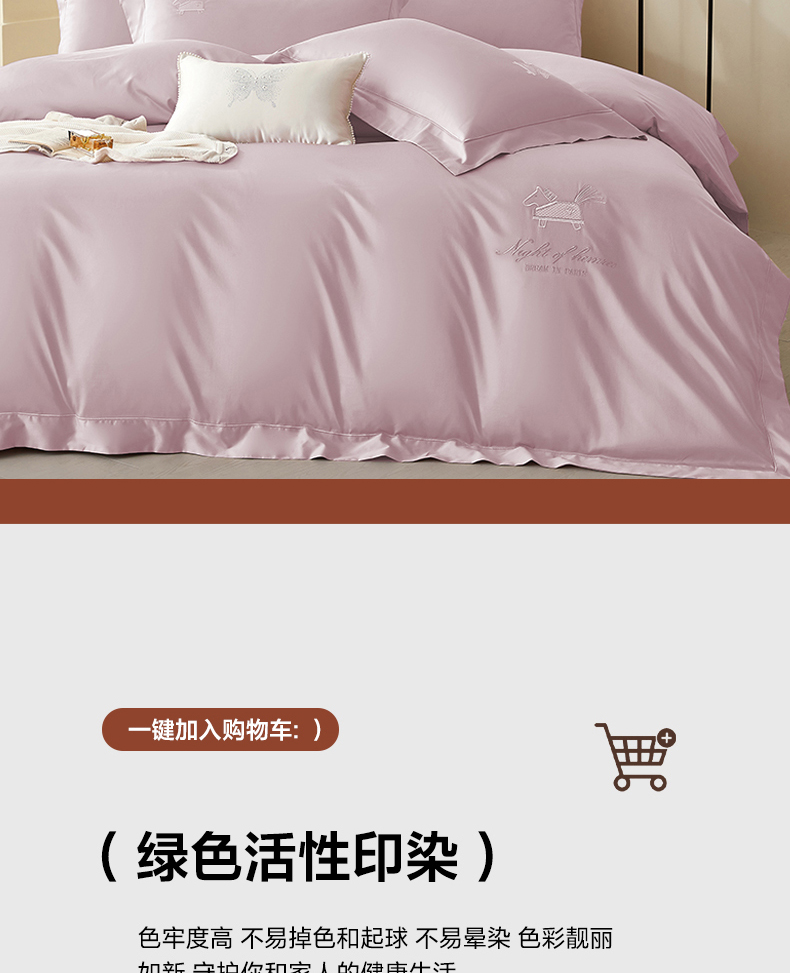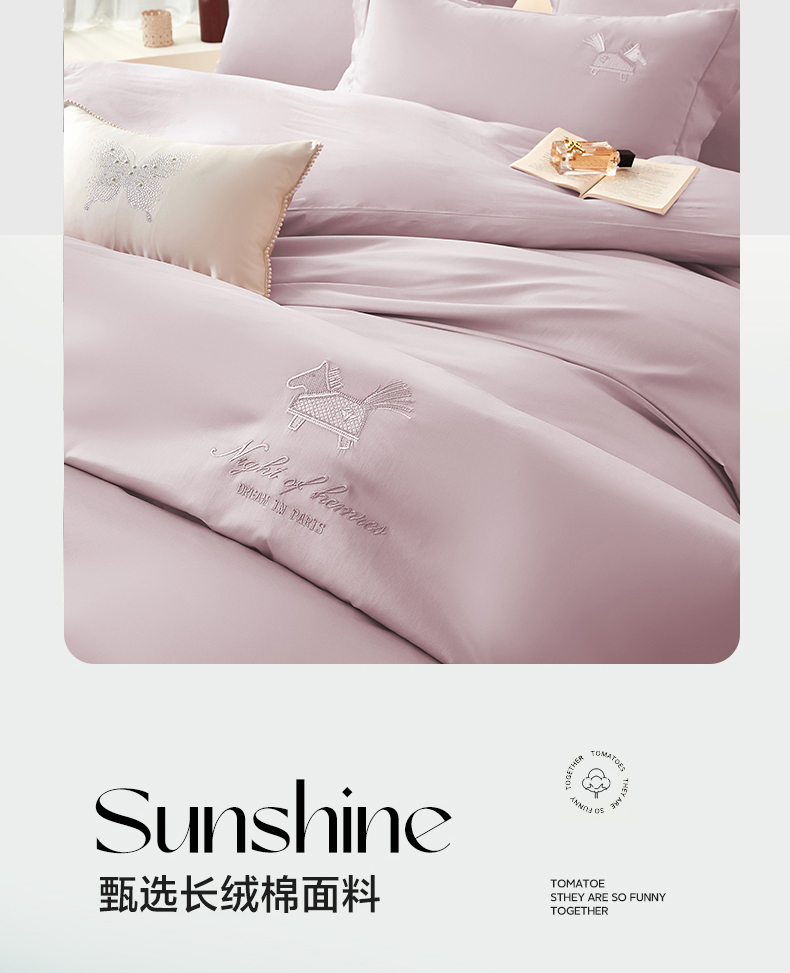 蒂爵 2026新款高支数长绒棉纯棉刺绣四件套-马上有赚系列 粉豆沙