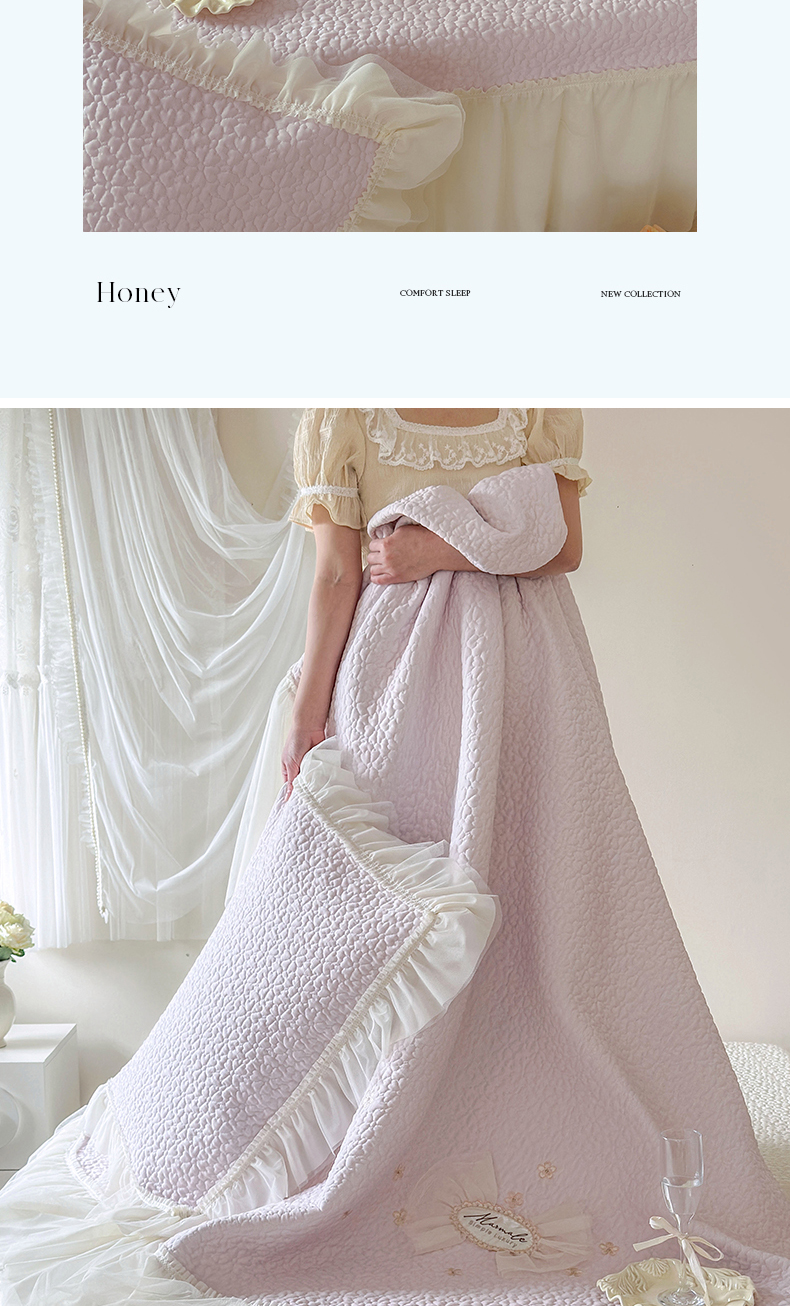 (总)乐朵家居 法派甜心 全棉40水洗棉 夹棉床盖四件套VS床单四件套(床单款控价 288 床盖款控价 338),玉,紫,兰,白,卡其