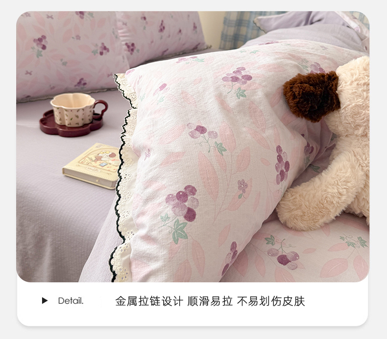 (总)温眠家纺 2026新款亲肤舒适甄选三层纱印花套件系列四件套,贩卖夏风-蓝,花丛点点猫,樱桃蝴蝶,蕾丝熊,葡萄腊肠狗,糖豆腊肠狗,星月天空,樱桃物语,雨爱,圆舞曲,芭乐米菲,彩波波,彩虹世界,动物团团,莓果结,梅森粉,莫奈-咖,沐风,秋月梨,小狗集合会,小黑豆,小花点点,幸运星,南瓜派,复古修狗,碱水结,蓝莓小猫,玫瑰夜-绿