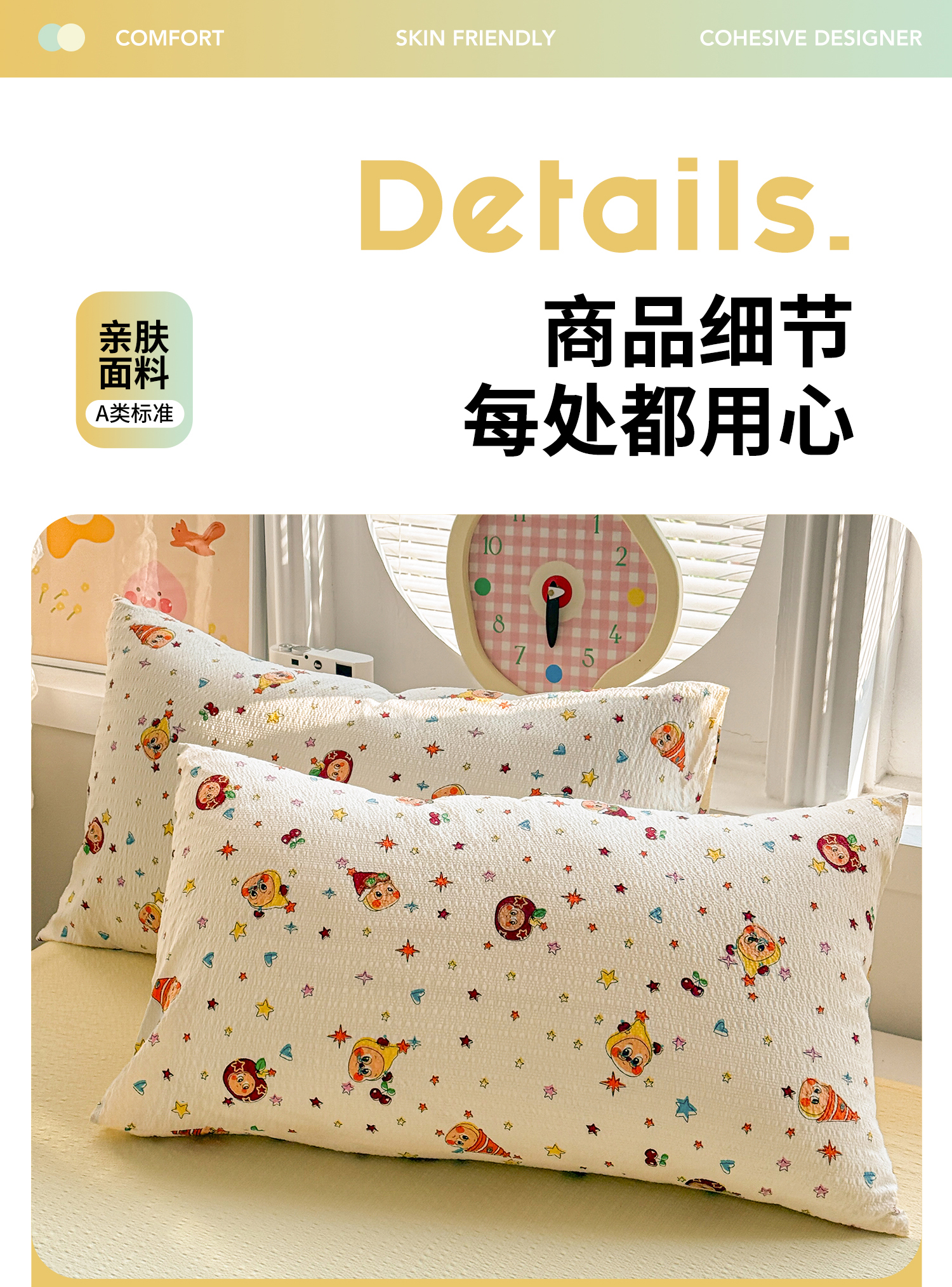 (总)小桃姐家纺 2026新款全棉纯棉贝壳边三角针单枕套双层纱枕套单件儿童枕套,芋泥兔兔,动物派对,可爱星星人,绿意盎然,萌趣木马,组合图(仅供展示不可下单)