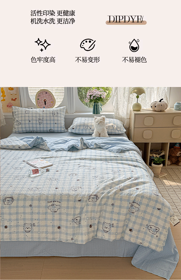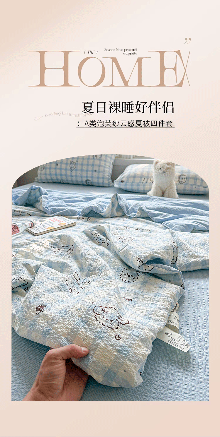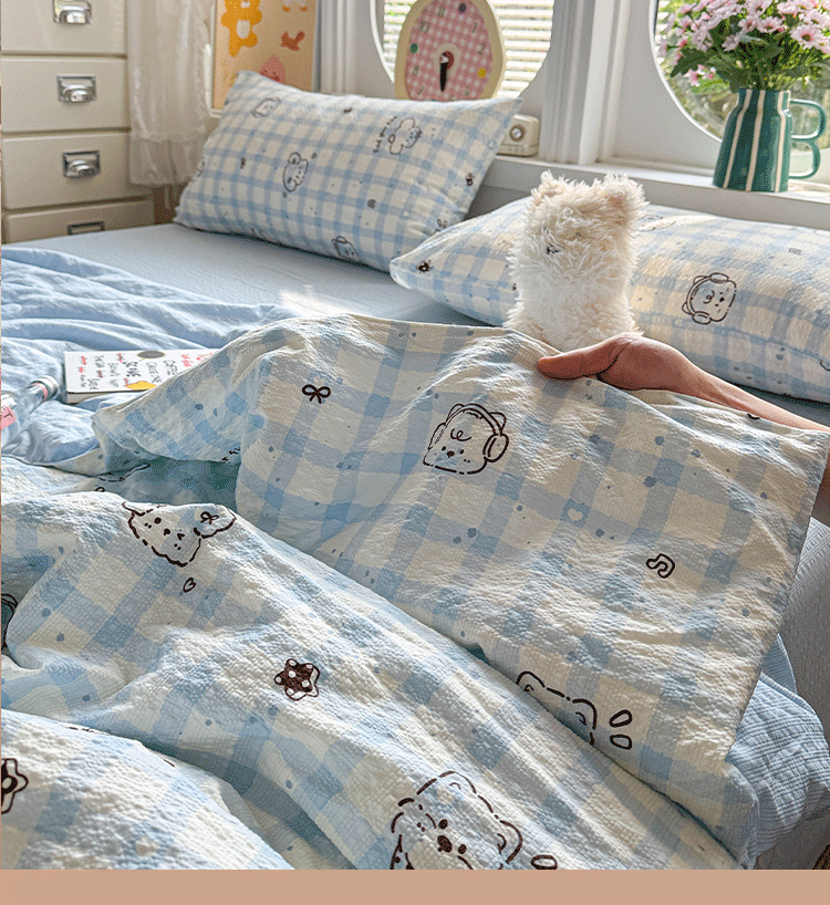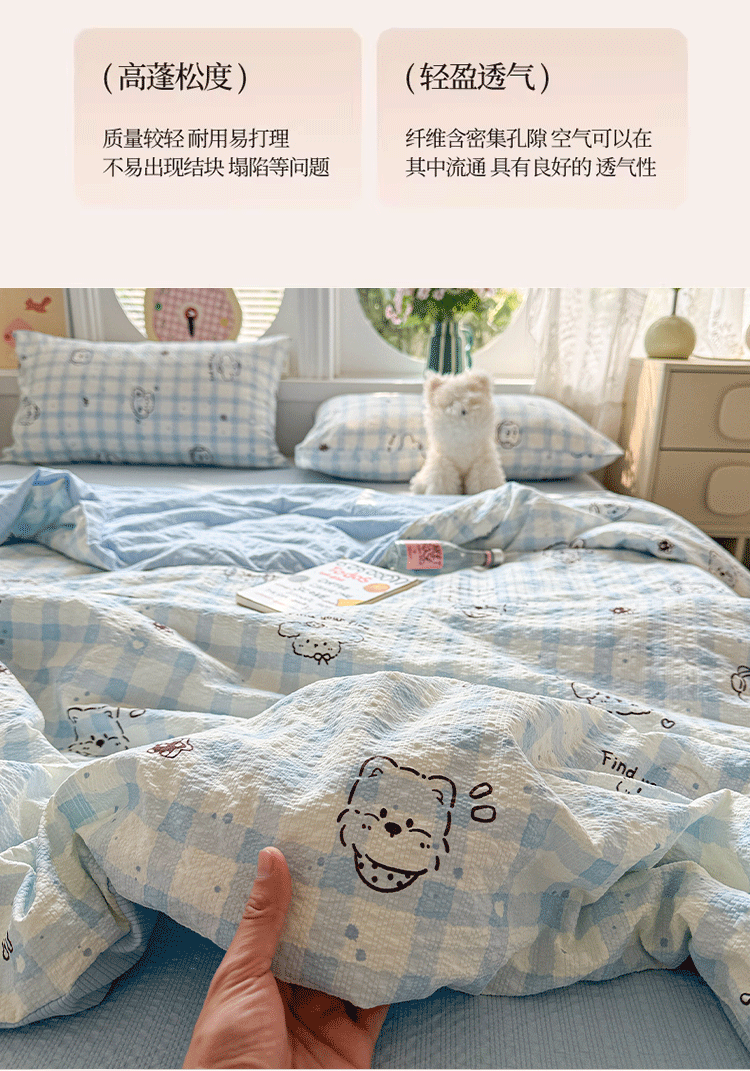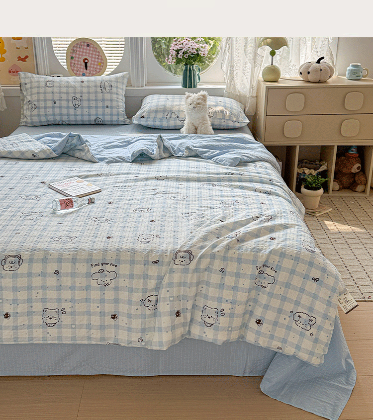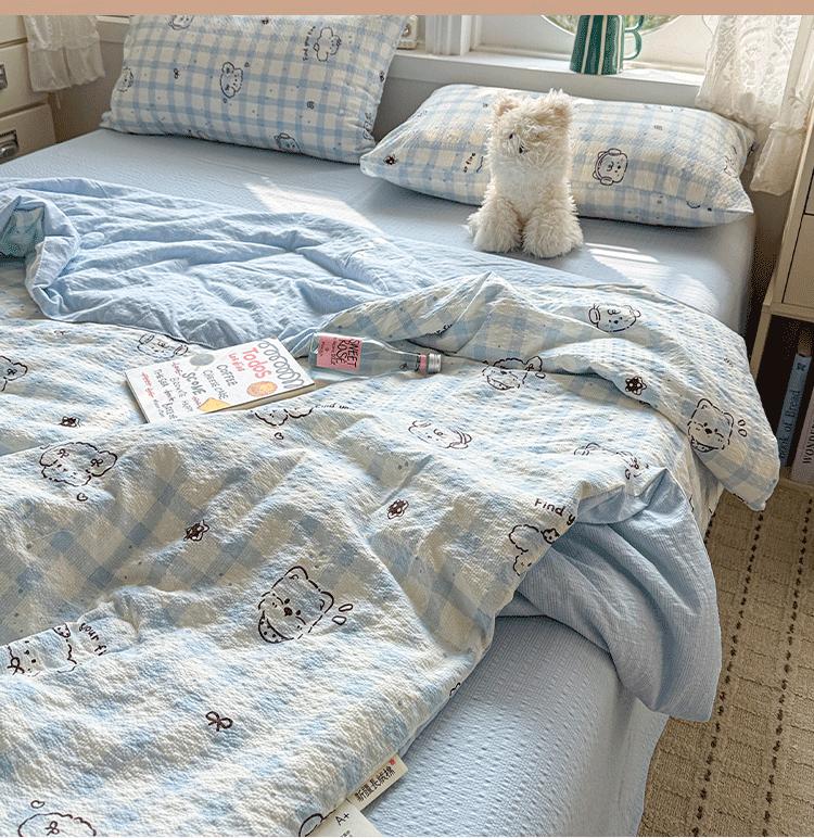 商品名称:小桃姐家纺 2026新款泡芙棉双层纱夏被空调被四件套小清新泡泡纱夏被卡通夏凉被空调被 修狗狗