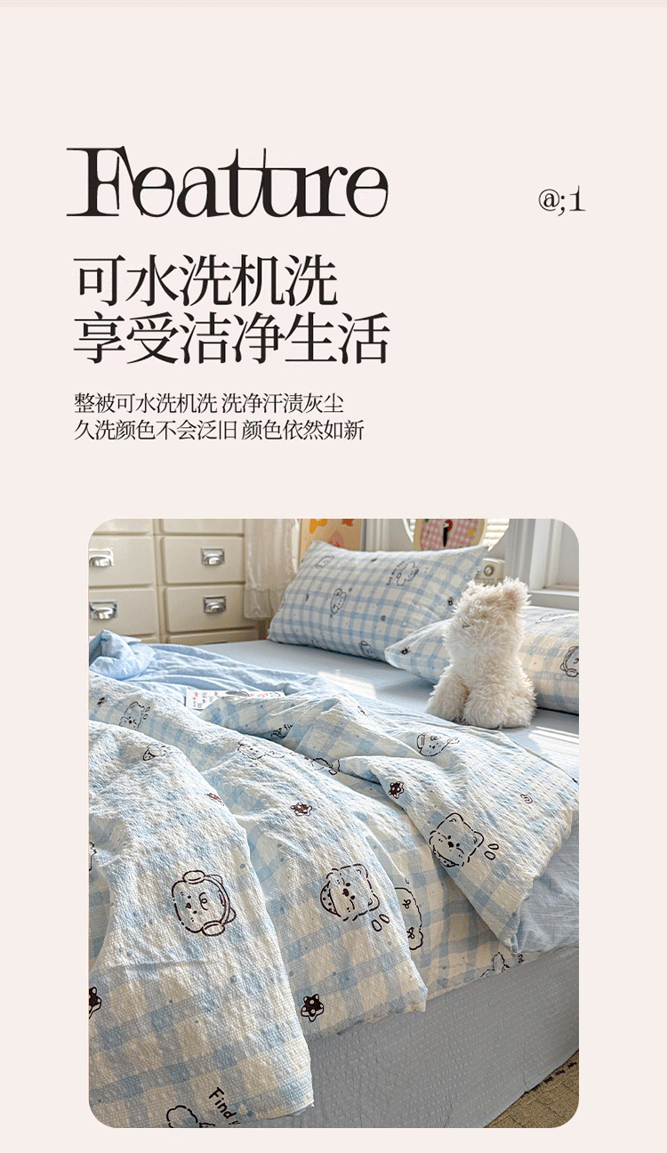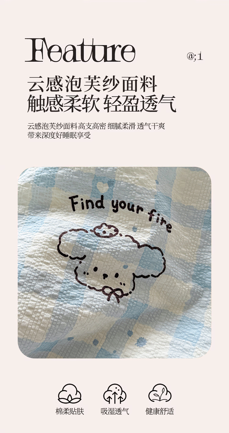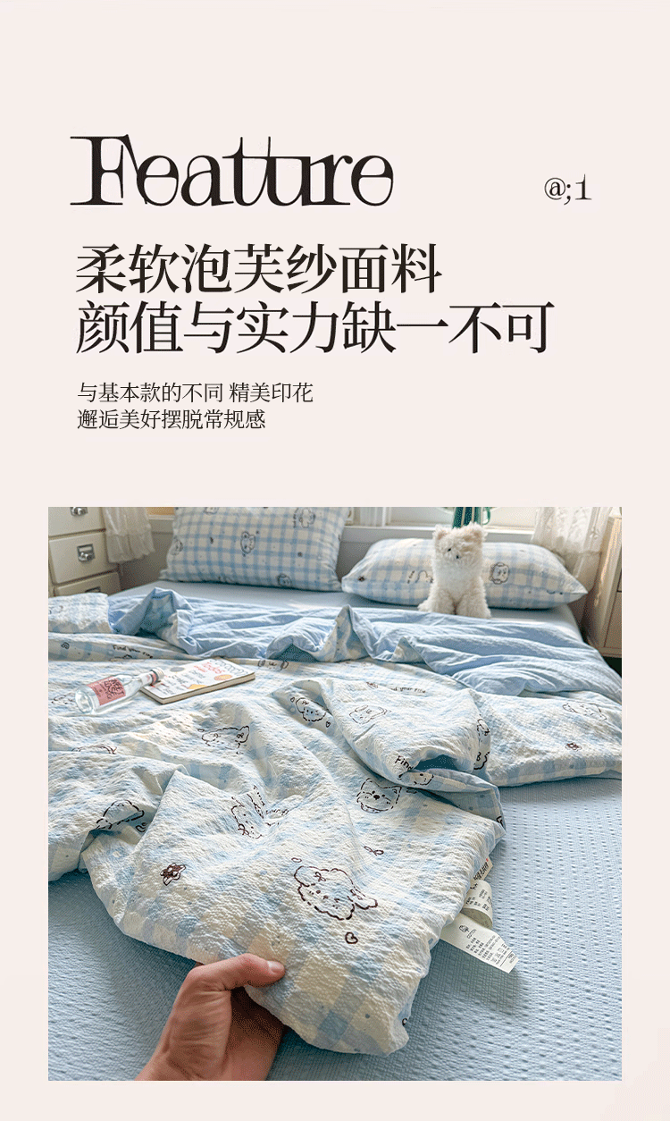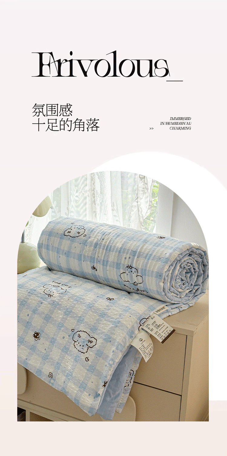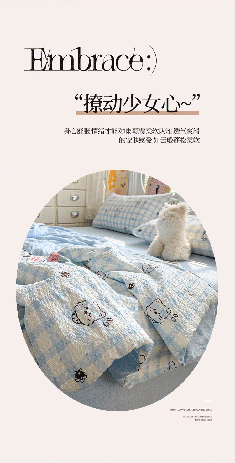 商品名称:小桃姐家纺 2026新款泡芙棉双层纱夏被空调被四件套小清新泡泡纱夏被卡通夏凉被空调被 修狗狗