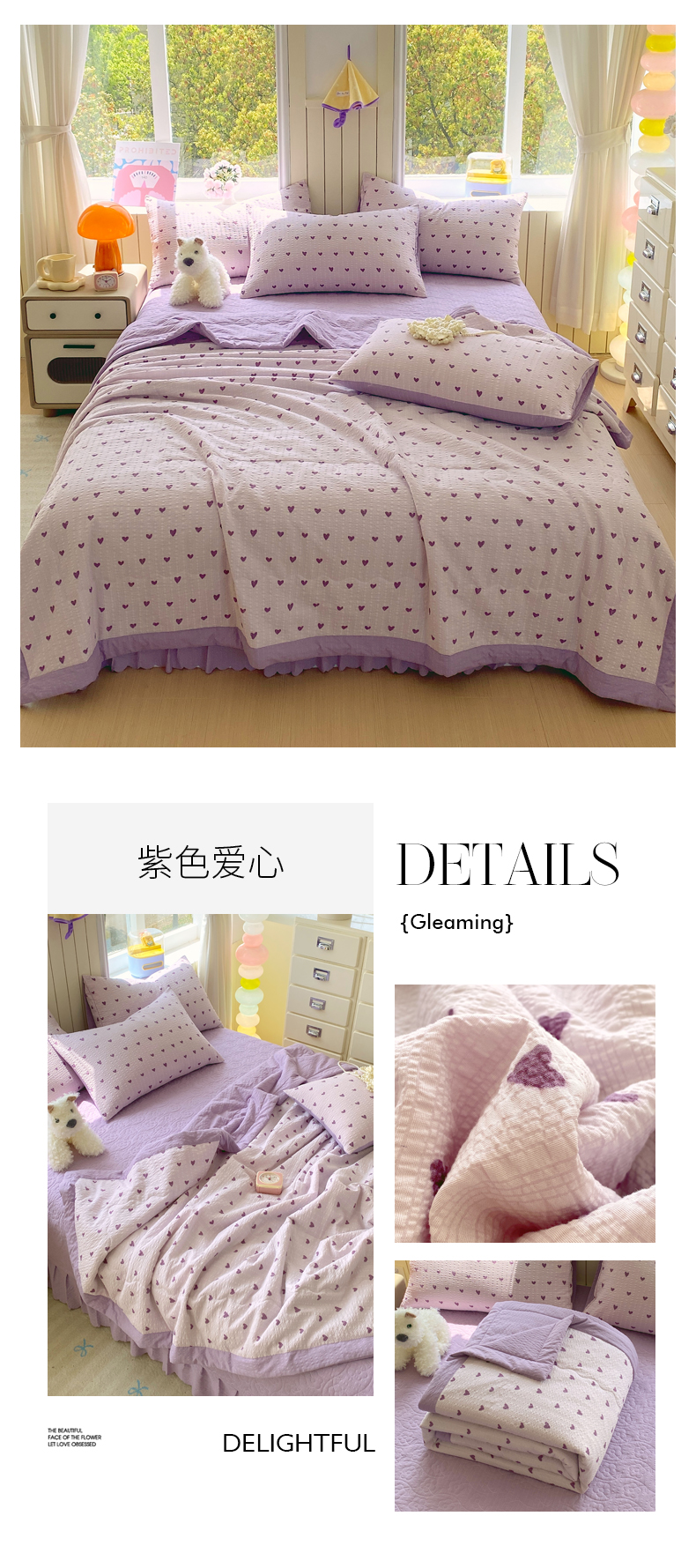 (总)莱米家纺 2026新款云感泡泡双层纱手包边夏被夏凉被空调被床盖四件套,费尔岛-红,费尔岛-咖,费尔岛-紫,海底星星,卡其波点,绿花枝叶,绿樱桃,兔兔之家,星星人,紫色爱心,棕蝴蝶结