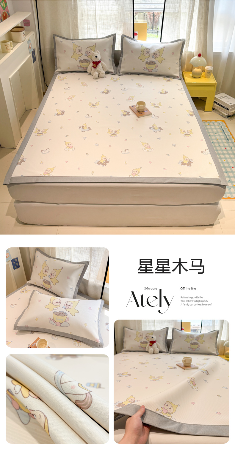 (总)慕尚家纺 2026新款清新凉感冰藤席床笠款,小福气,春日小兔,福禄小狗,蝴蝶结,活力小猫,开心约克,马踏祥光,梦幻紫花,魔法小熊,情人草,碎冰蓝,天使星仔,顽皮兔,小猫耶,小毛球,星星宝宝,星星熊,紫气东来