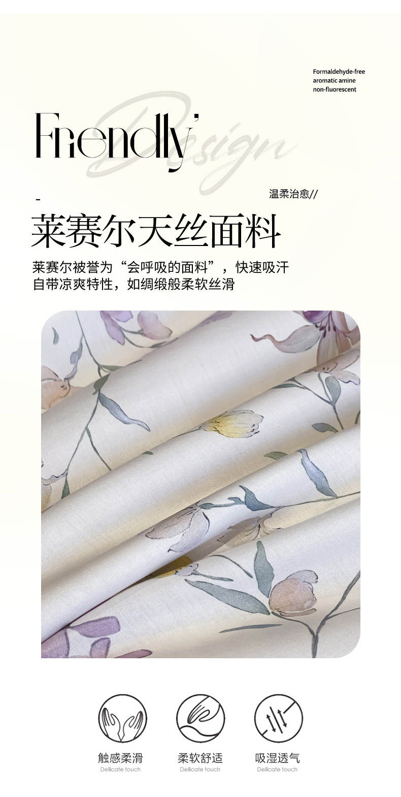 商品名称:慕尚家纺 2026春夏新款莱赛尔天丝夏被夏凉被空调被夏被四件套 花亦语