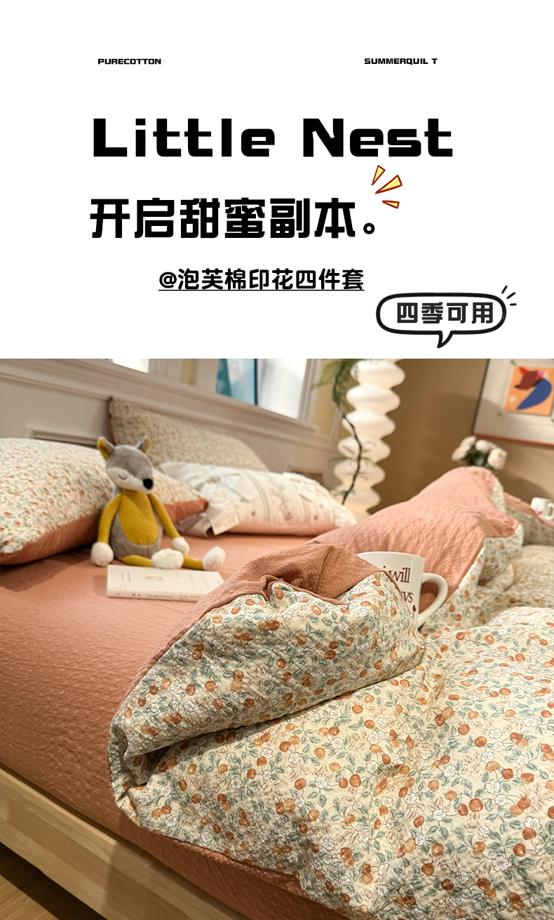 当前位置: 91家纺网 > 商品网购 > 床品套件 > 四件套 > 化纤普通四件套 > 水墨江南 2026直播热款泡芙棉双层纱四件套 甜果果
