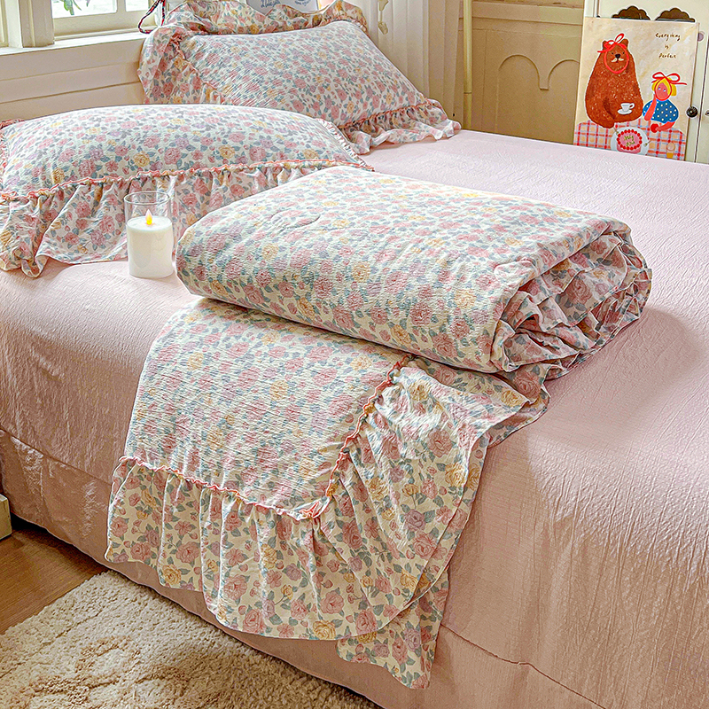一比一家纺 2026春夏新款法式大花边木棉皱皱纱夏被夏凉被空调被四件套 时梦