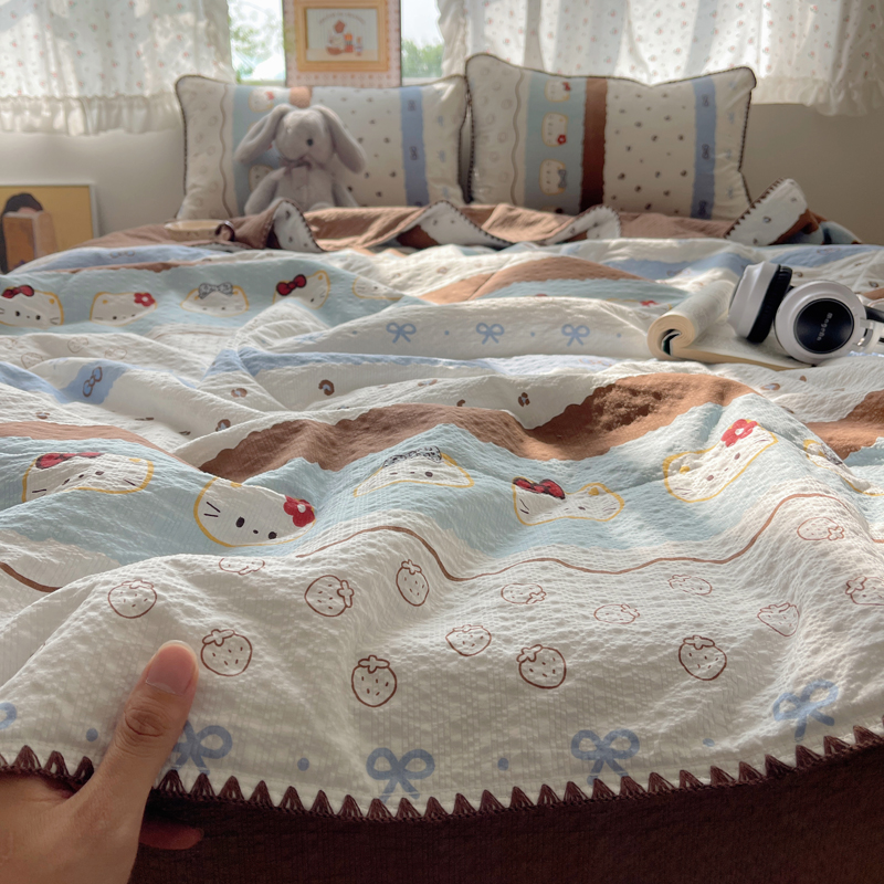 (总)梵希雅 2026新款泡芙纱三角针床盖夏被四件套,波点,粉色小心心,格格心,旧街星星,咖豹纹,兰爱心,描线小猫粉,描线小猫咖,浅川纹,森林描绘,田园兔,星光凯蒂,只闻花香,紫陌,KT 猫