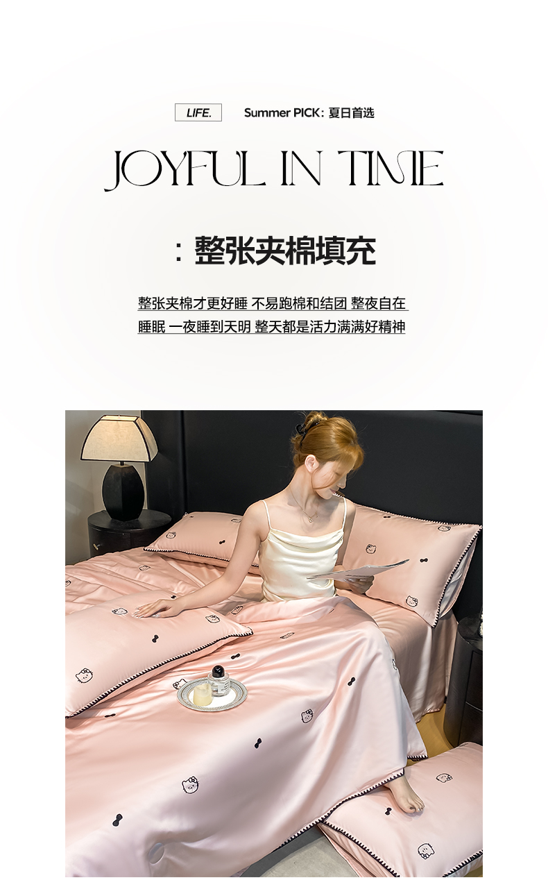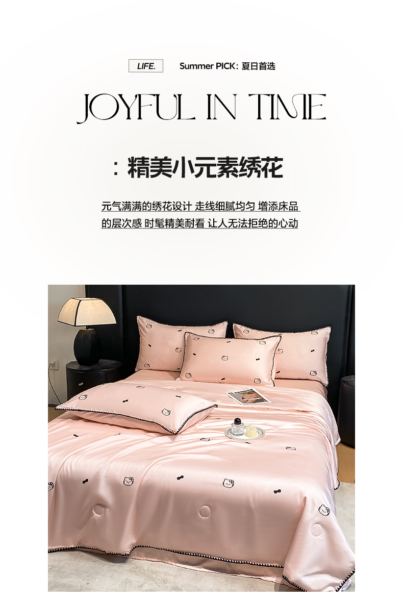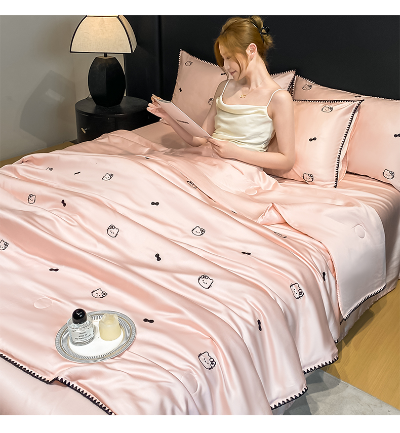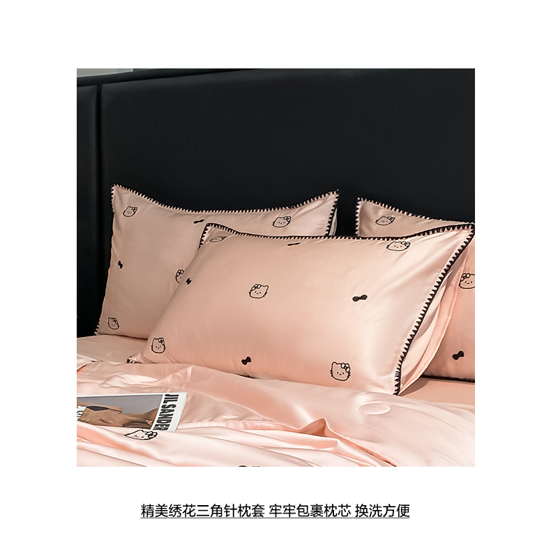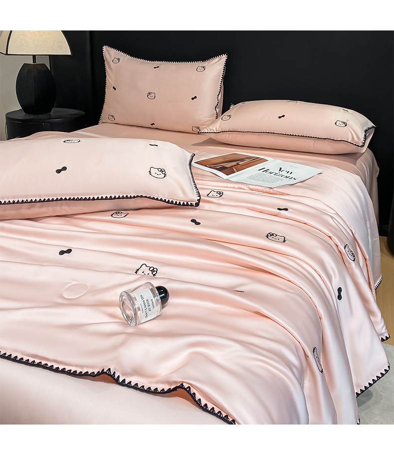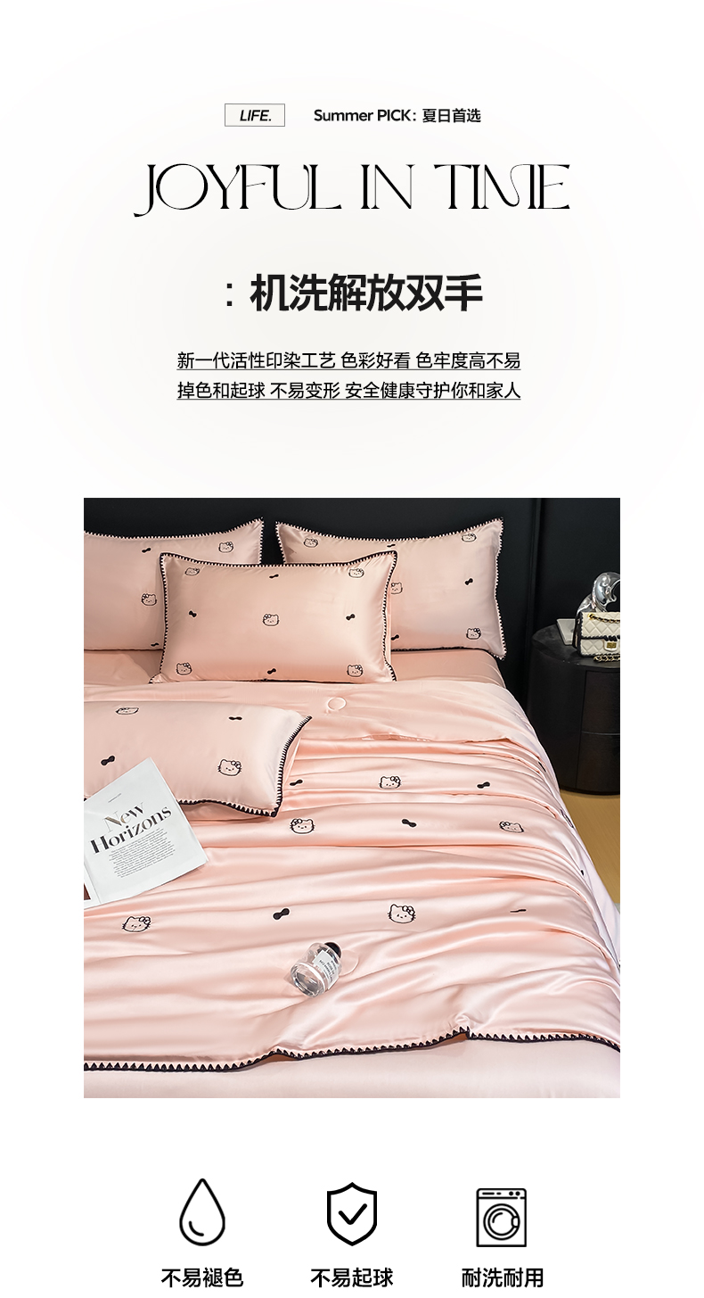 当前位置: 91家纺网 > 商品网购 > 被子 > 夏被 > 如一 2026新款水洗冰丝刺绣三角针工艺夏被四件套 可美猫-粉黑