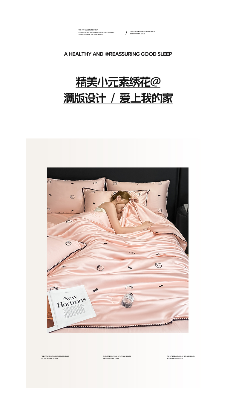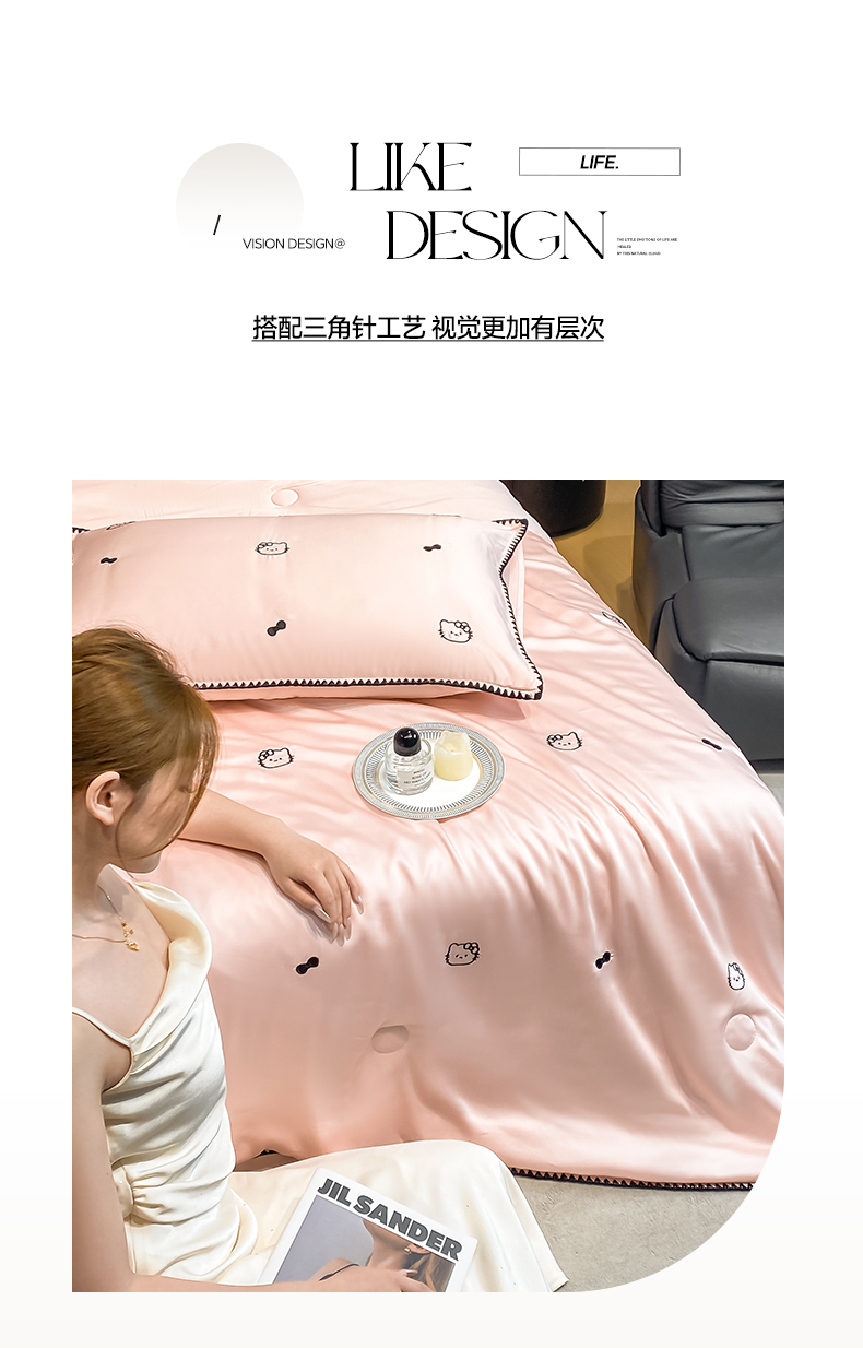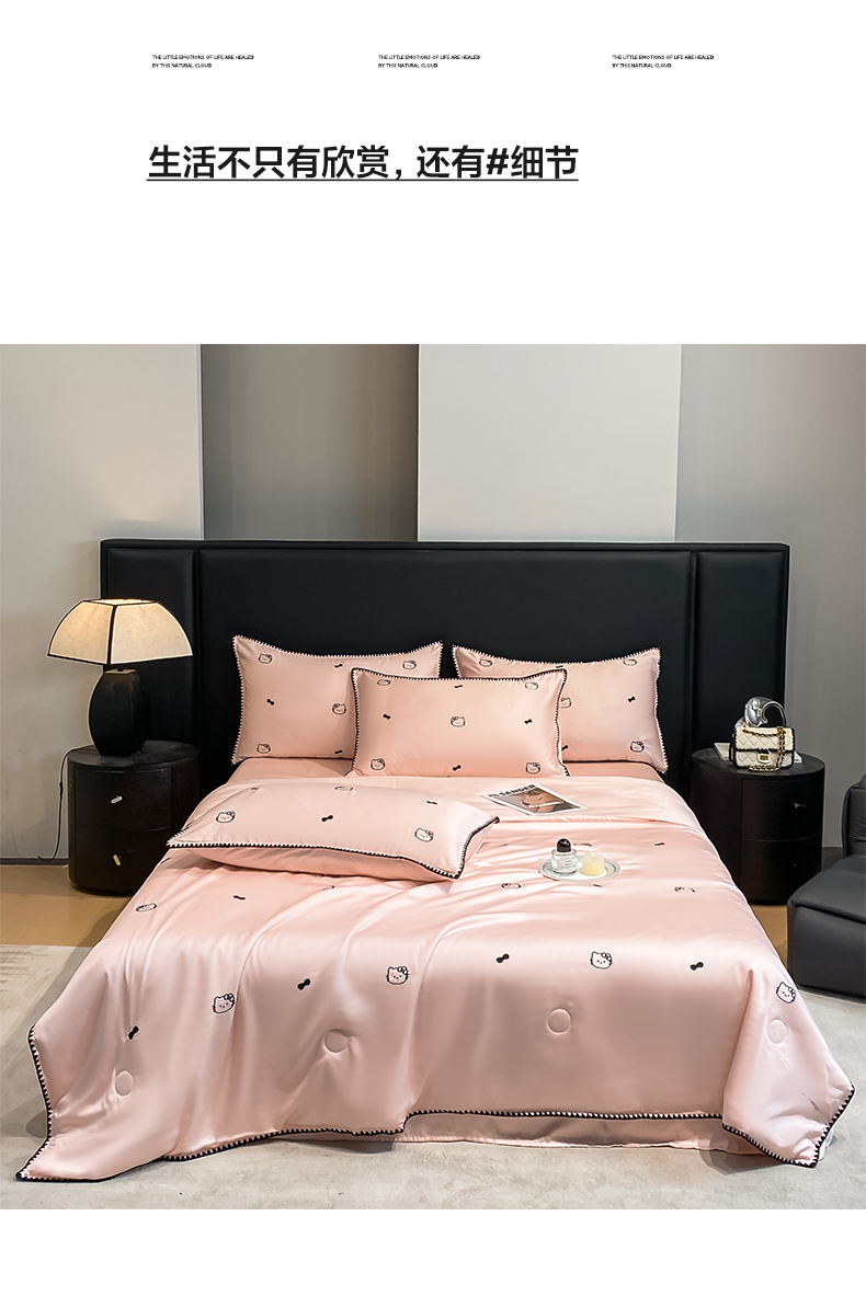 • 91家纺网 家纺一手货源 找家纺 如一 2026新款水洗冰丝刺绣三角针工艺夏被四件套 可美猫-粉黑