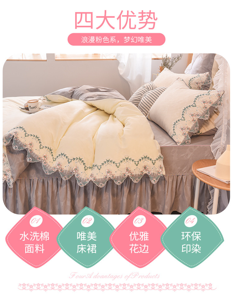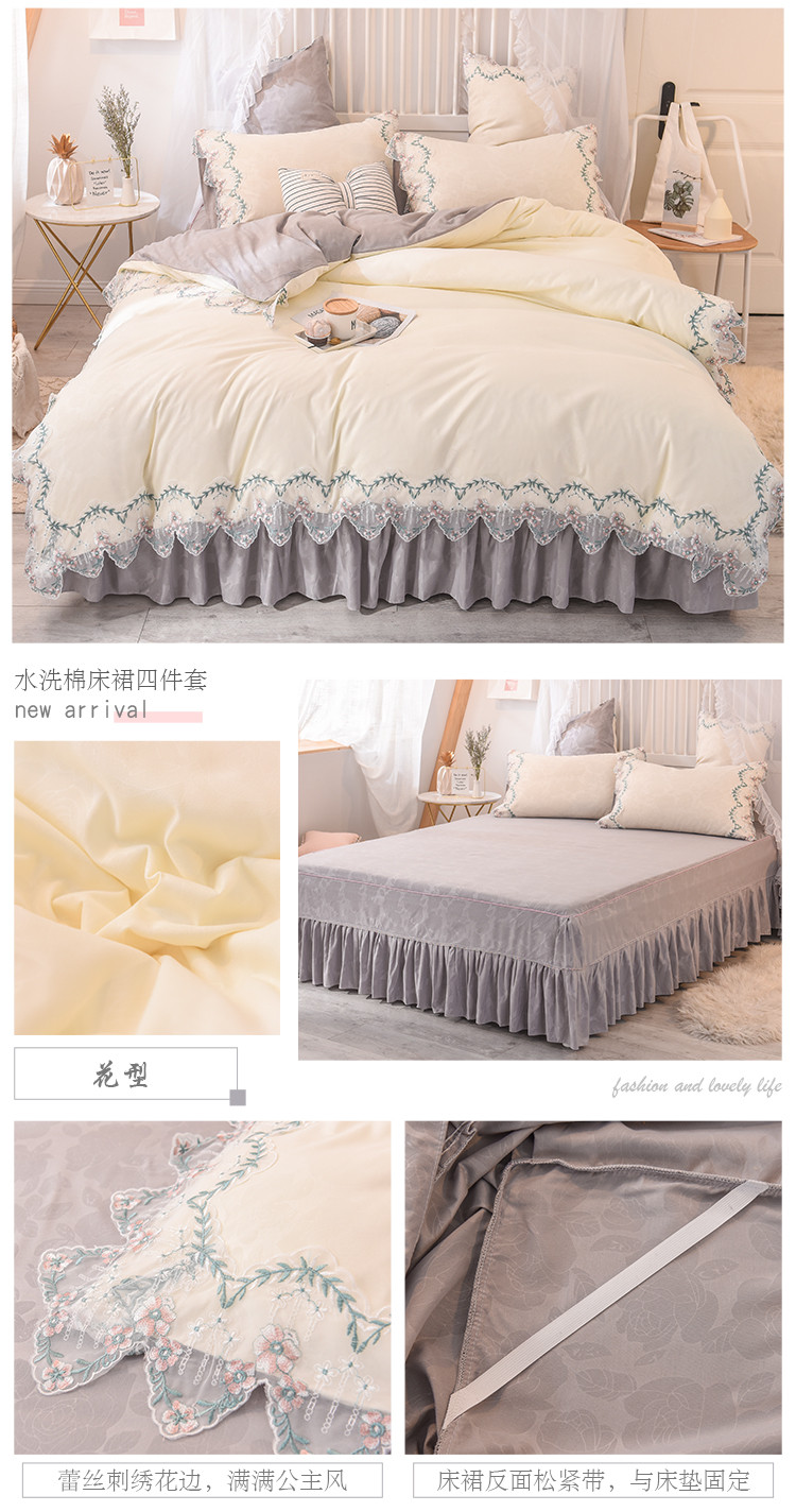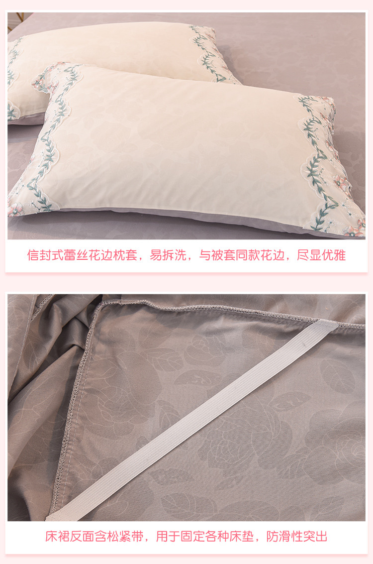 绒世界 2021新品玫瑰秘密系列四件套床裙款玫瑰秘密+白灰
