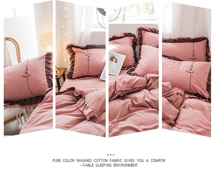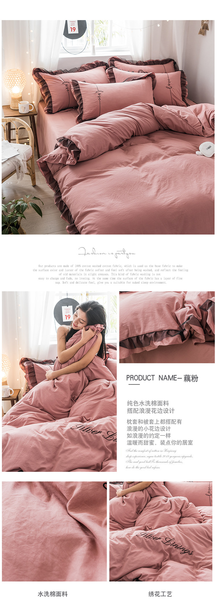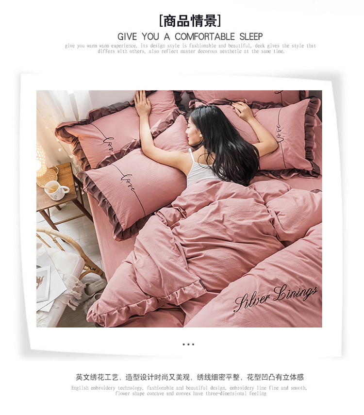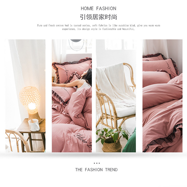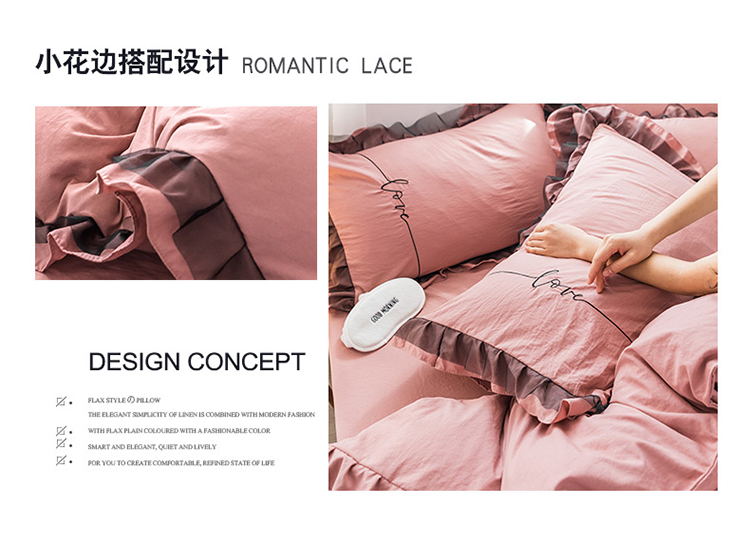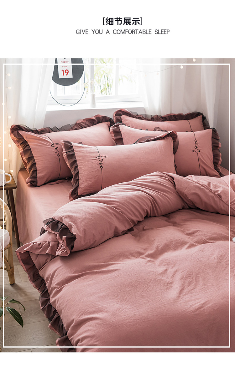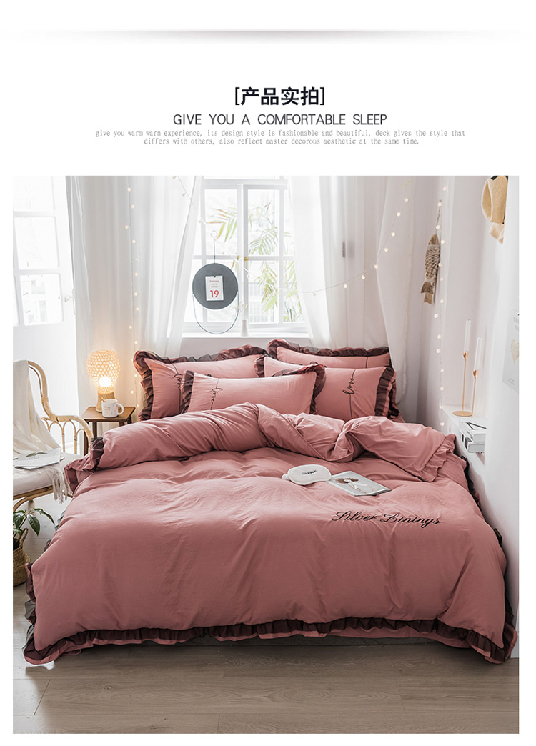 商品名称:AB家纺 2019新款水洗棉蕾丝边四件套 藕粉