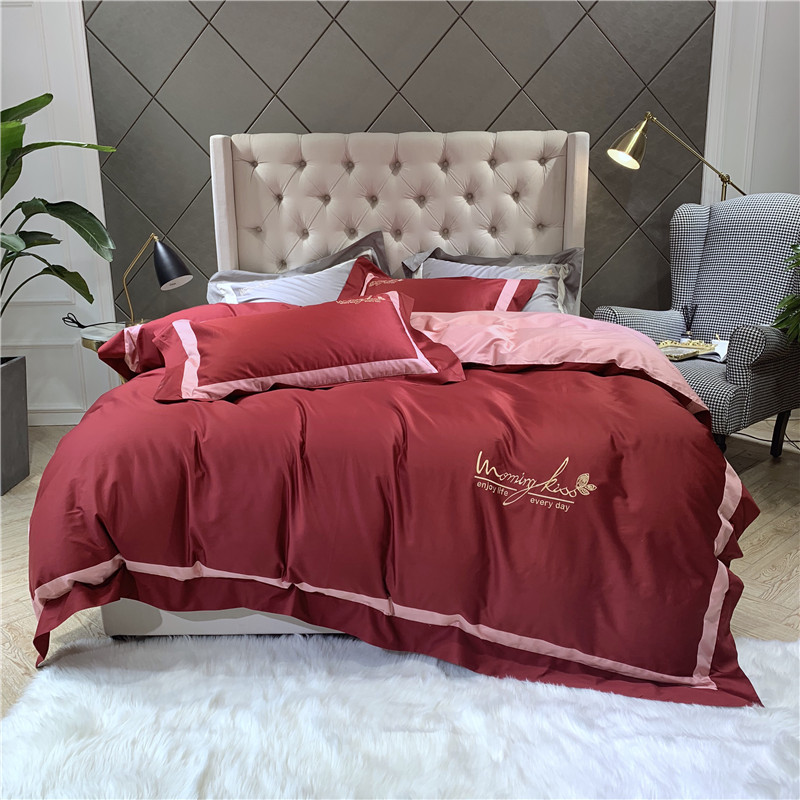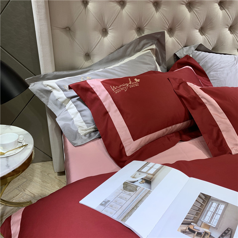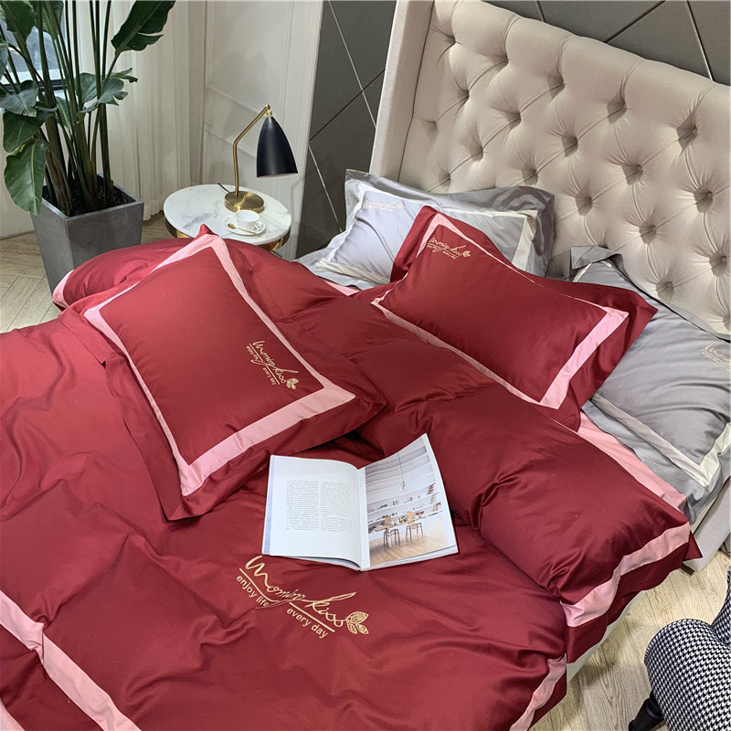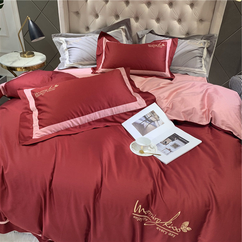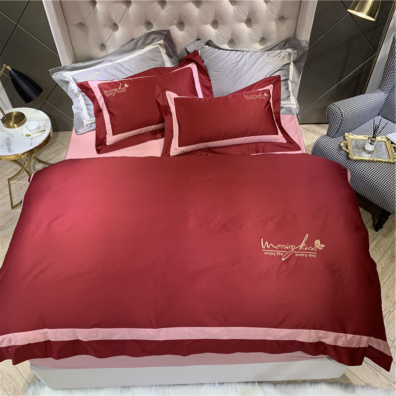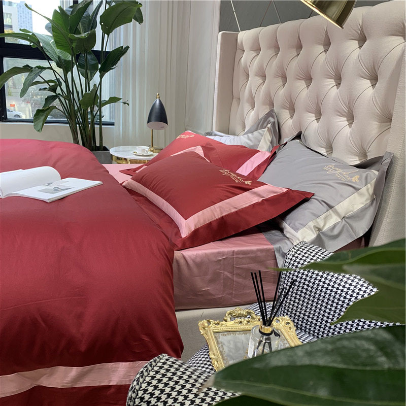 太古汇 2019新款纯色拼色绣花四件套 波多尔红
