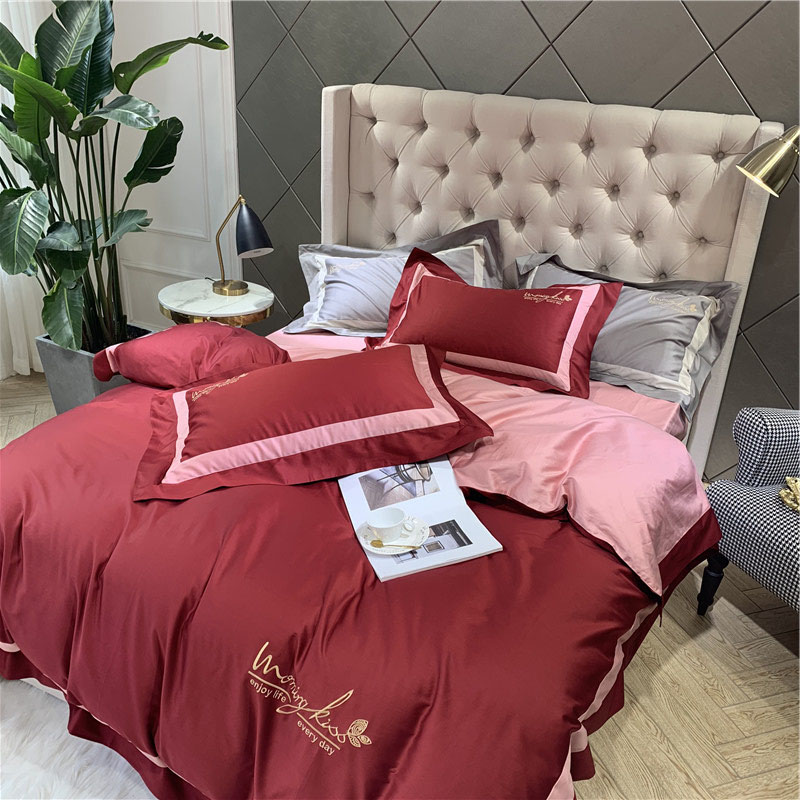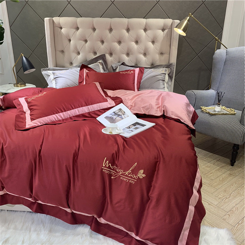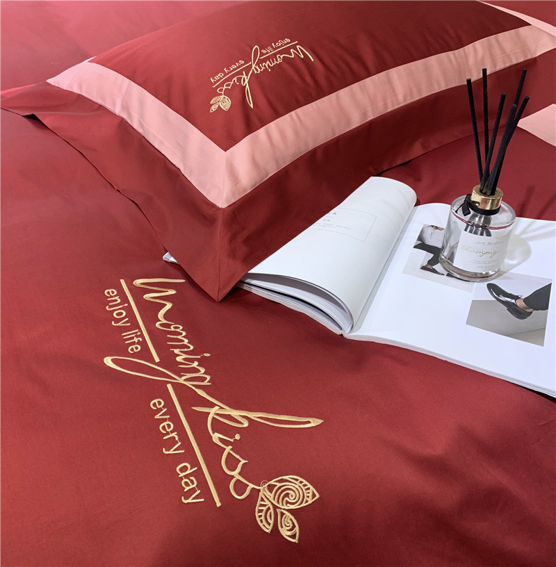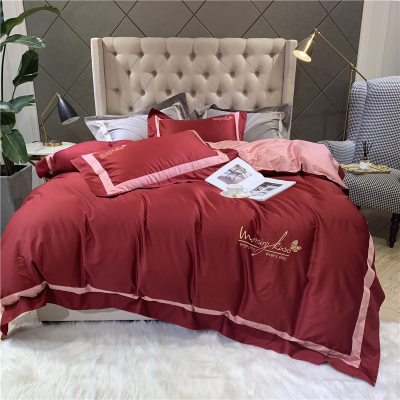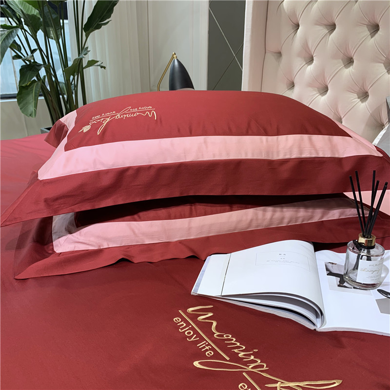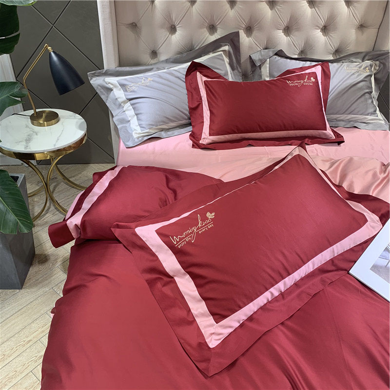 太古汇 2019新款纯色拼色绣花四件套 波多尔红