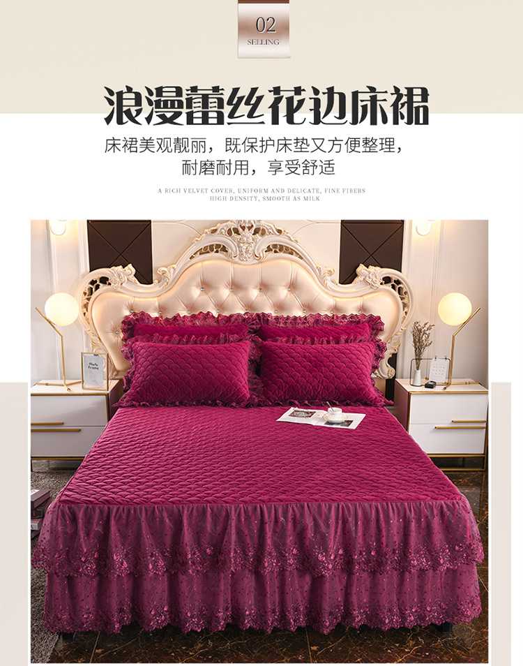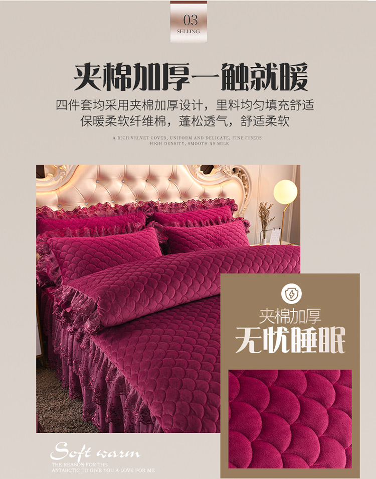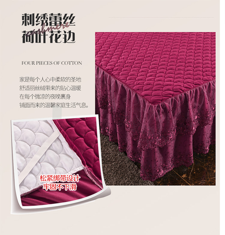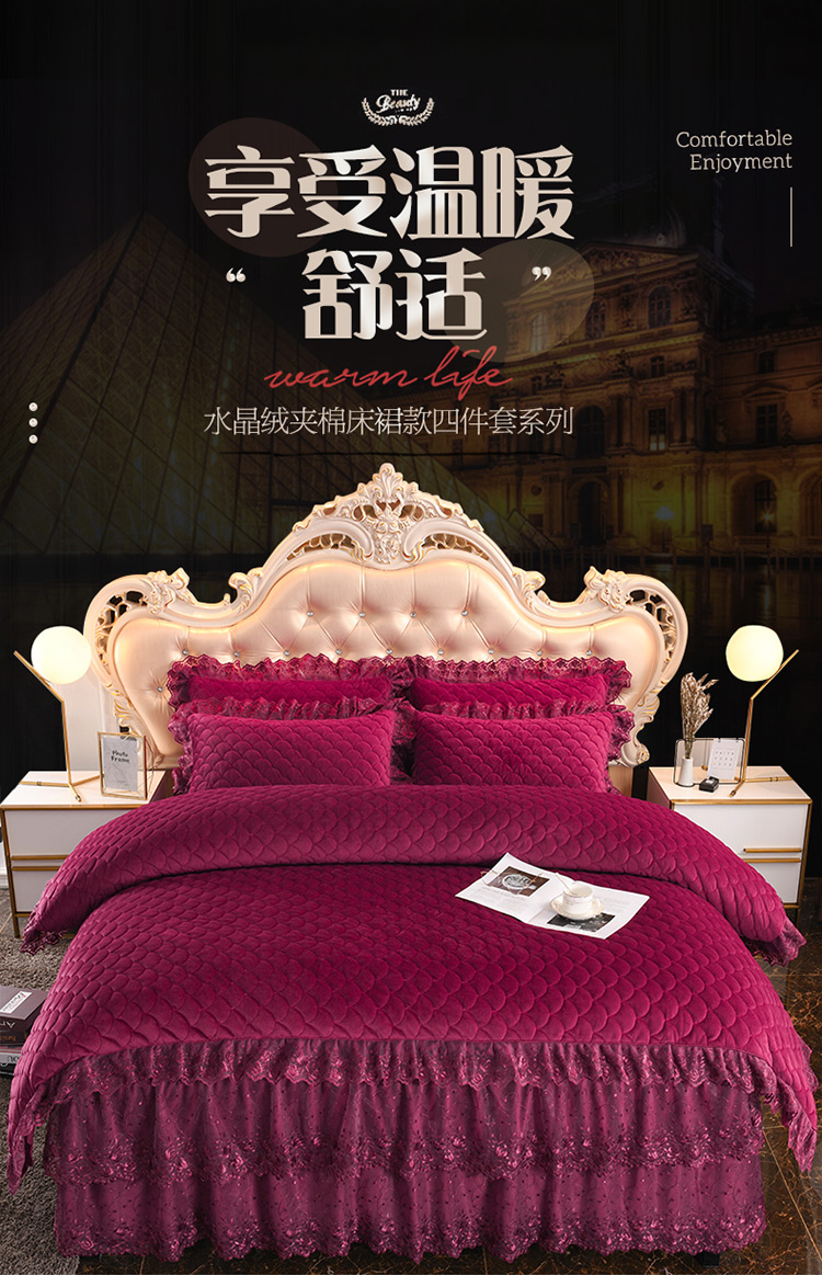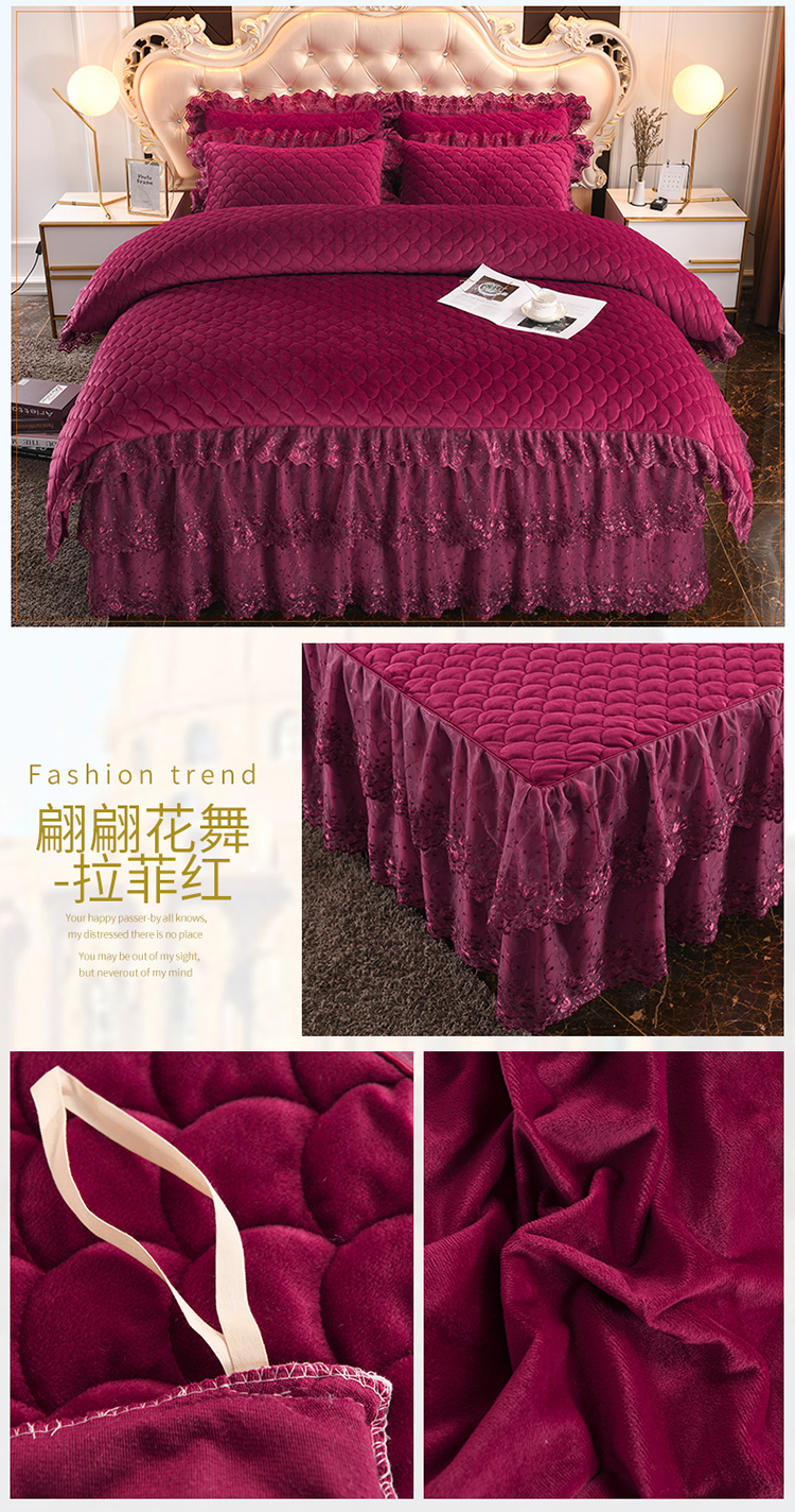 (总)恒爱 2022秋冬水晶绒翩翩花舞夹棉床裙四件套,大红色,豆沙红,橄榄绿,公主粉,桔色,咖啡色,孔雀绿,拉菲红,罗兰紫,玫红色,美人玉,米白色,米驼色,抹茶绿,浅灰色,紫色
