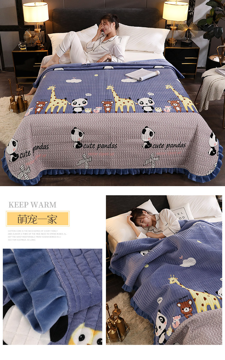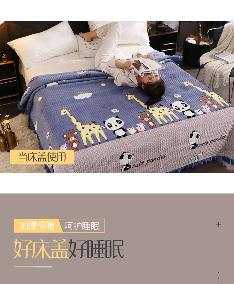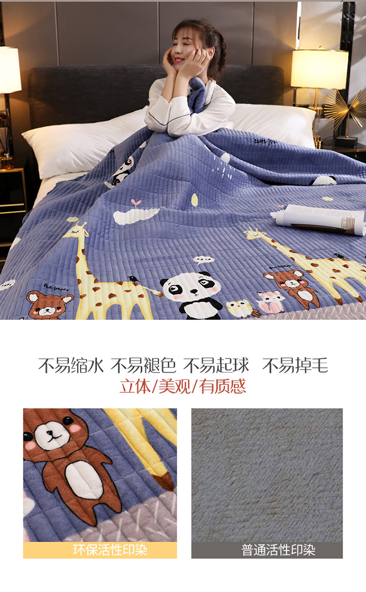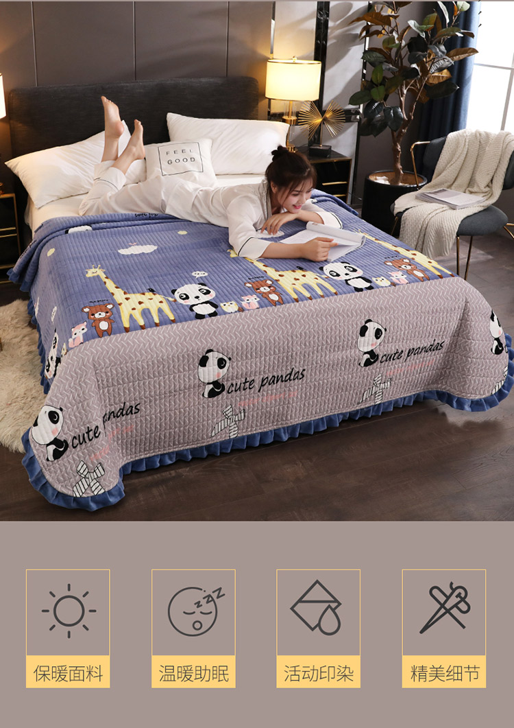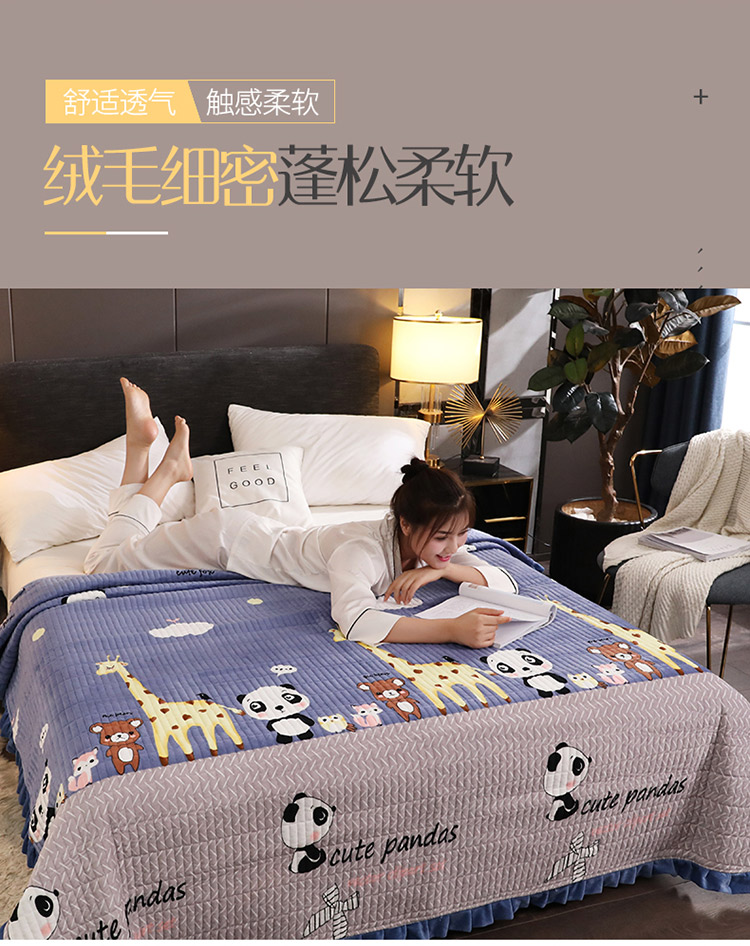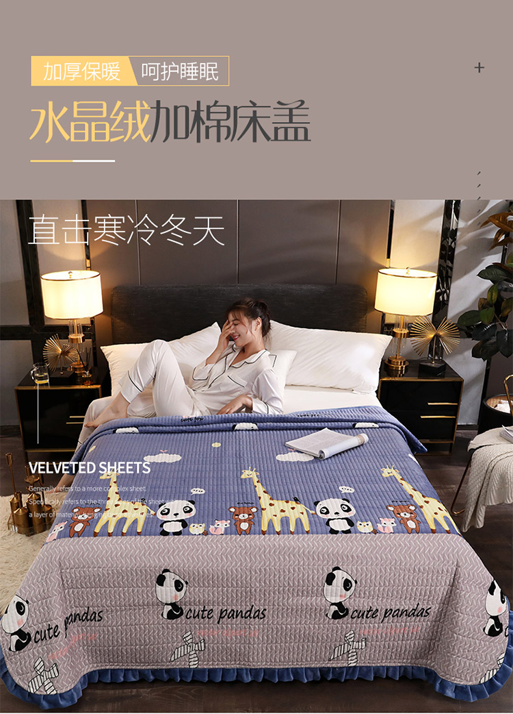 商品名称:温宁家纺 水晶绒水洗棉床盖 萌宠一家