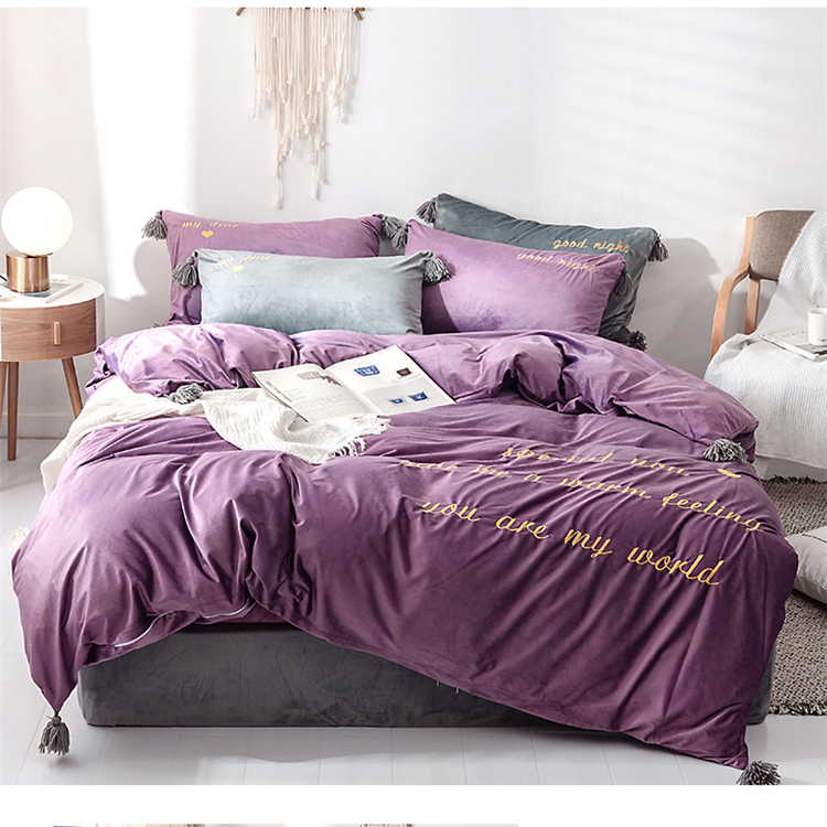 商品名称:北纬27度 2019新款流苏刺绣加厚宝宝绒四件套 凝香紫