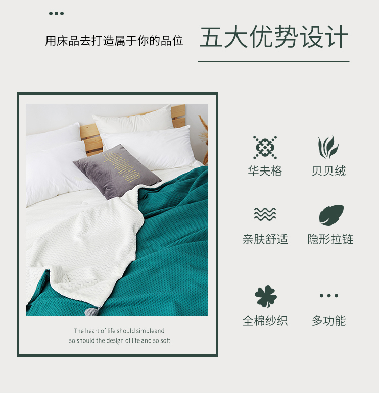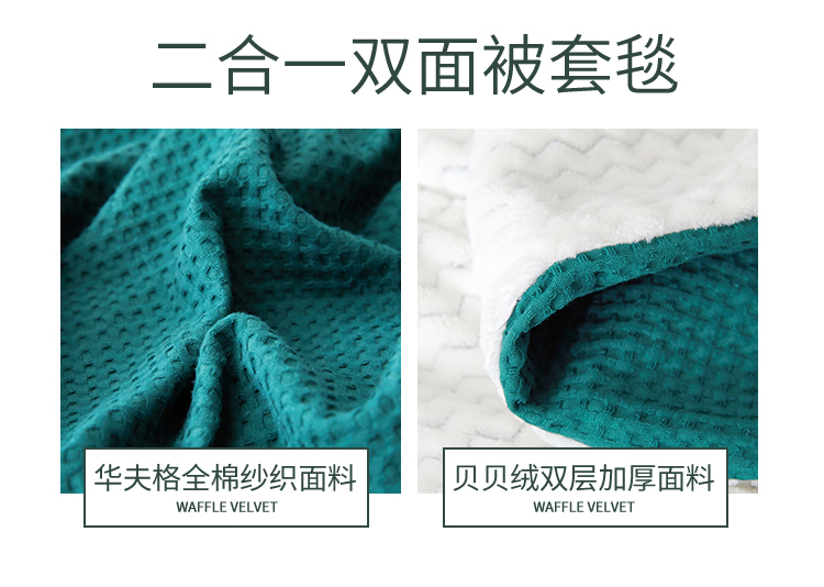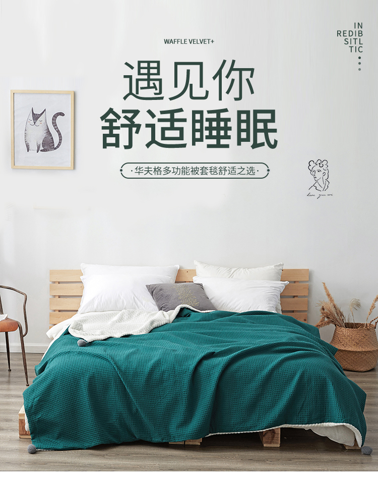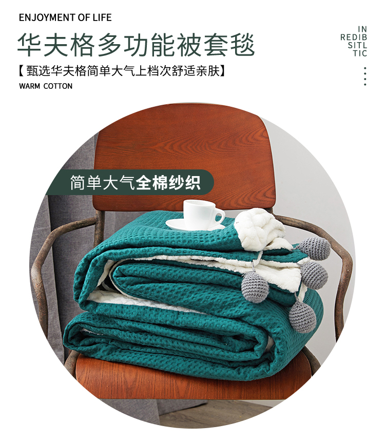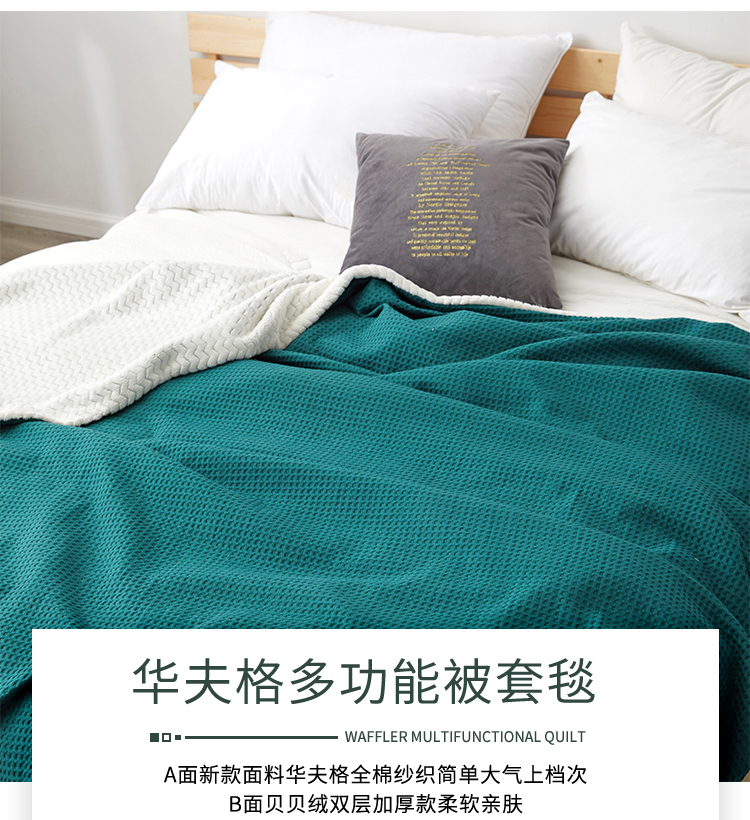 商品名称:网客 2024新款华夫格多功能被套毯 华夫格-墨绿