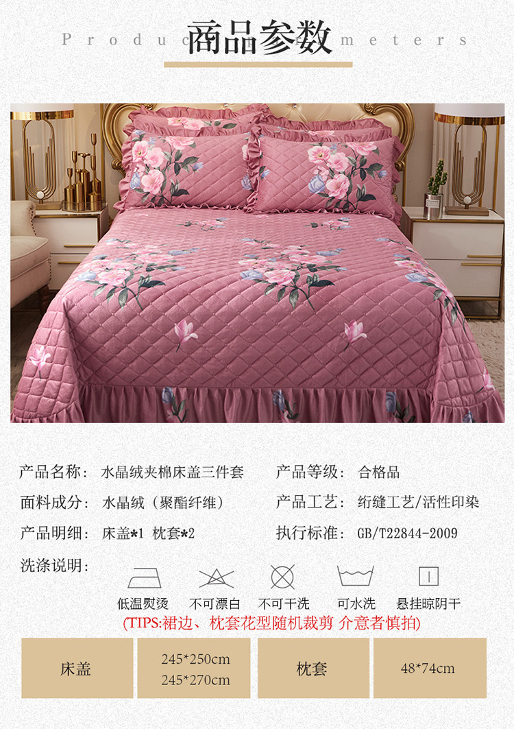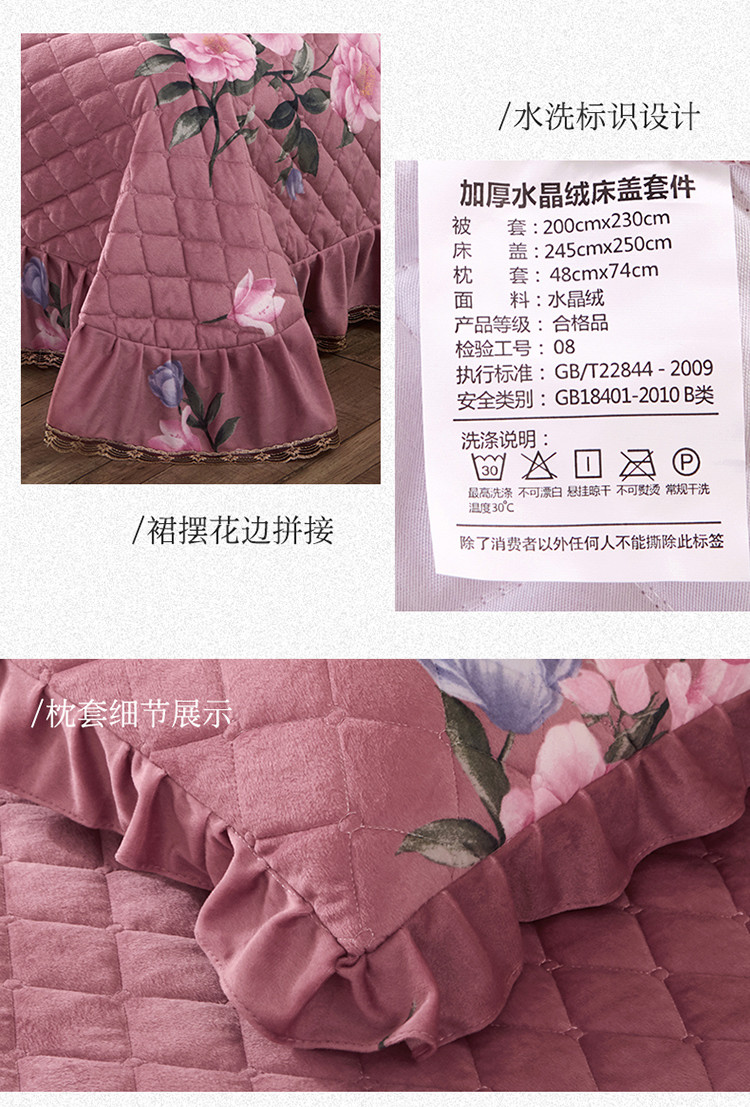 商品名称:宜凡家纺 2019水晶绒床盖三件套 姹紫嫣红