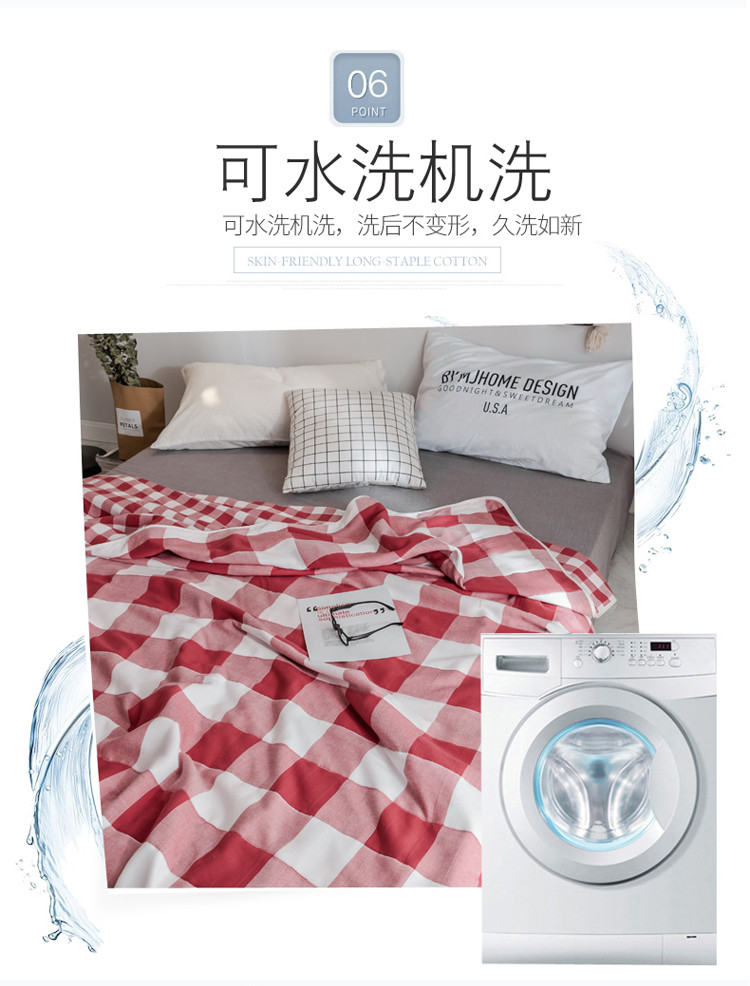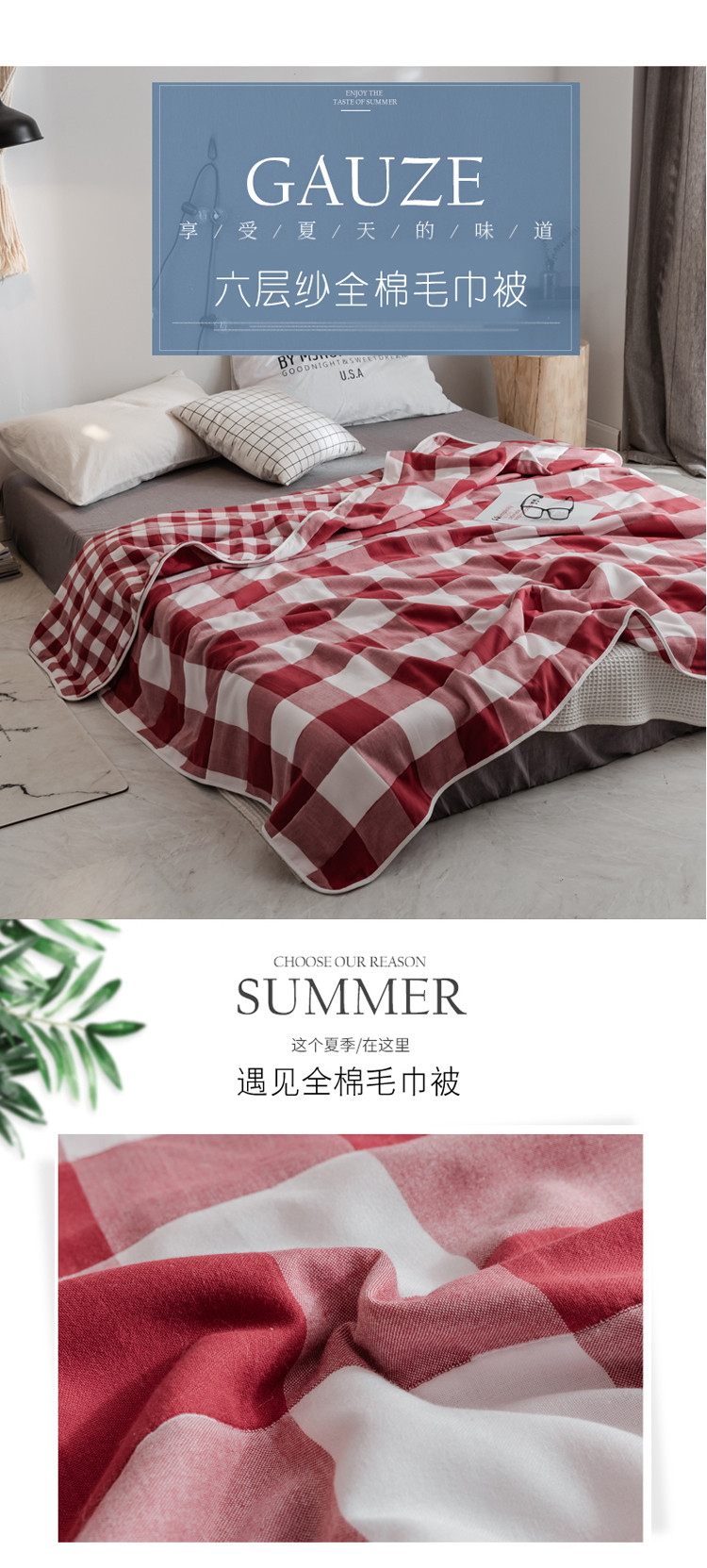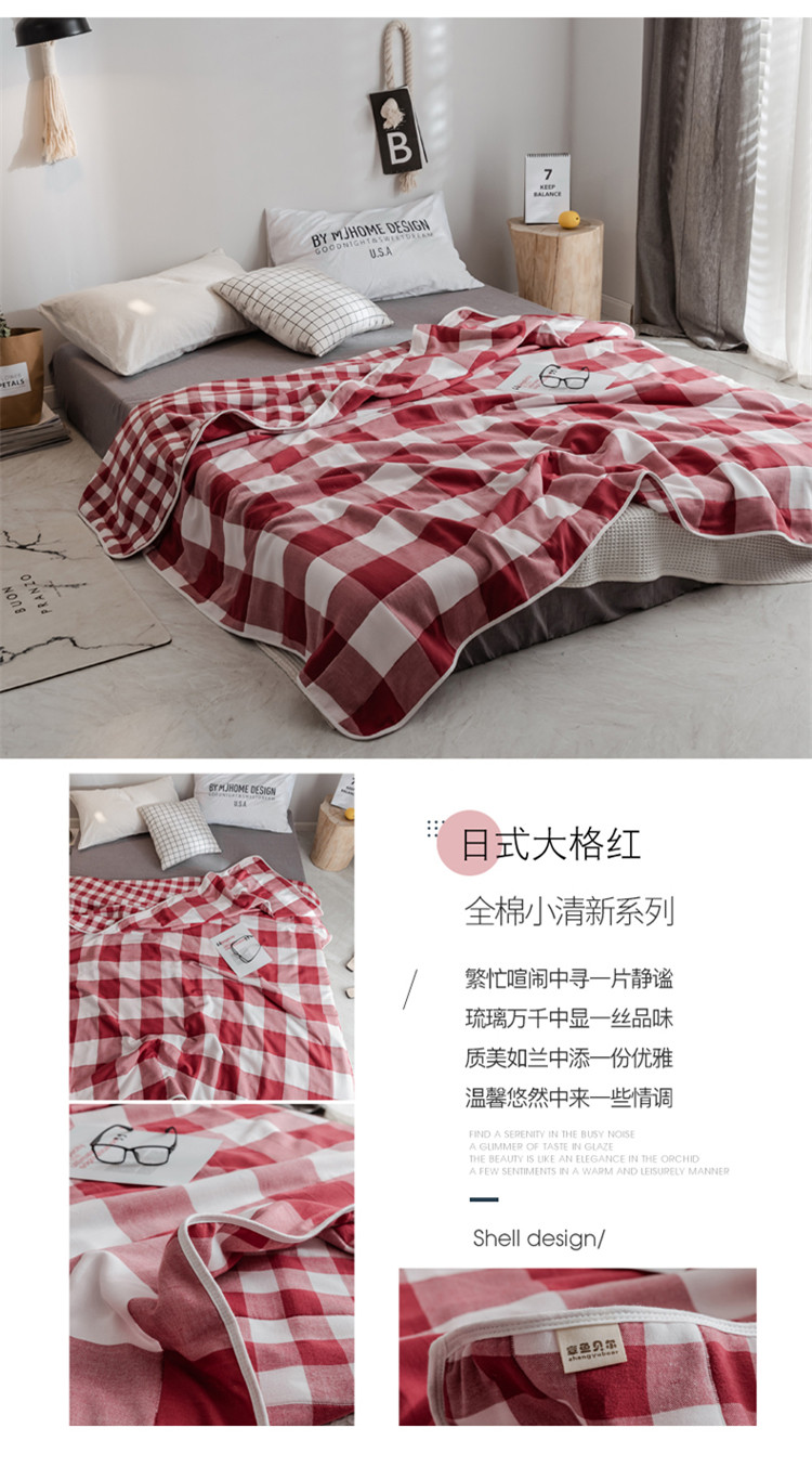 朴尔家纺 夏季毛巾被纯棉毛毯被夏被毯子空调被 日式大格-红