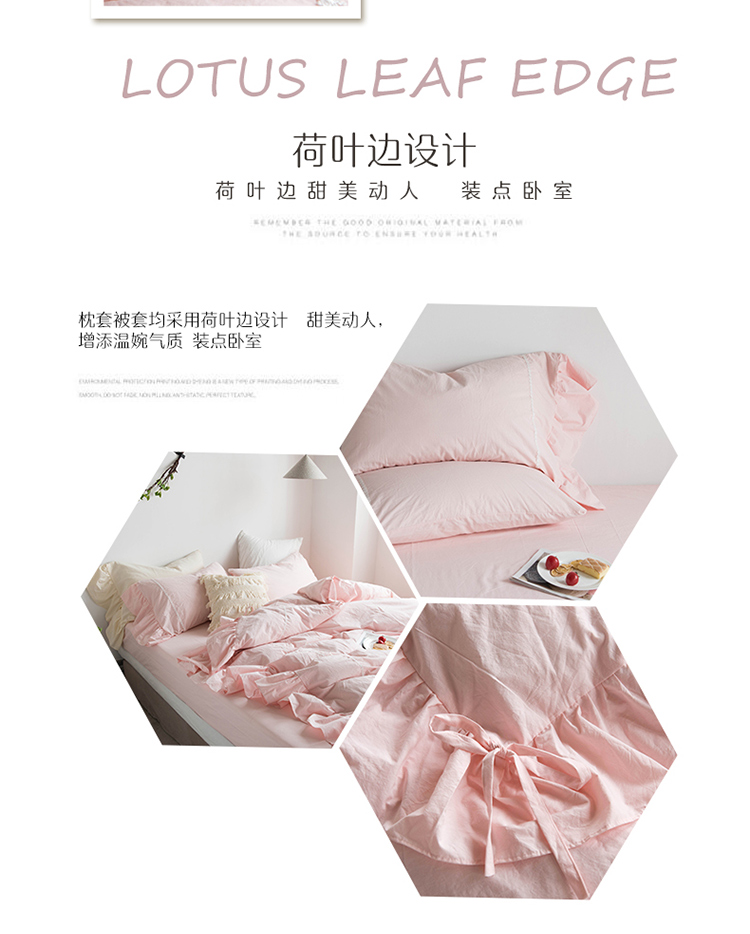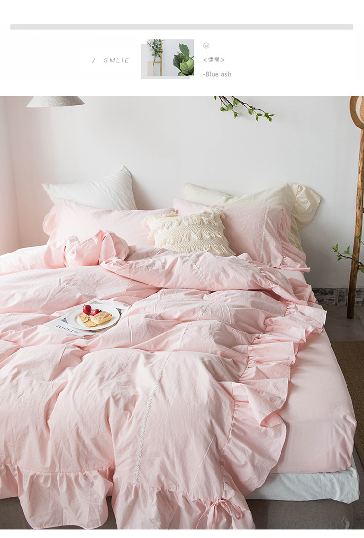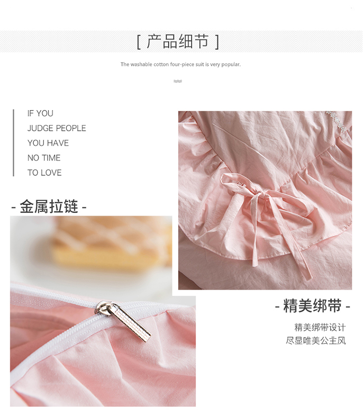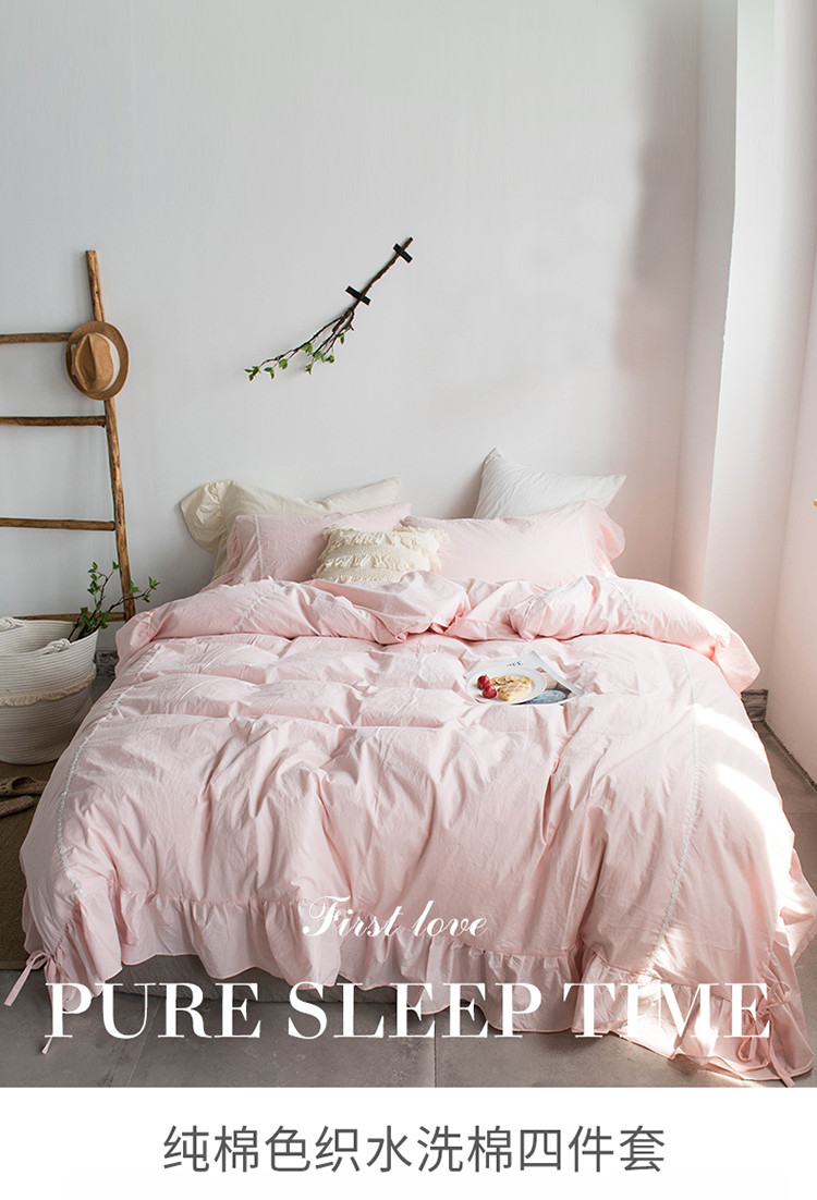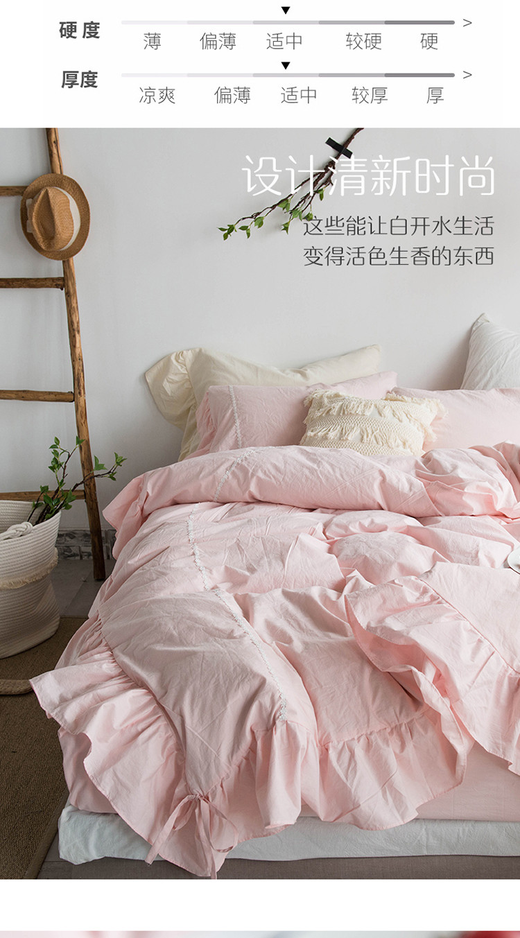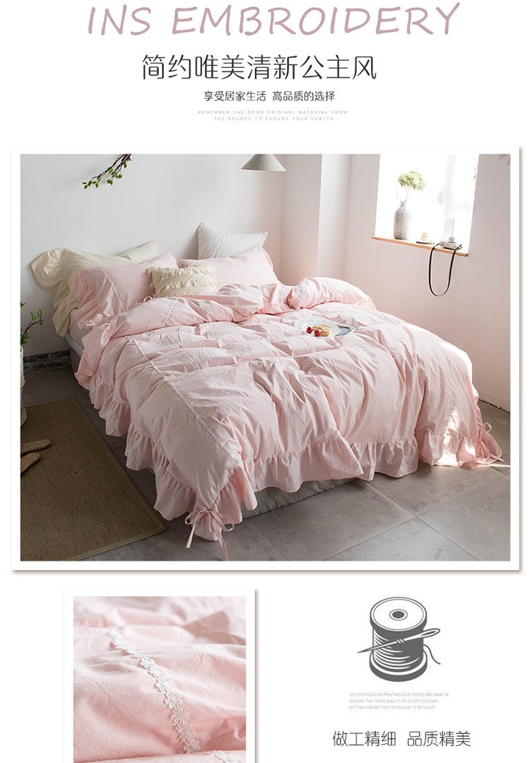 淑女公社 韩版纯棉床裙款四件套-微微公主系列 粉色,粉红色