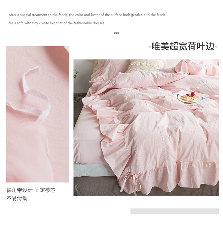 (总)淑女公社 韩版纯棉床裙款四件套-微微公主系列,灰色,玫红色,粉红色,蓝色,紫色