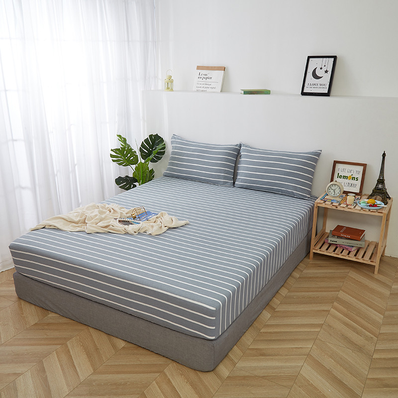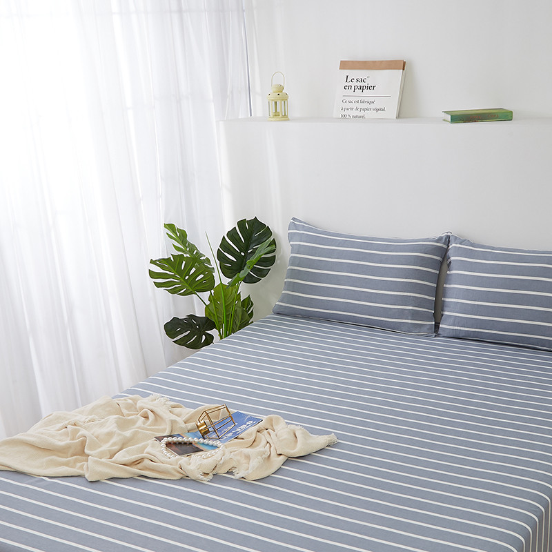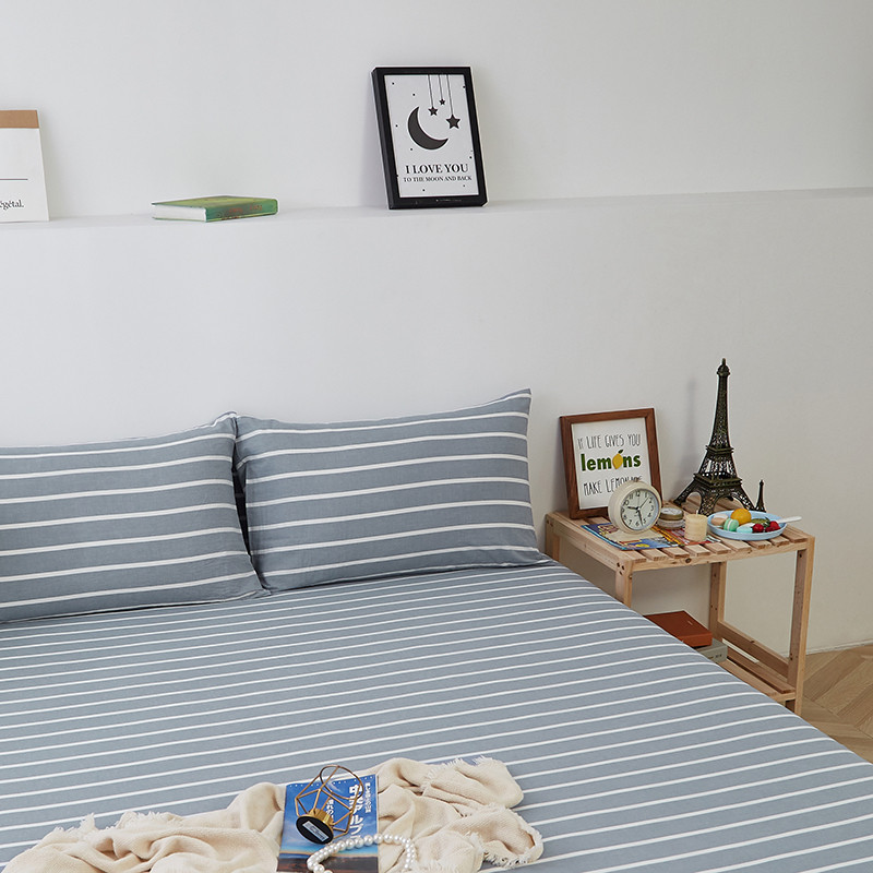 久典家居 2020新款水洗棉单品床笠 兰白条