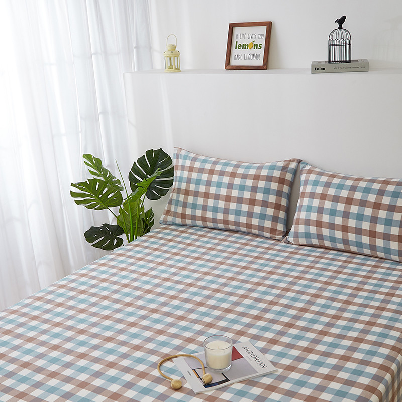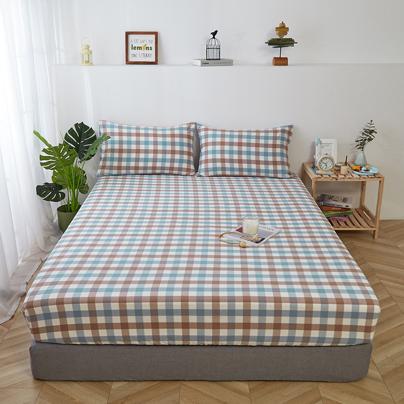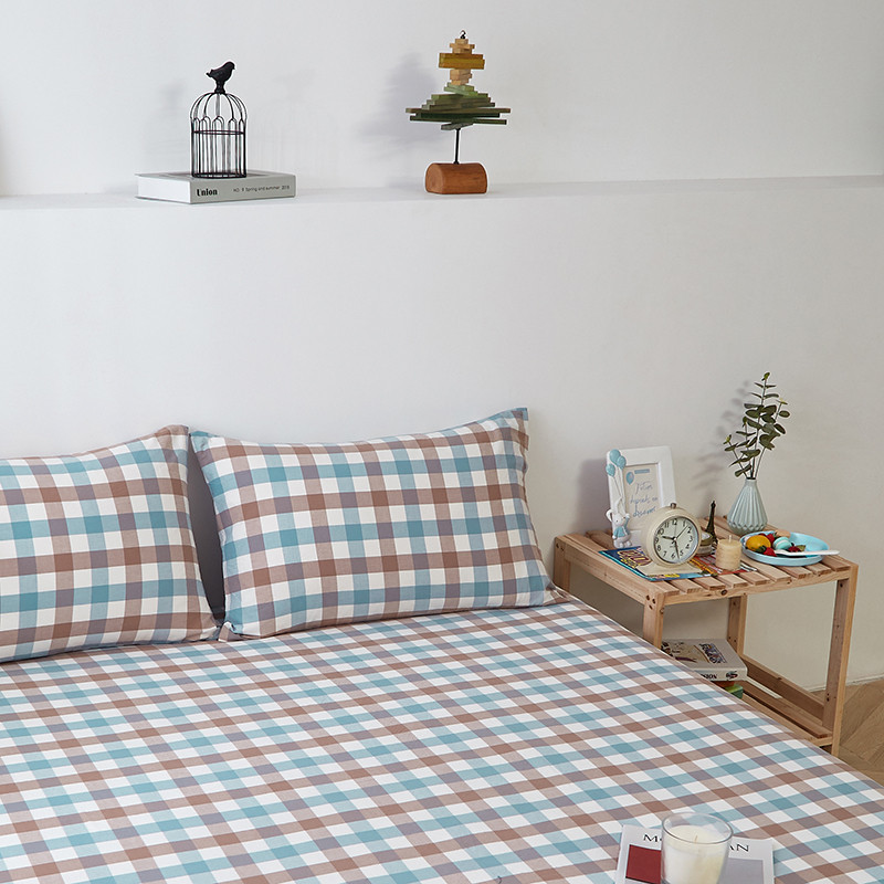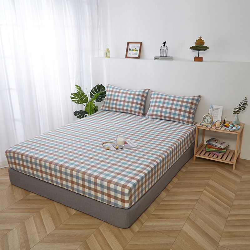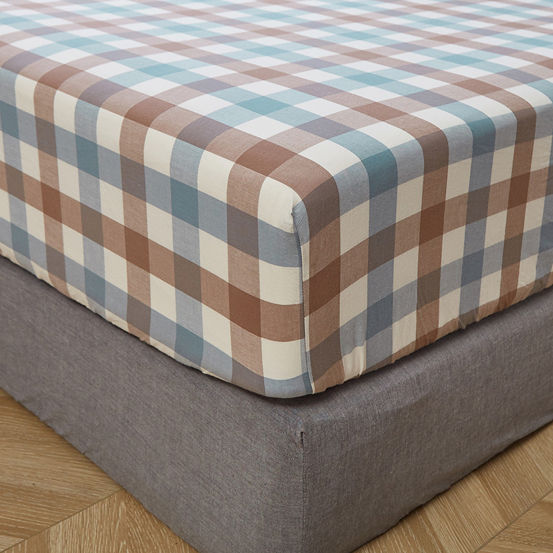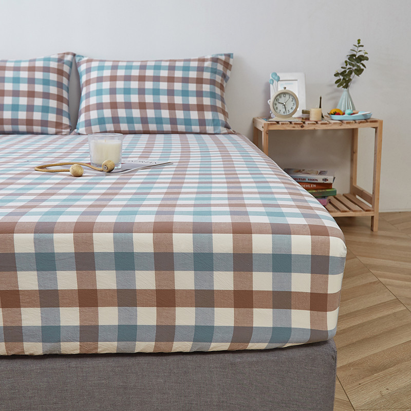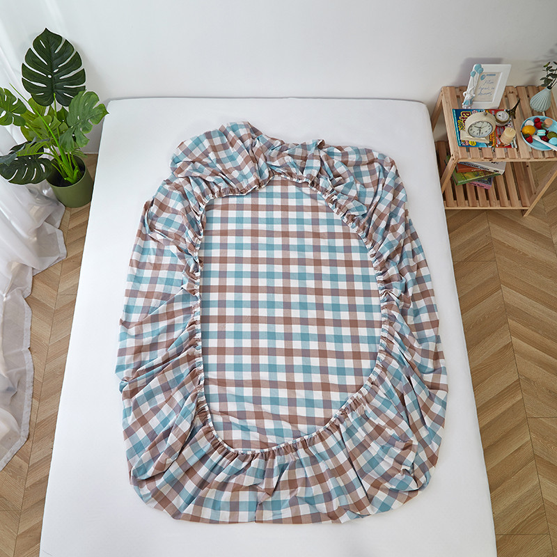 久典家居 2020新款水洗棉单品床笠 中格蓝