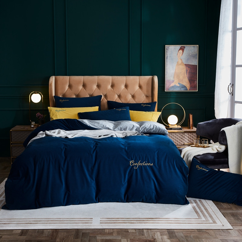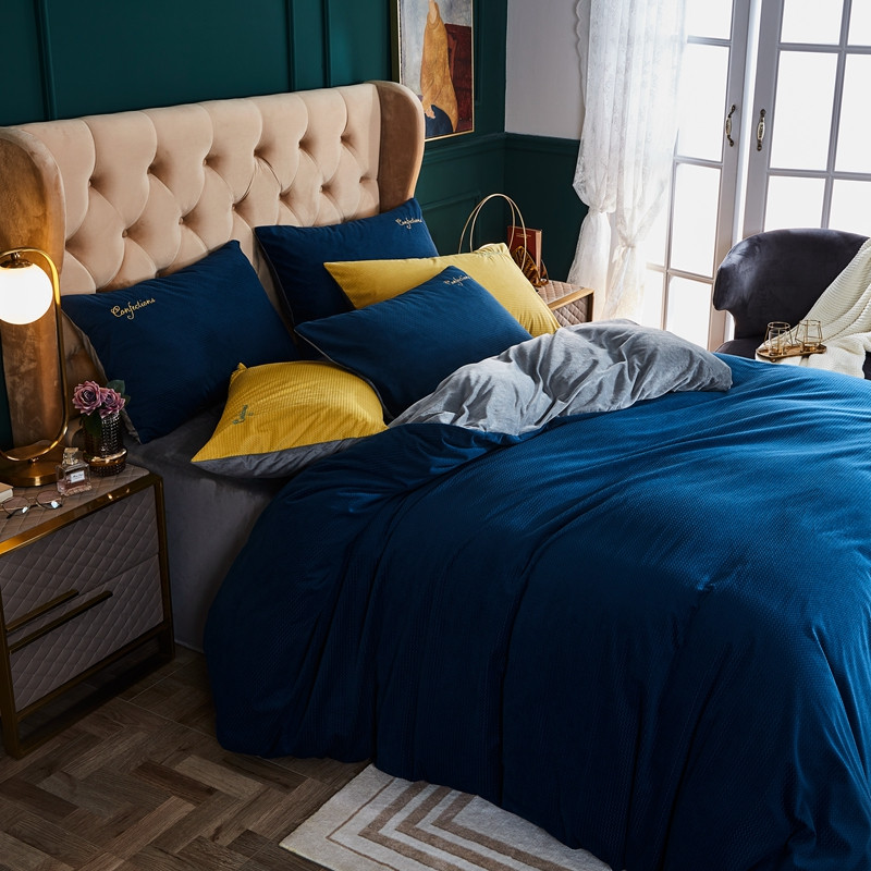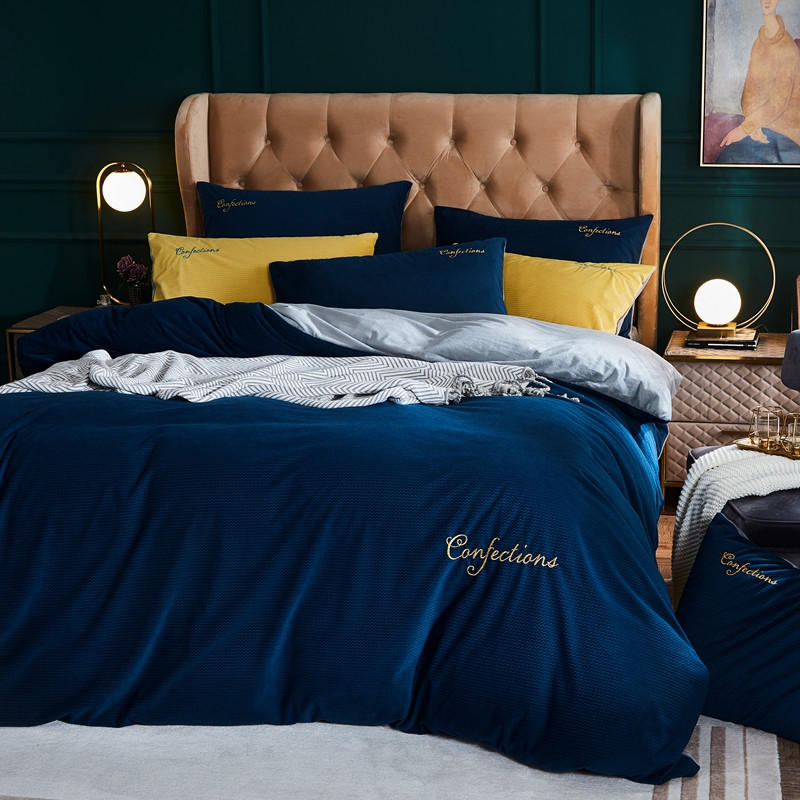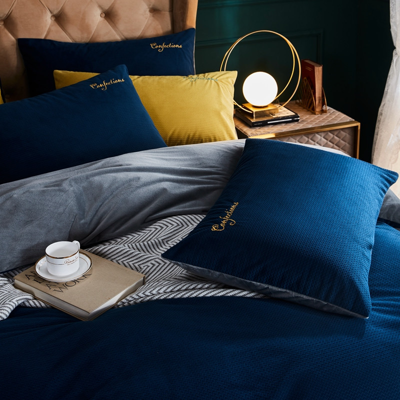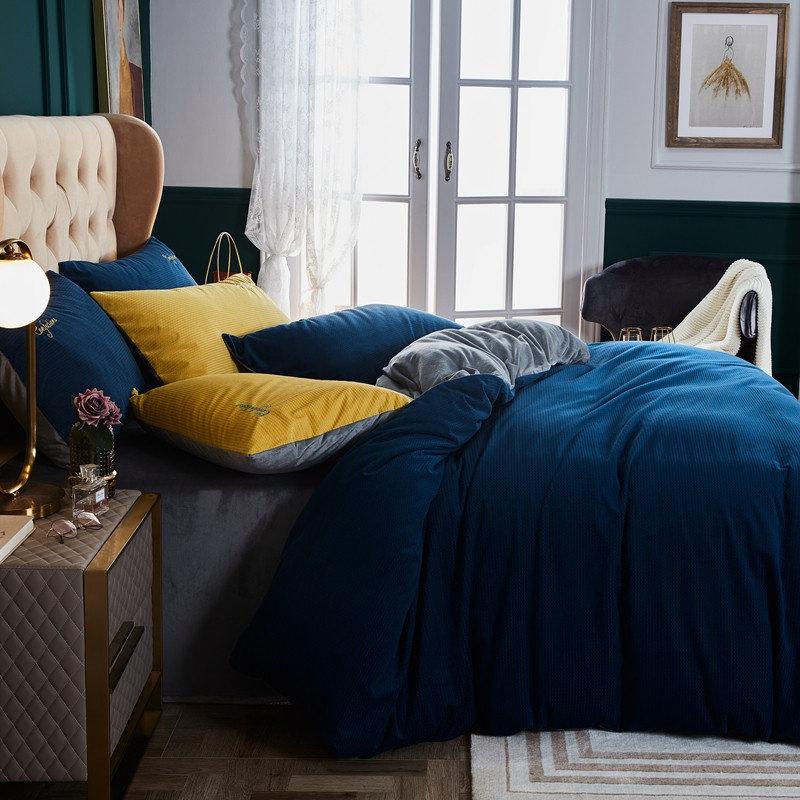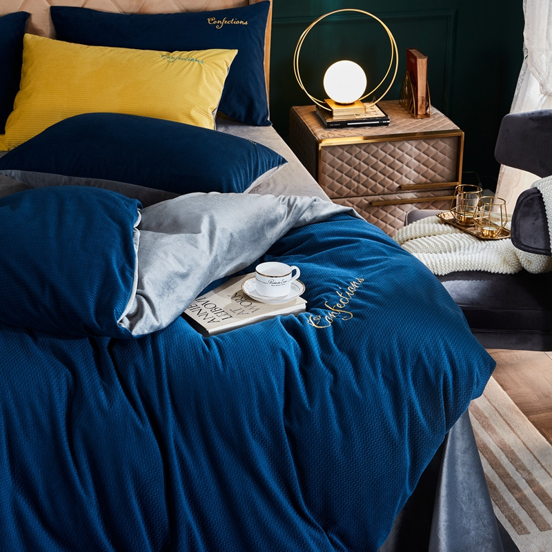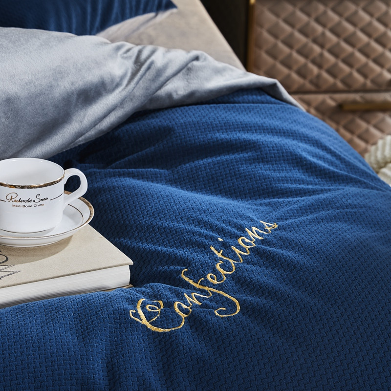 玖玖爱 2020新款加厚铂金提花绒四件套 蓝