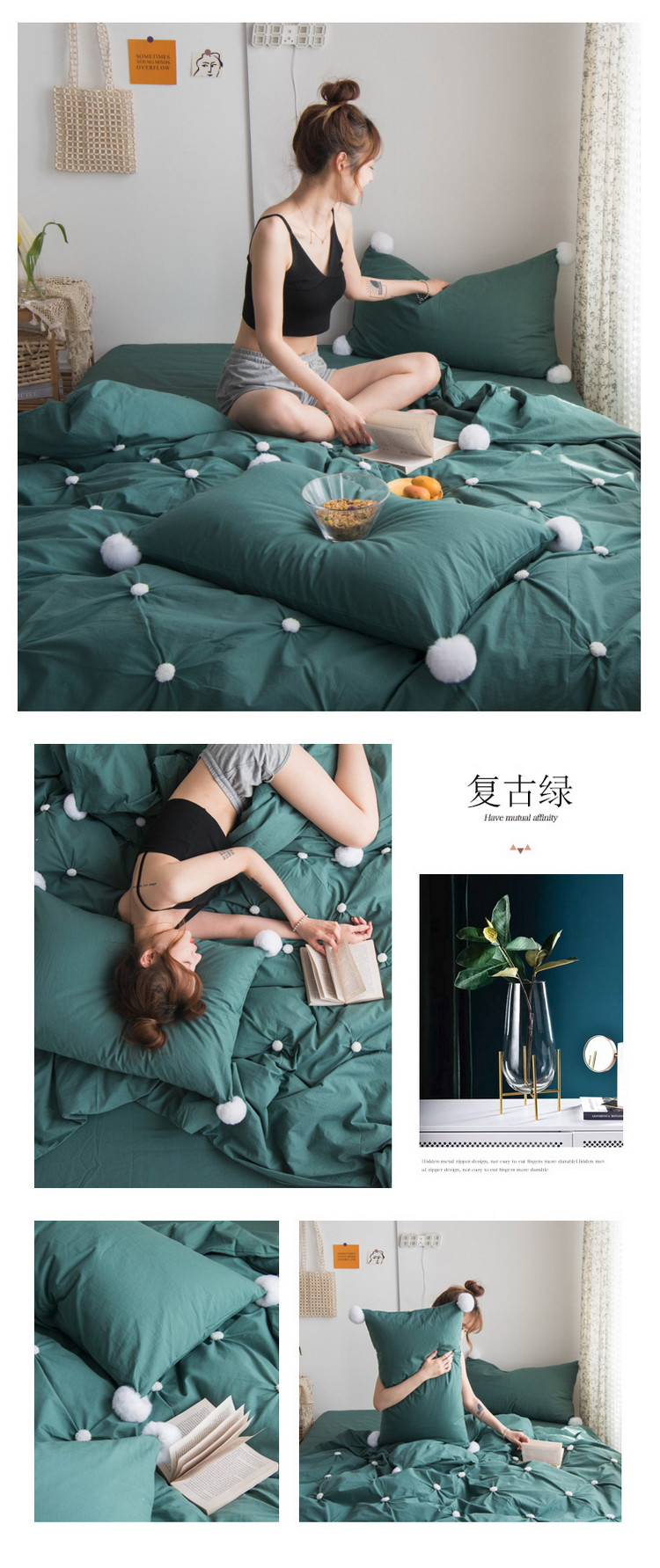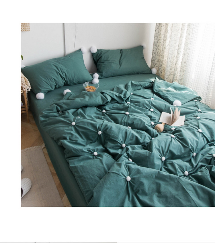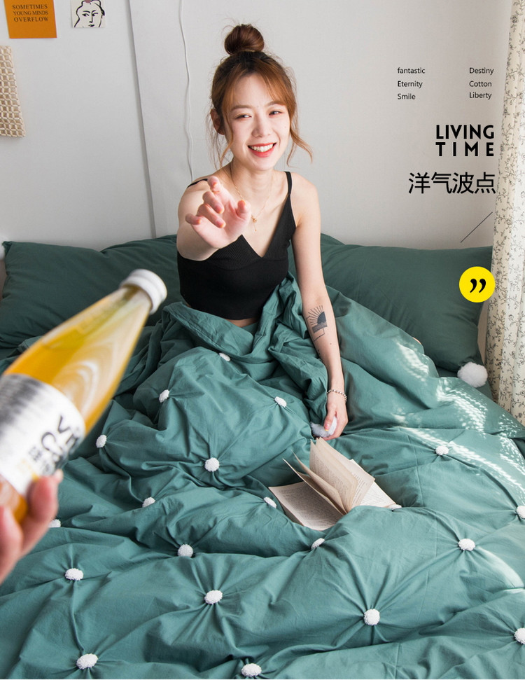 商品名称:漫调 2020新款全棉水洗棉波点毛巾绣四件套 复古绿