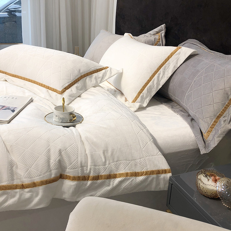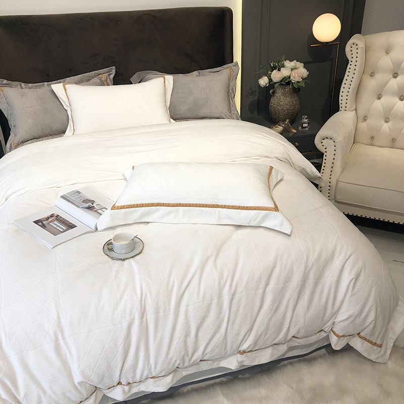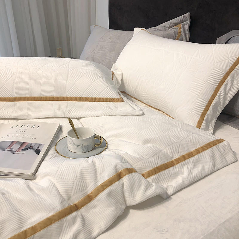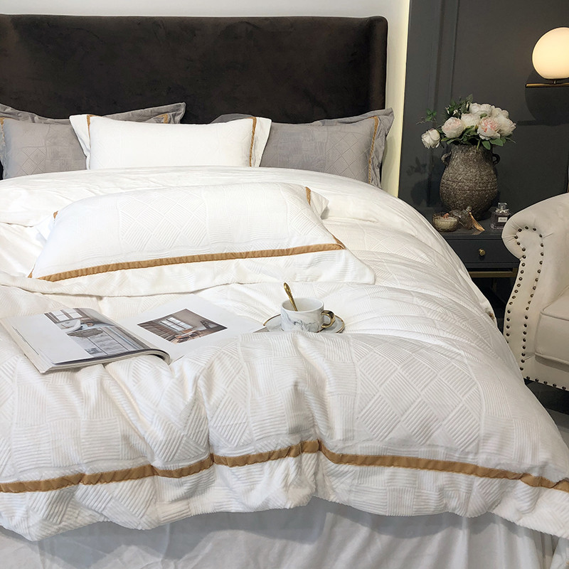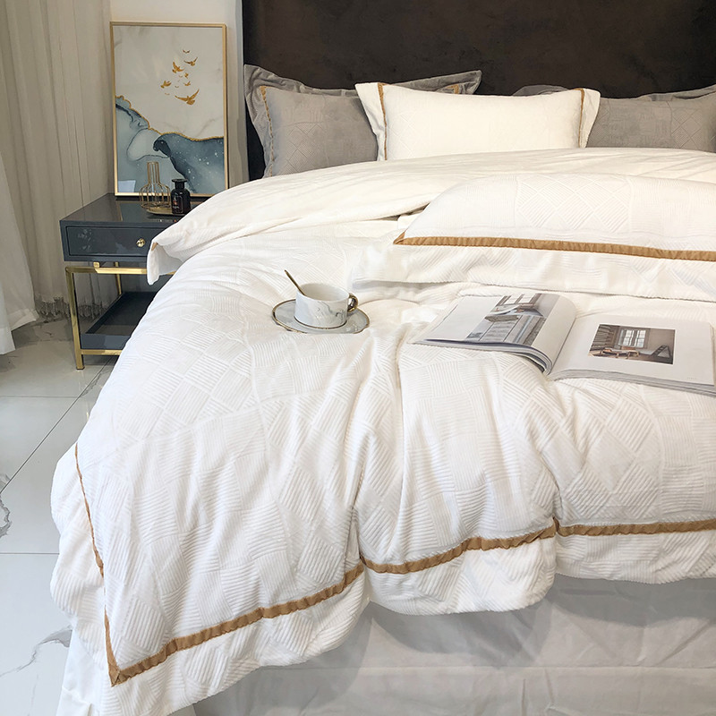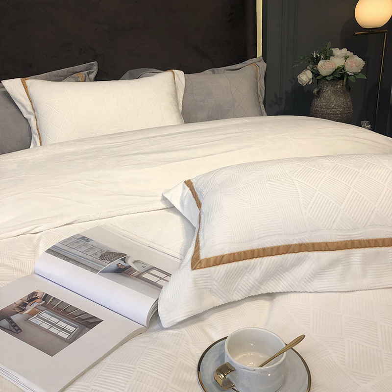 商品名称:太古汇2020新款日本进口立体提花雕花绒四件套 米白
