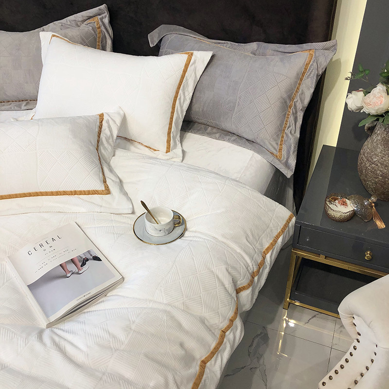 (总)太古汇家居 2025新款高紧密提花爱尔兰系列四件套,爱尔兰-粉色,爱尔兰-蓝灰,爱尔兰-米色