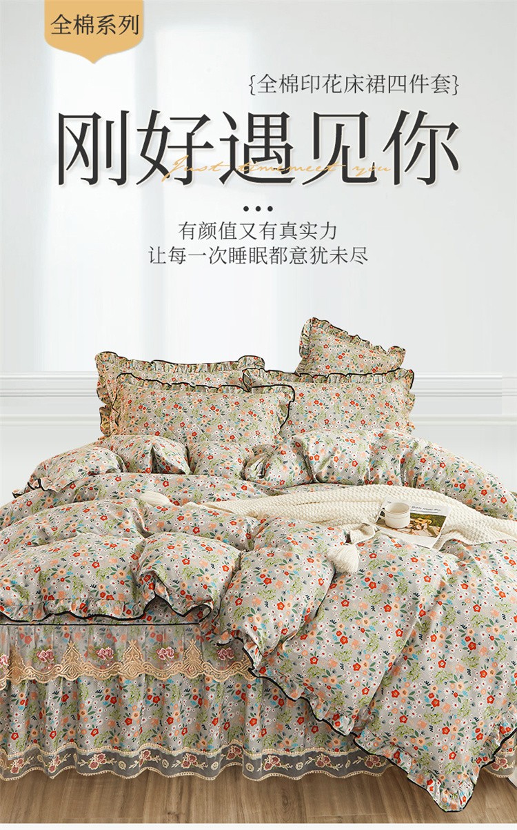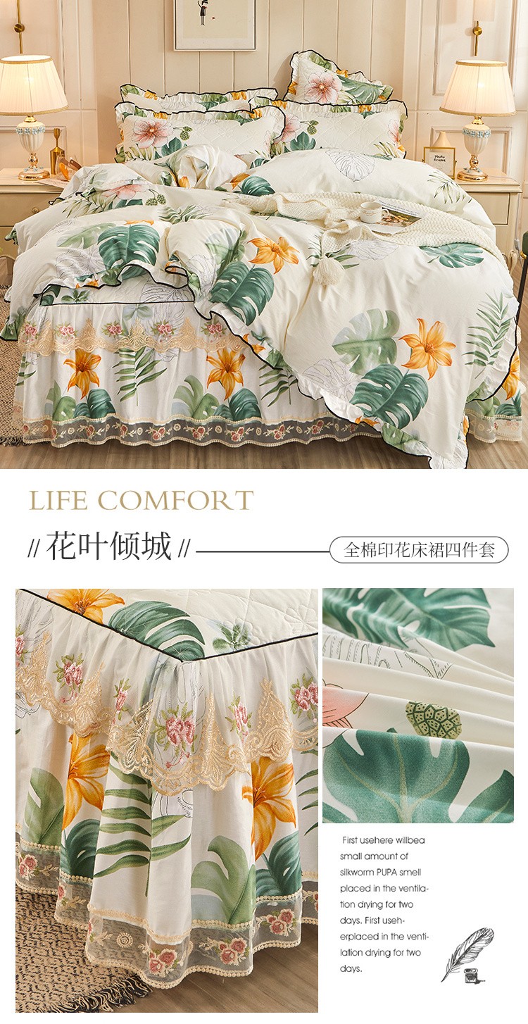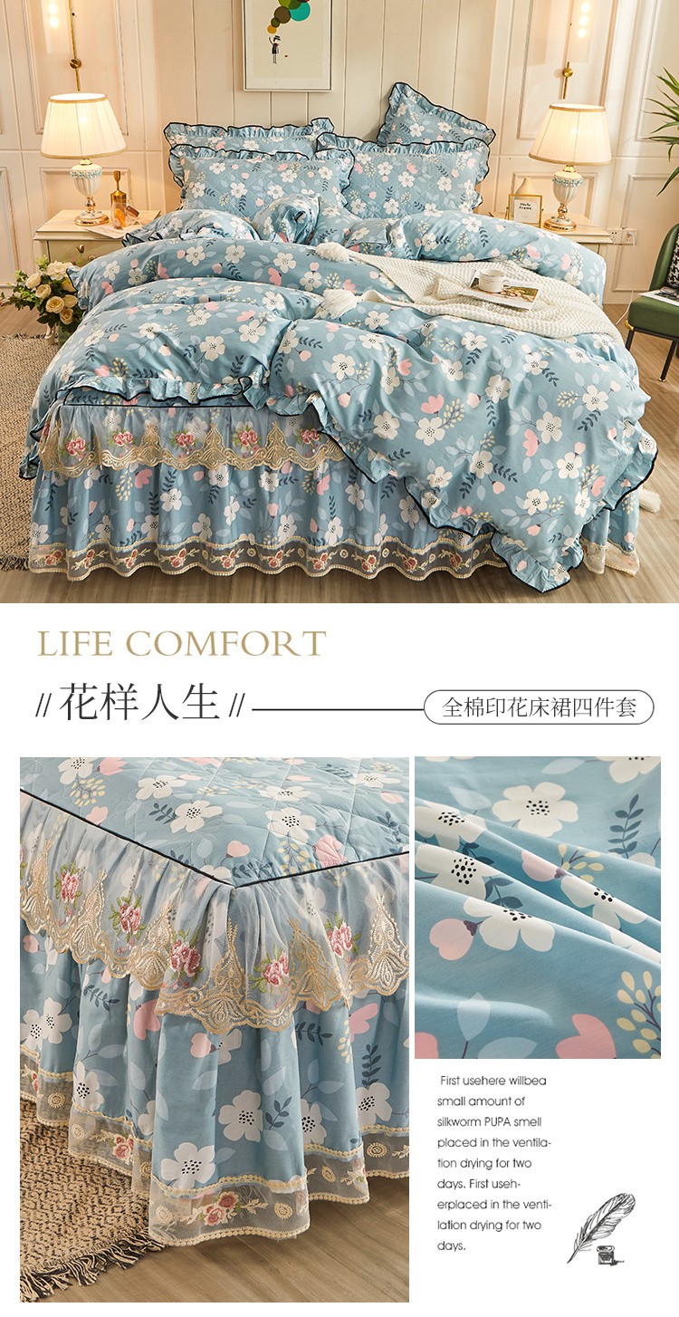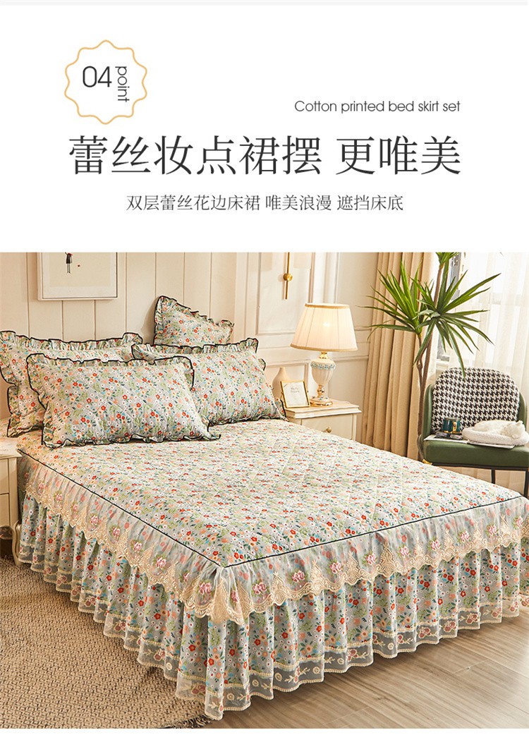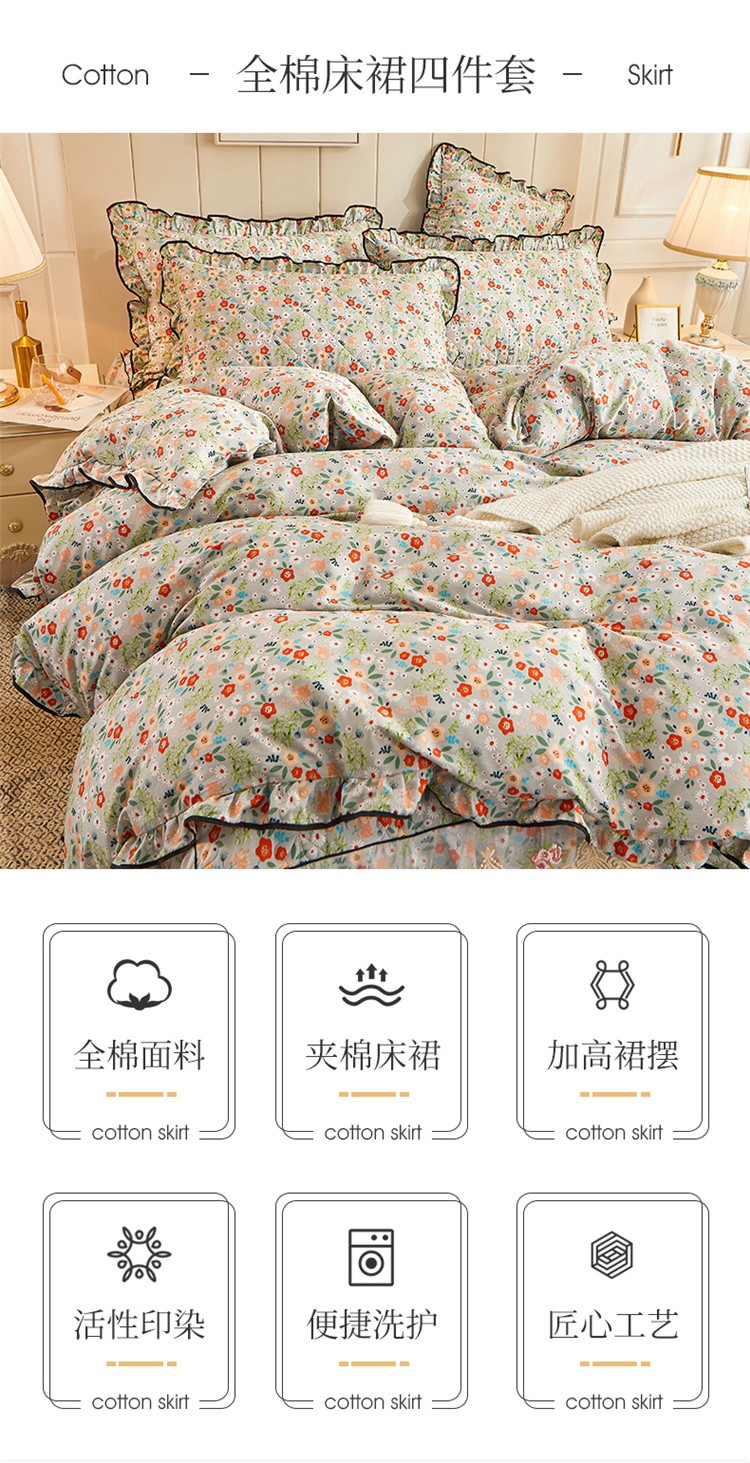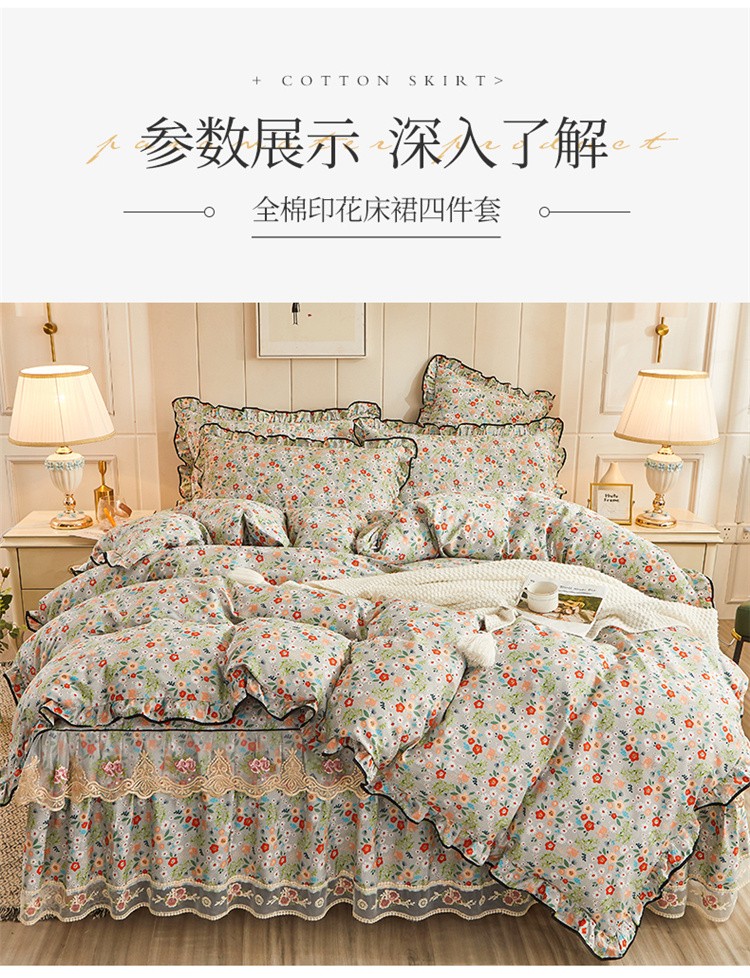 (总)十个点家纺 2022新款全棉蕾丝夹棉床裙四件套