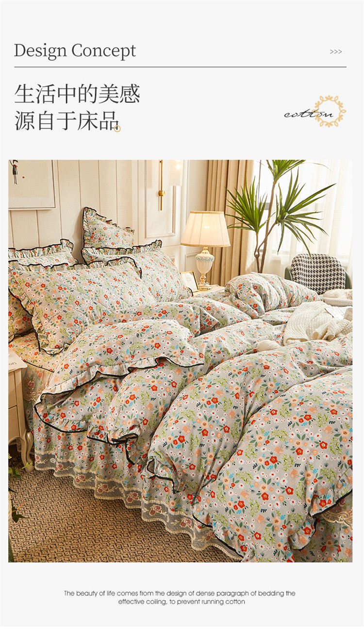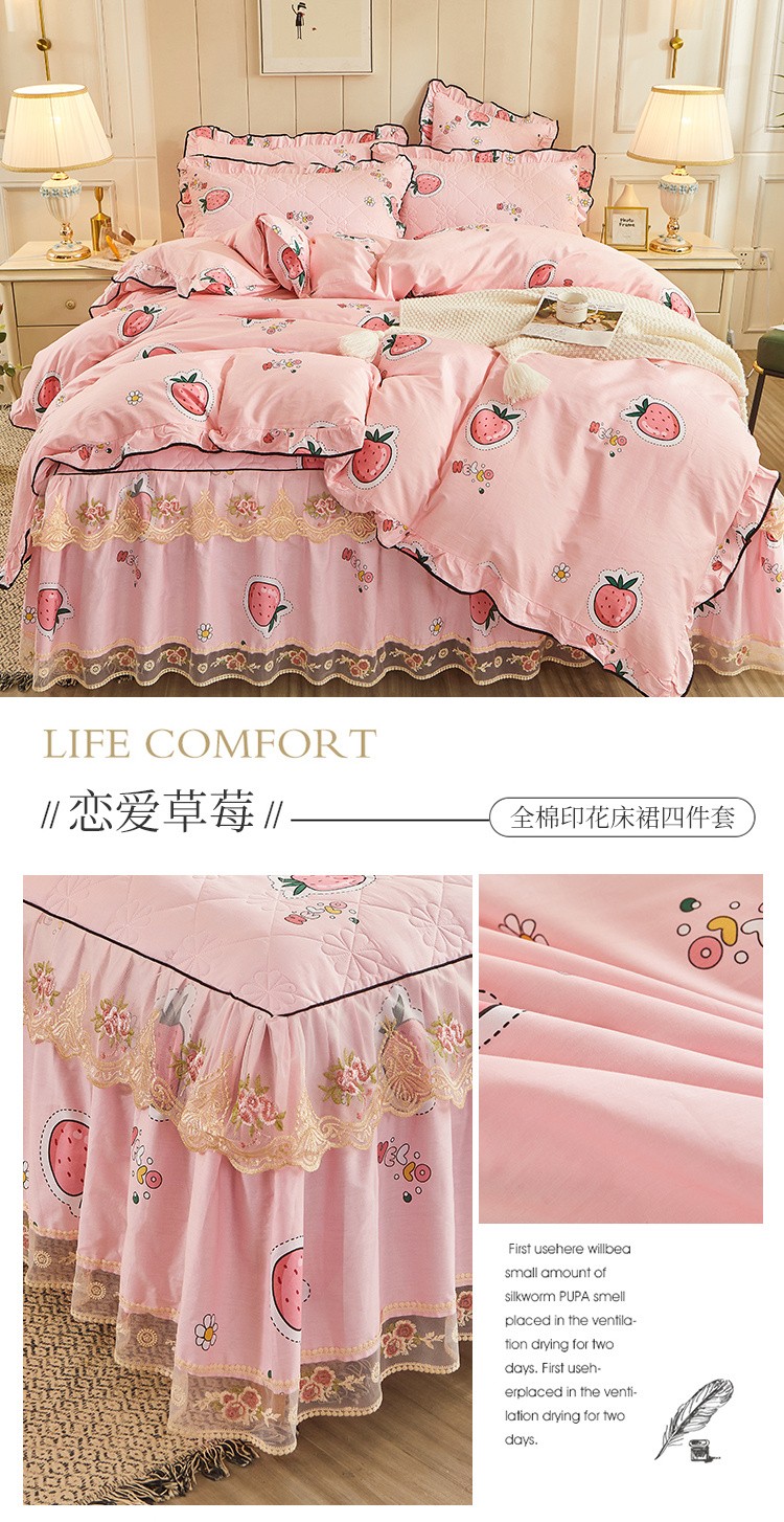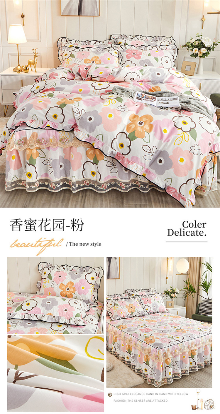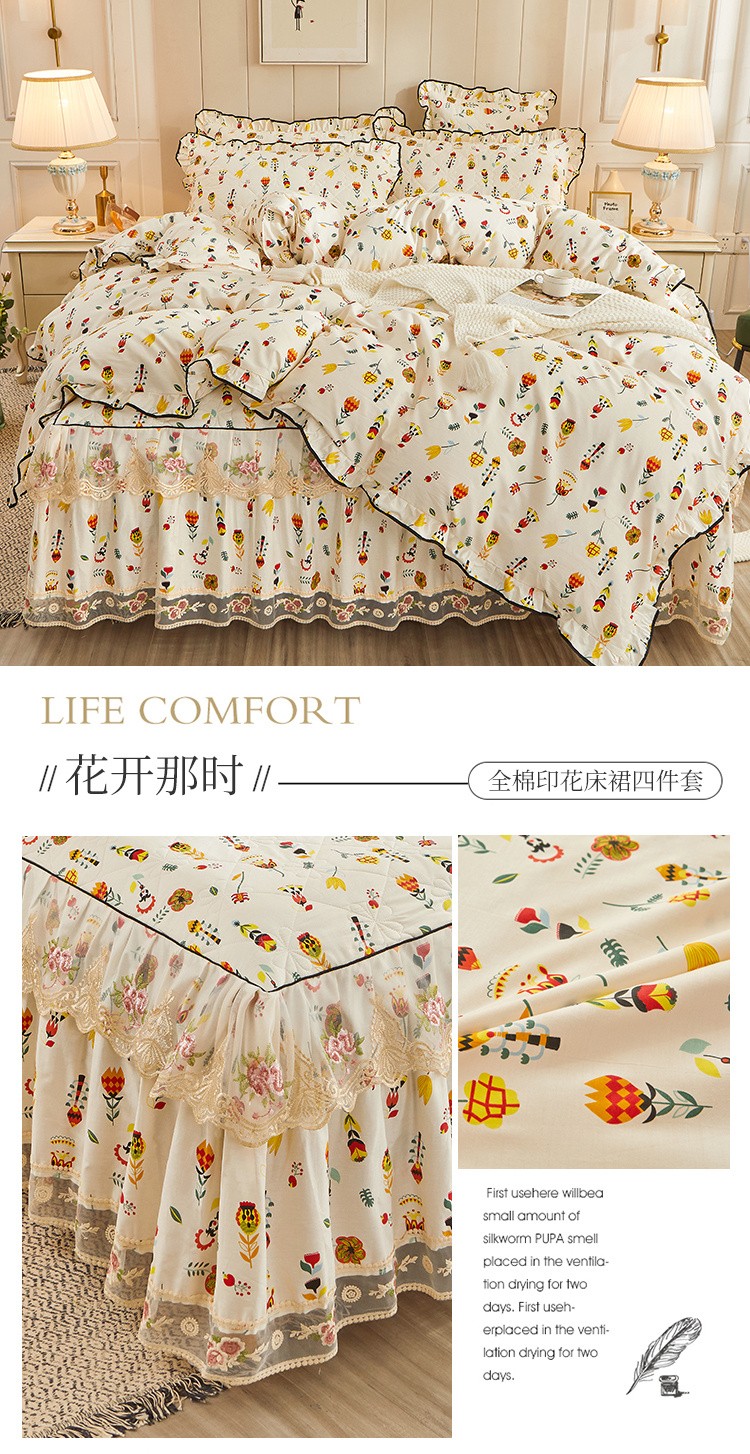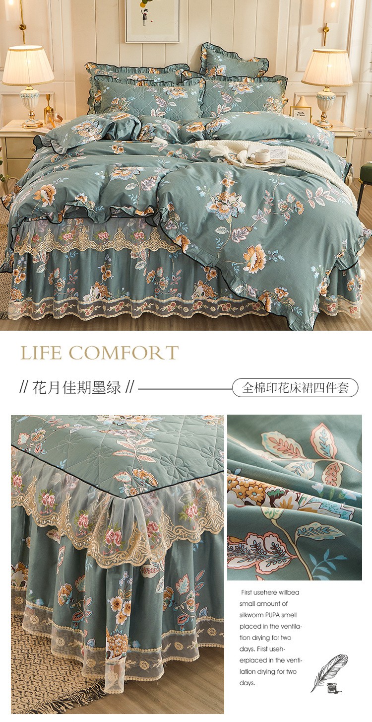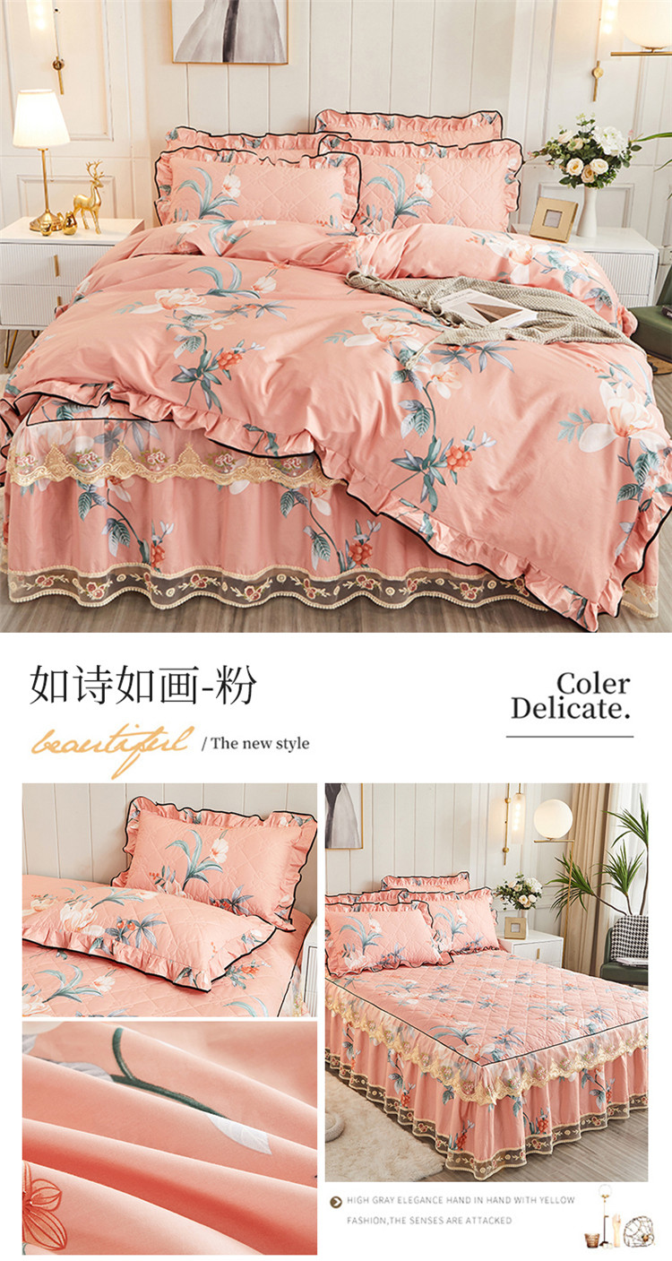 (总)十个点家纺 2022新款全棉蕾丝夹棉床裙四件套
