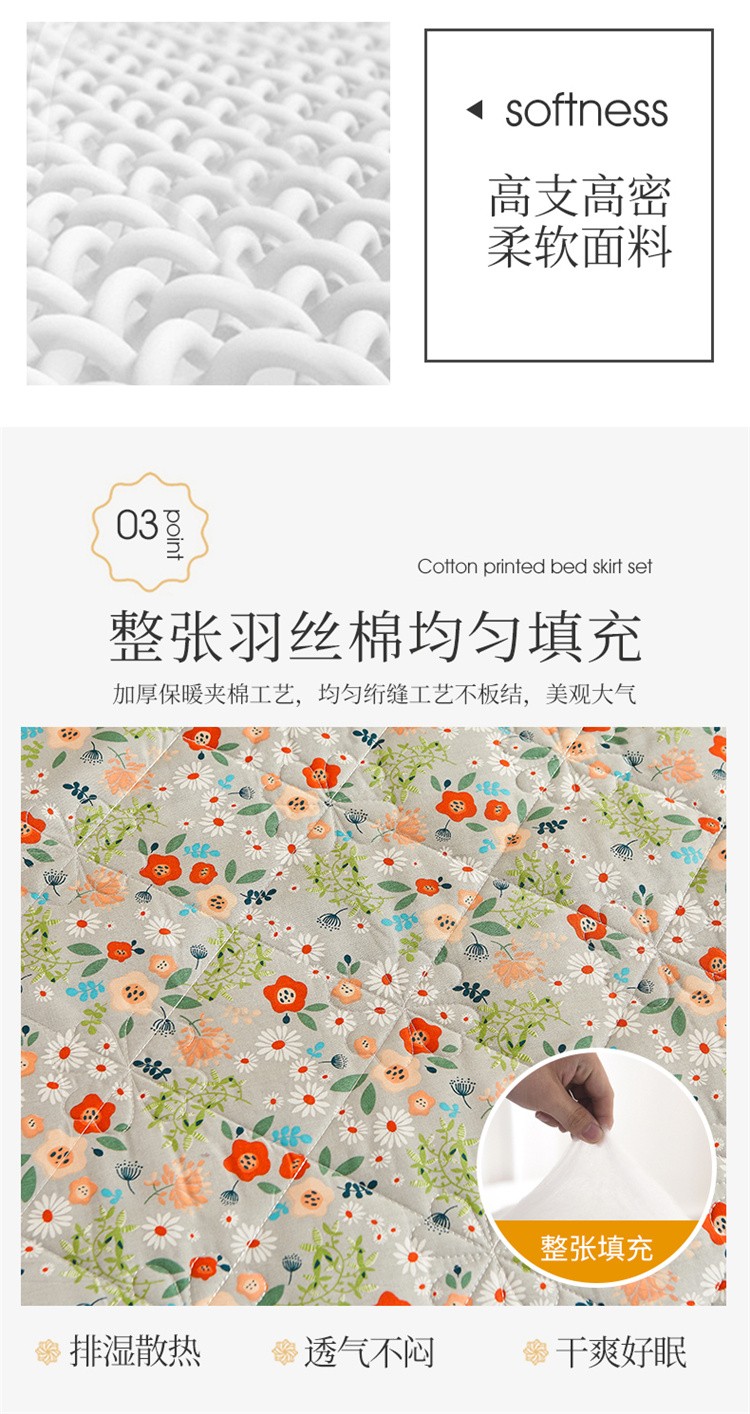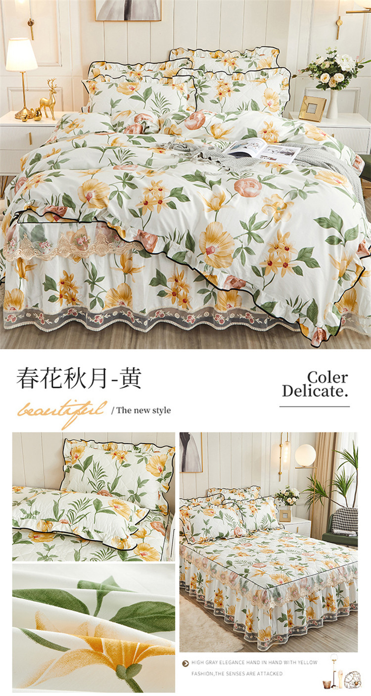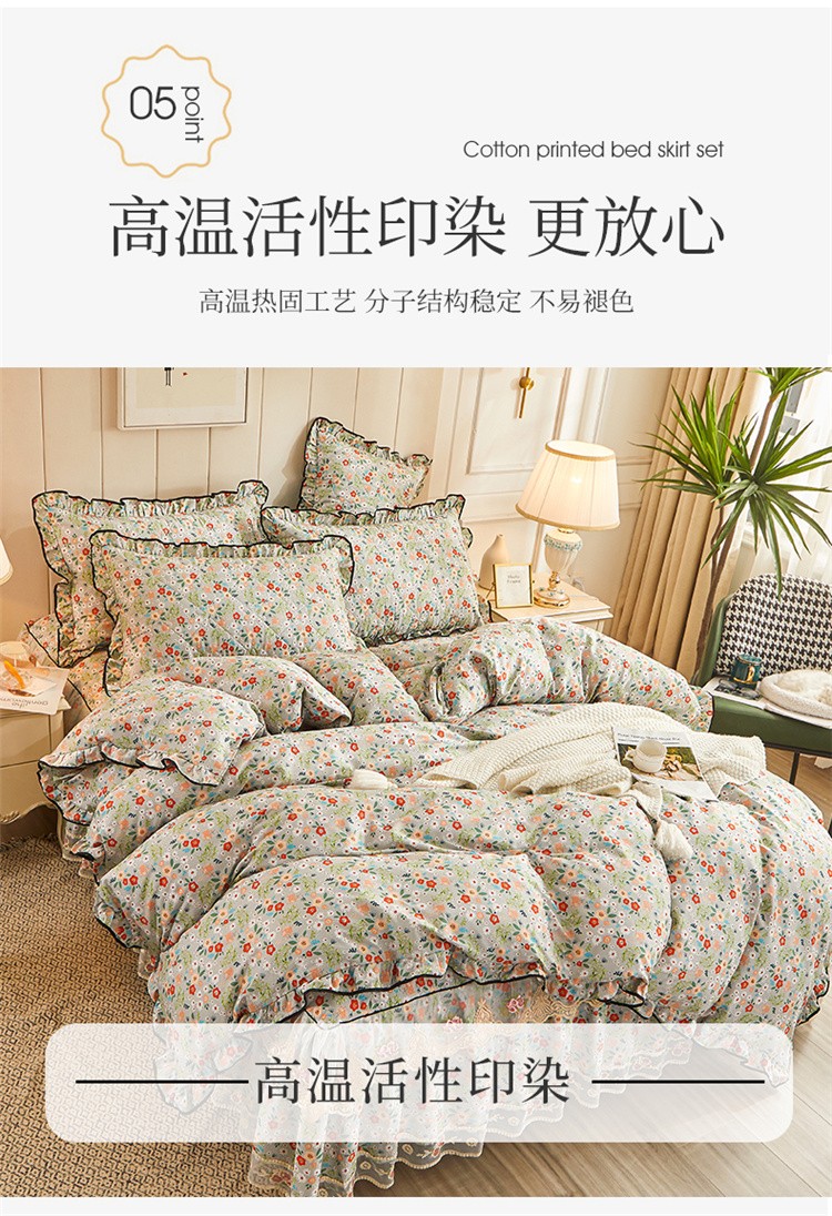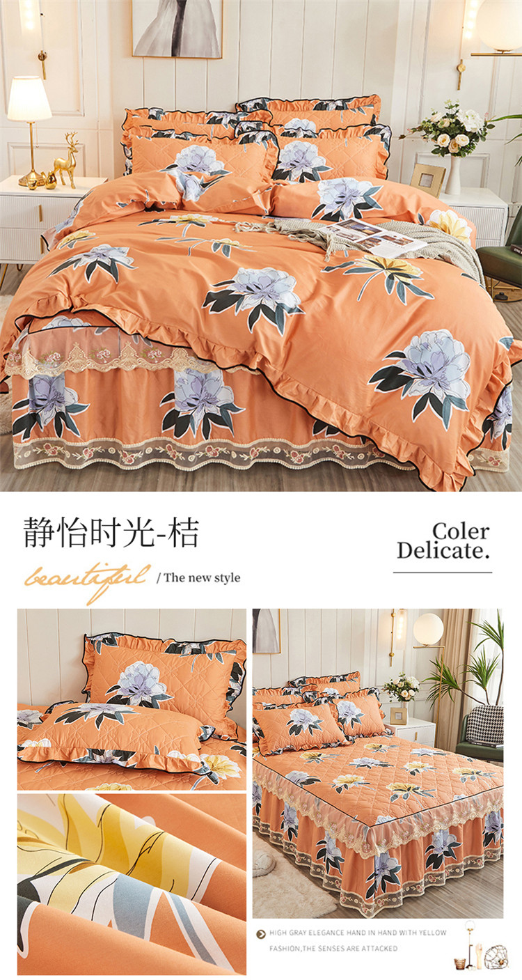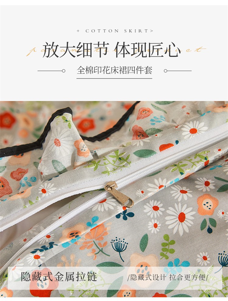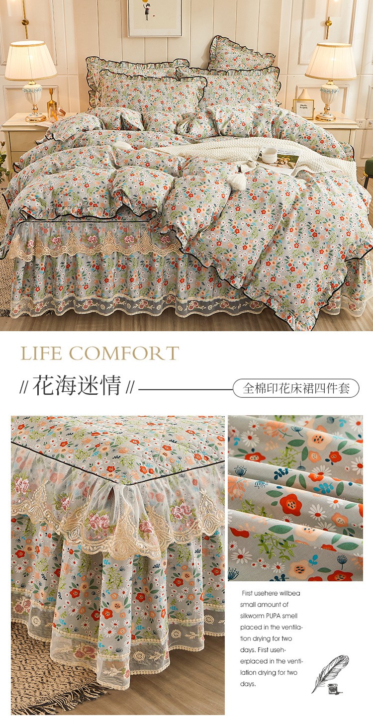 (总)十个点家纺 2022新款全棉蕾丝夹棉床裙四件套