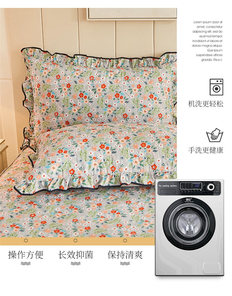 (总)十个点家纺 2025新款千鸟格磨毛绗缝夹棉纯色花边床裙三件套,经典白色,经典兰色,经典浅灰,经典浅驼,经典深灰,经典玉粉