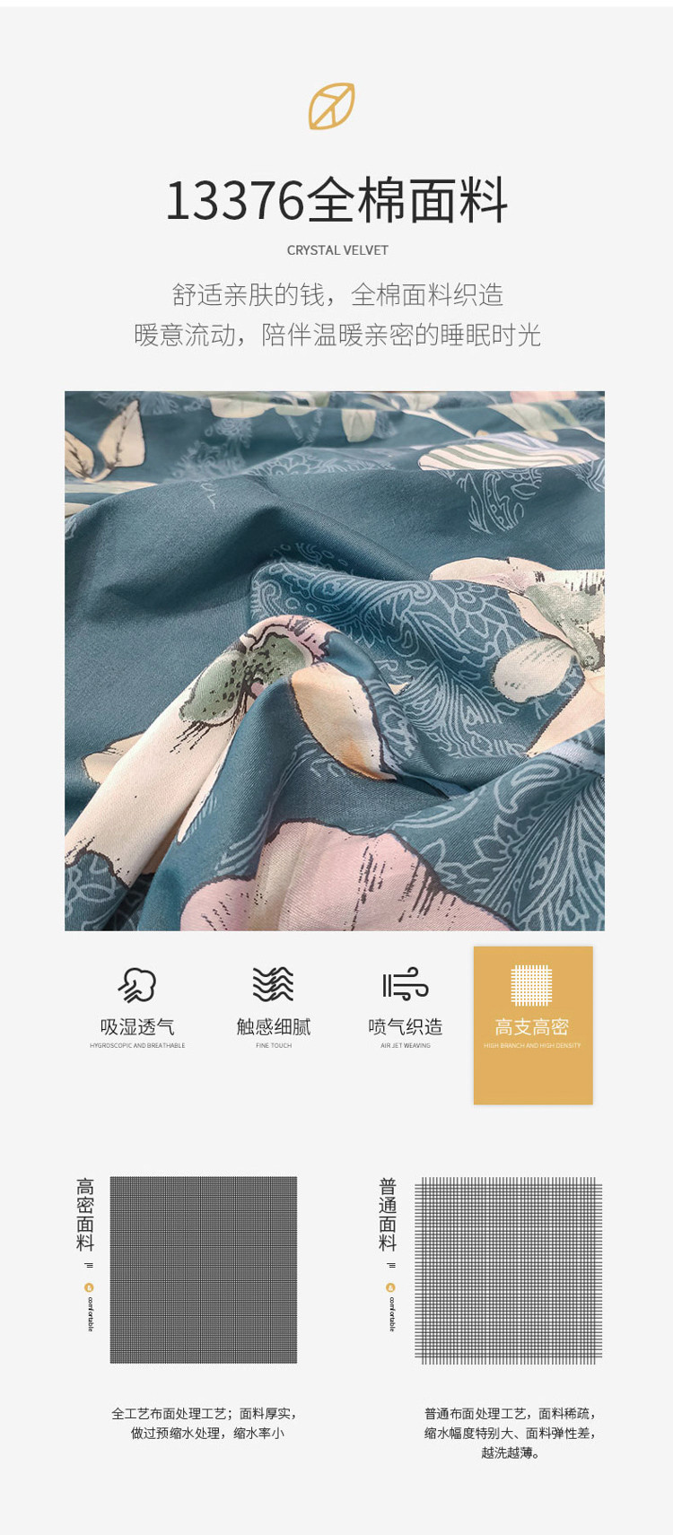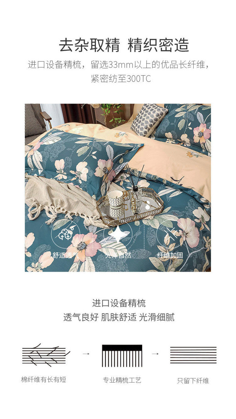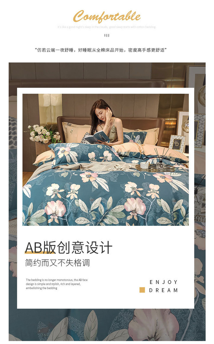 当前位置: 91家纺网 > 商品网购 > 床品套件 > 四件套 > 全棉活性四件套 > 由丽 新款精疏臻棉喷气全棉四件套“ 被套放预缩” 月韵绿